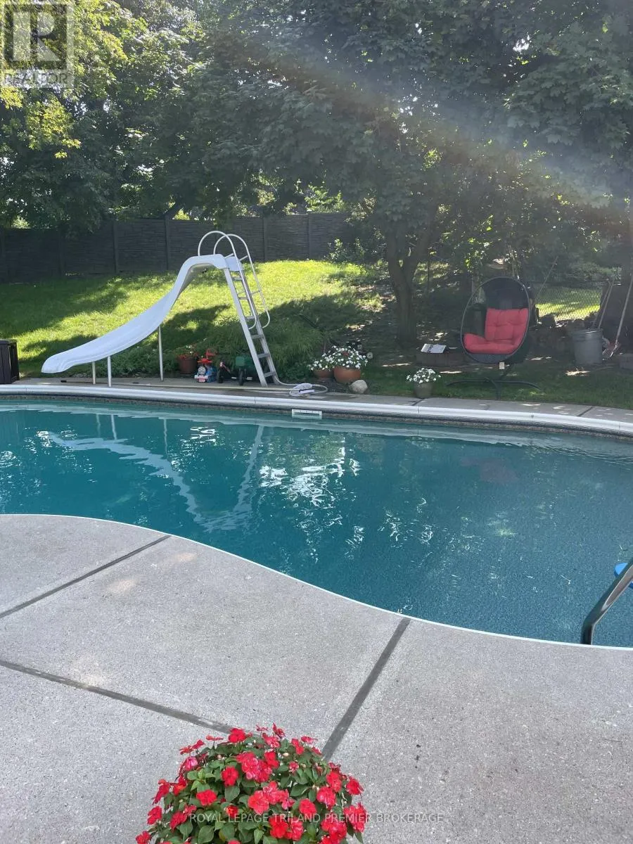FROM BOLER HEAD WEST ON GRIFFITH, SOUTH ON FOXCROFT Welcome to this beautiful yellow brick two-storey in the unbeatable, family-friendly neighbourhood of Byron! From the charming covered front porch to the spacious backyard retreat, this home offers the perfect blend of warmth, function, and room to grow. Inside, you'll find hardwood flooring throughout and a bright, inviting living room featuring a stunning bay window. The formal dining room is perfect for hosting, while the eat-in kitchen offers everyday convenience and great flow for busy family life. A cozy family room with fireplace and direct backyard access creates the ideal space for relaxing evenings. The main floor laundry and a 2-piece bath add practical convenience. The upper level offers four generous bedrooms and two full baths, including a primary suite with double closets and an updated 3-piece en-suite. The fully finished basement provides a large recreation room - perfect for movie nights, play space, or a home gym - plus ample storage. Step outside to your own backyard oasis featuring an in-ground pool and a large, treed yard with plenty of space for kids, dogs and entertaining. This is the total package in a sought-after neighbourhood close to schools, parks, and amenities - a true forever family home! Loaded with recent updates including: pool pump and filter approx. 1 year, pool liner approx. 7 yrs, roof approx. 15 yrs, furnace and A/C approx. 12 yrs, electric fireplace approx. 5 yrs, main floor windows approx. 2 yrs, upper primary and ensuite windows approx. 1 yr, all other upper windows approx. 6 yrs, insulation approx. 1 yr, basement flooring approx. 4 yrs, rear fence approx. 5 yrs, exterior doors approx. 2 yrs, upper level interior doors and trim 2026, kitchen backsplash/counters approx. 7 yrs. (id:27476)