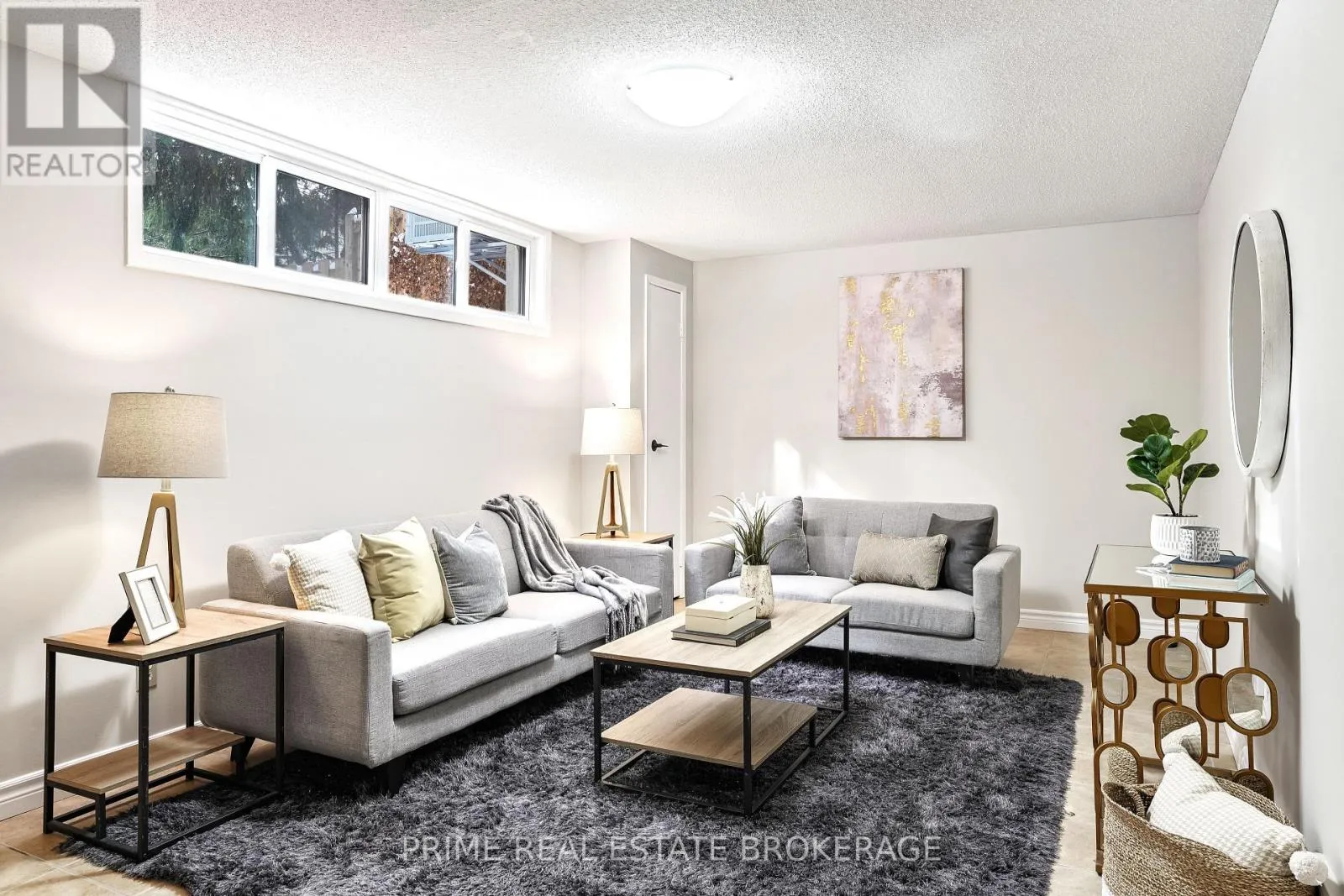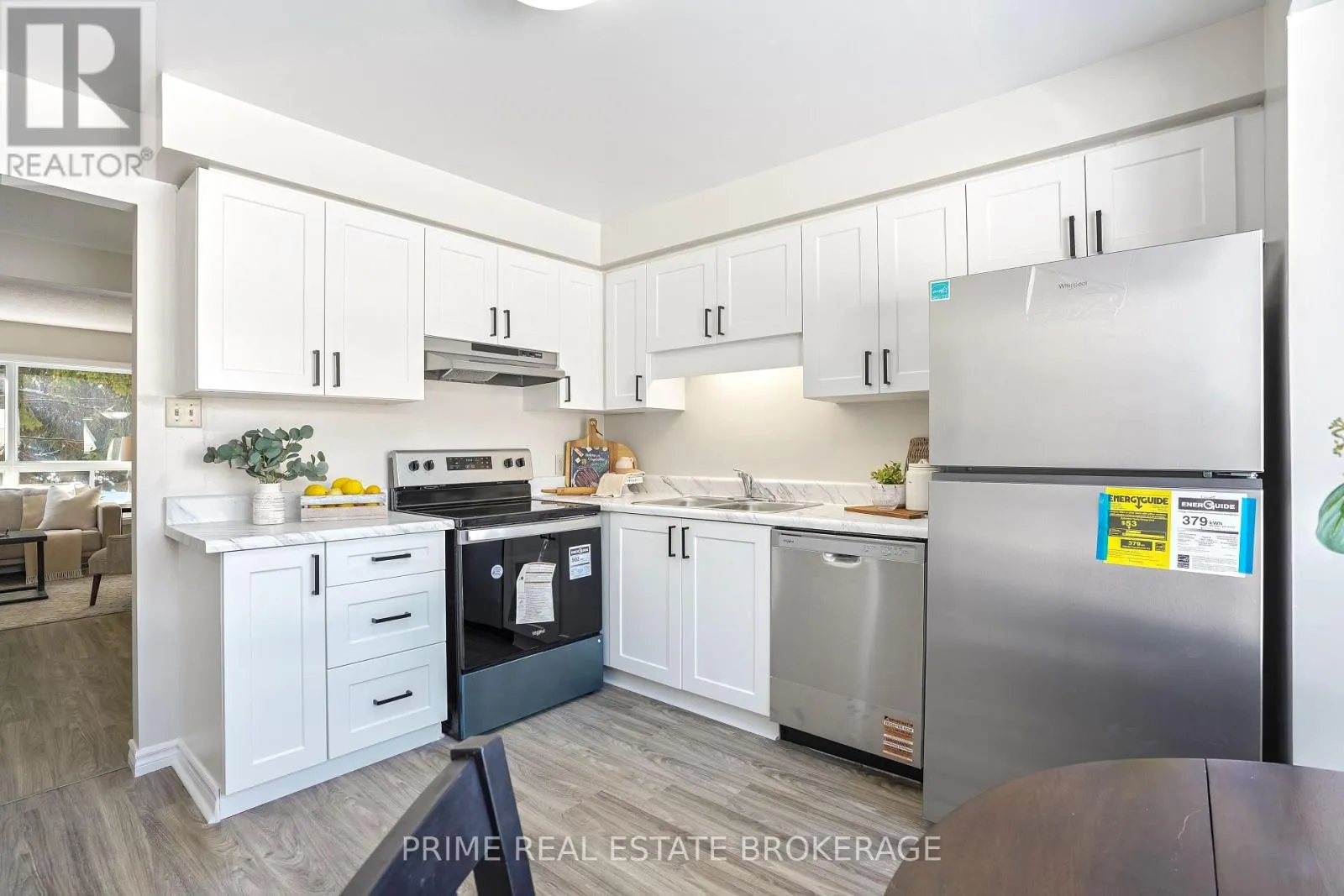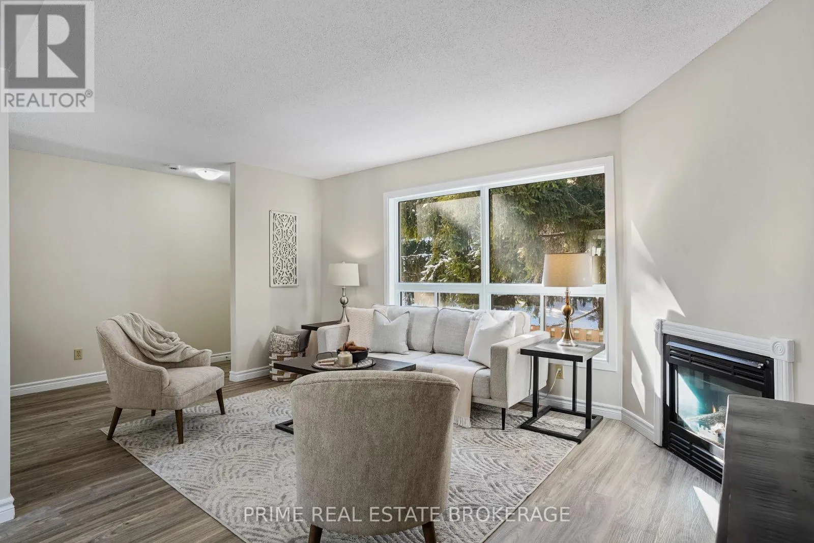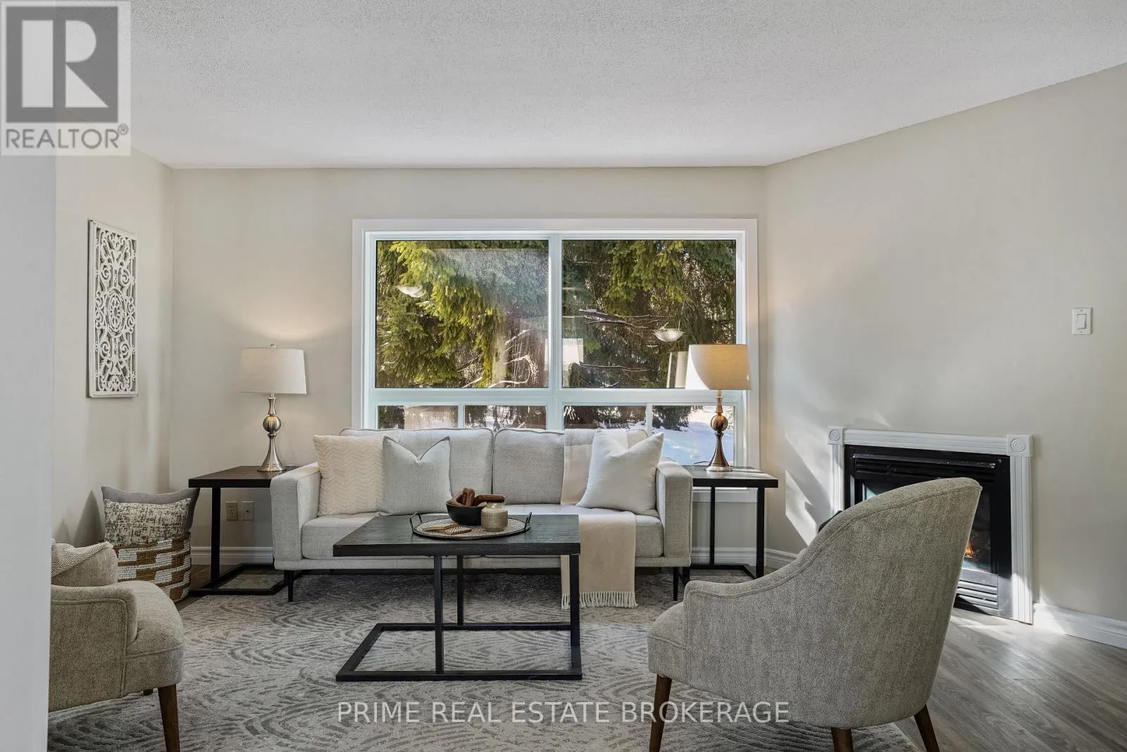 Cross Streets: Wharncliffe Road South. ** Directions: Wharncliffe Road South to Belmont Drive. Beautifully renovated 3-bedroom, 1.5-bath townhouse in a highly desirable location! This move-in-ready home offers the perfect combination of modern updates and everyday comfort. New lighting and hardware enhance the decor and then step inside to discover brand-new flooring throughout the main and second level and a completely updated kitchen featuring sleek cabinetry, stylish countertops, and all-new appliances. The bright and functional layout flows seamlessly from the living area with fireplace to the dining space - ideal for both relaxing and entertaining. Upstairs, you'll find three bedrooms and a 4 piece bathroom with new vanity, sink, counters and tile tub surround. The stairs are finished with brand-new carpet, adding comfort and a fresh touch to the home. The finished recreation room provides additional living space-perfect for a media room, home office, gym, or playroom. Large laundry/storage area. Enjoy outdoor living in your own private patio, ideal for summer evenings and weekend gatherings. Newly installed gas furnace and air conditioner. One parking spot included, with visitor parking throughout the complex. (id:27476)