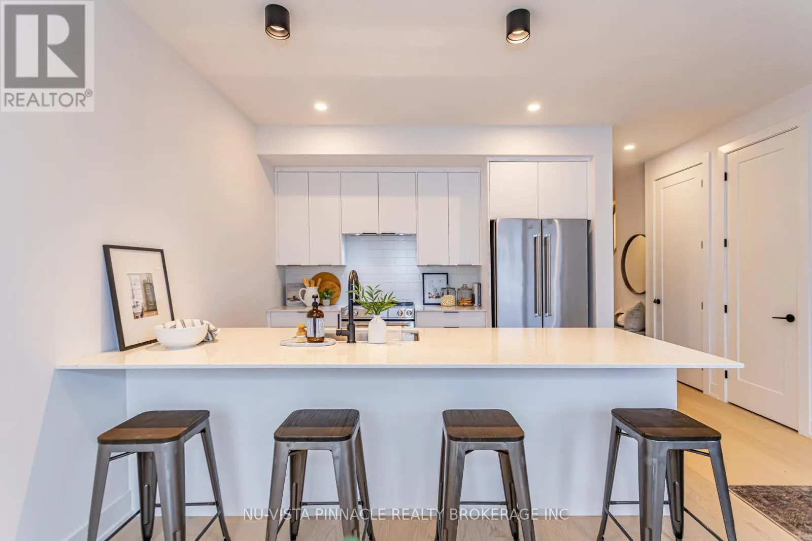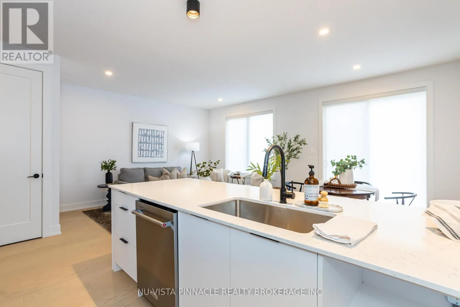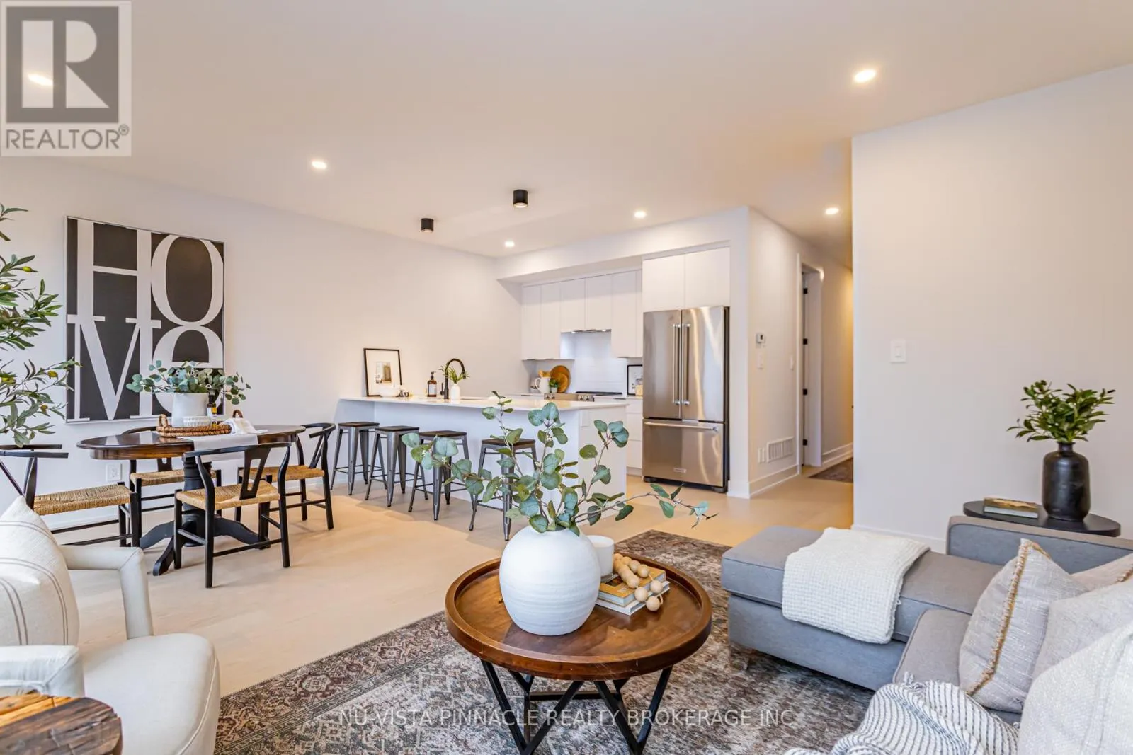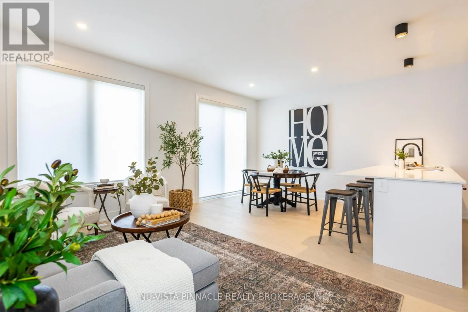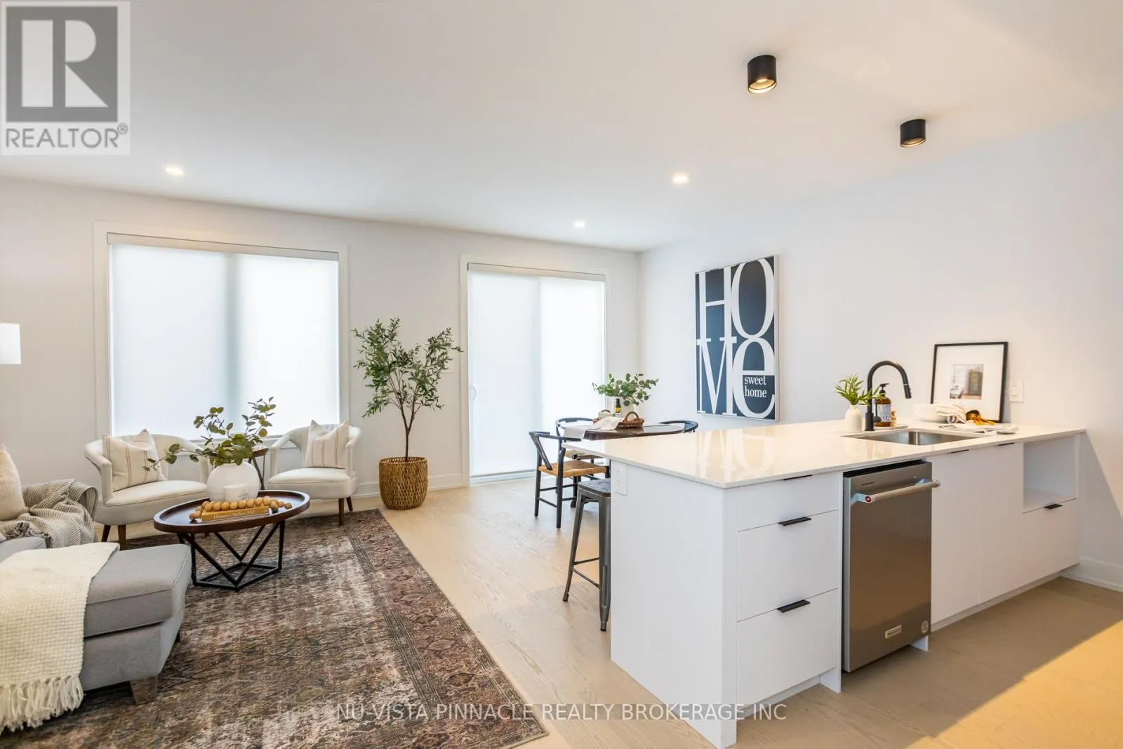 Cross Streets: Riverbend Road and Oxford St West. ** Directions: FROM OXFORD ST W , TURN ONTO RIVERBEND Rd., SUBDIVISION ON YOUR RIGHT SIDE. Welcome to Riverbend Towns by Legacy Homes of London - an exclusive collection of modern townhomes in the highly sought-after Riverbend community of West London. Now selling Phase 2 with anticipated Summer 2026 occupancy, this brand new home (to be built) offers professionally selected, clean contemporary finishes - thoughtfully curated by the builder for a polished, cohesive look. Enjoy boutique-style living just steps to a brand-new school (anticipated to open Fall 2027) and minutes from shopping, dining, parks, trails, and the vibrant energy of West 5. The perfect balance of quiet residential living and everyday convenience. This two-storey interior townhome features a bright, open-concept main floor designed for modern living. An oversized quartz island anchors the kitchen, flowing into a spacious dining area and airy living room - ideal for entertaining or relaxing at home. Engineered hardwood floors, 9' ceilings, and 8' interior doors on the main floor, elevate the space with a refined feel. Upstairs, the primary suite offers a walk-in closet and spa-inspired ensuite with dual sinks and a sleek walk-in shower. Two additional bedrooms, a 3 pc bathroom and a second-floor laundry provide flexibility and function for families, guests, or a home office. The unfinished basement includes a rough-in for a future 3-piece bath, with optional builder-finished packages available. Quality craftsmanship shines with brick and James Hardie siding, front and rear porches, and an insulated garage door. A low $115/month common-element fee covers private road snow removal and shared-area maintenance for easy, low-maintenance living. Riverbend Towns - modern, low-maintenance living in one of West London's most desirable communities! (id:27476)
