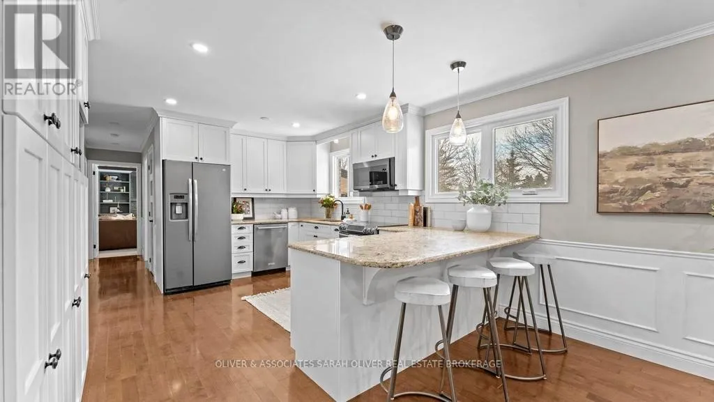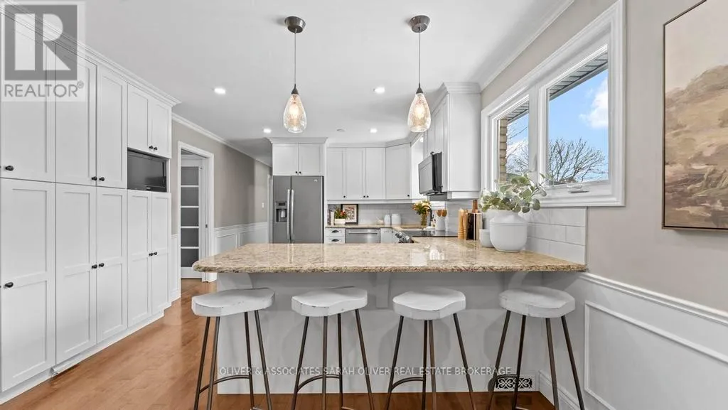 Cross Streets: Colonel Talbot and Southland. ** Directions: Take Colonel Talbot South to Southland, Left on Southland and Right on Scottsdale, property is on the South side of Scottsdale. Set on a beautifully treed half-acre lot in an exclusive small community setting, this exceptional two-storey residence offers the perfect balance of privacy, luxury, and convenience. Surrounded by mature trees and lush landscaping, the backyard feels like a private resort - complete with an inground pool, expansive entertaining space, pool house and covered patio. Peaceful seclusion rarely found so close to the city. Inside, the home features four generous bedrooms and thoughtfully updated living spaces designed for both everyday comfort and elegant entertaining. The gourmet kitchen is beautifully appointed with quality cabinetry, premium finishes, and large windows overlooking the private grounds. Updated bathrooms offer spa-inspired finishes and timeless sophistication. The fully finished lower level adds incredible versatility and includes a convenient walk-up to the backyard. This would be ideal for extended family living, guests, or seamless indoor-outdoor entertaining. Expansive windows throughout flood the home with natural light, enhancing its airy, upscale feel. This is a rare opportunity to enjoy estate-style living on a half acre, with resort-like amenities, in a welcoming community just moments from shopping, major highways and premier golf destinations. (id:27476)