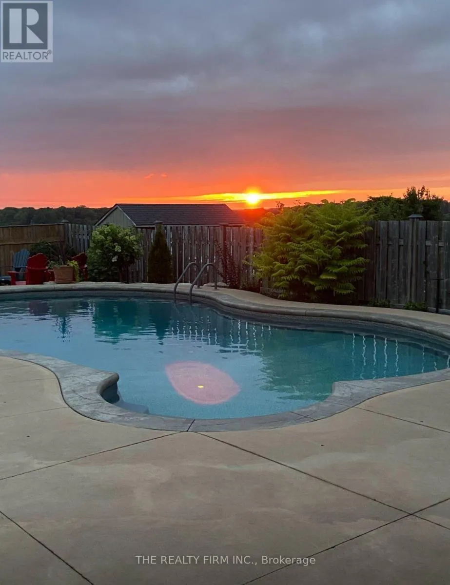 Cross Streets: WICKERSON RD AND LILAC GATE. ** Directions: West on Byron Baseline Rd, South on Wiickerson. Welcome to your private sunset-watching haven on the edge of desirable Byron, where luxury meets lifestyle in this stunning 3+1 bedroom, 2+2 bath, two-storey home. Set on a huge lot backing onto rolling countryside hills, this property offers breathtaking views, a heated saltwater in-ground pool ('17), and a fully finished basement designed for entertaining. First impressions shine with an extra-long driveway, upgraded front entry door, and a striking blend of stone, stucco, and brick, enhanced by landscaping and permanent app-controlled holiday lighting. Inside, timeless finishes and an open-concept layout flow seamlessly into a formal dining area and a well-appointed kitchen featuring newer high-end appliances, a corner pantry, functional design, and ample cabinetry. Clear sightlines lead directly to the showstopping backyard - an entertainer's dream complete with a fire pit area, shed with hydro, and evenings spent taking in mind-blowing sunsets night after night. The main floor also features a private office, powder room, and a custom mudroom/laundry room ('22). Upstairs, the spacious primary suite boasts 2 walk-in closets and a private ensuite, alongside two additional generous bedrooms and a full bathroom. Downstairs, the fully finished basement with newer carpet ('23) offers a fourth bedroom, half bathroom, and a recreation room wired for a professional entertainment system ideal for movie and game nights. Additional highlights include app-controlled lighting inside and out, a heated garage with epoxy flooring, and parking for approximately 6 vehicles in the drive. Located close to Byron's scenic trails, parks, top-rated schools, golf courses, and with easy access to the 401/402 and London's core, this move-in-ready, tech-integrated home delivers the perfect balance of privacy, convenience, and elevated living. Use the video link to see more photos and take a virtual tour. A list of the many upgrades is available. This home is the one you've been waiting for! (id:27476)