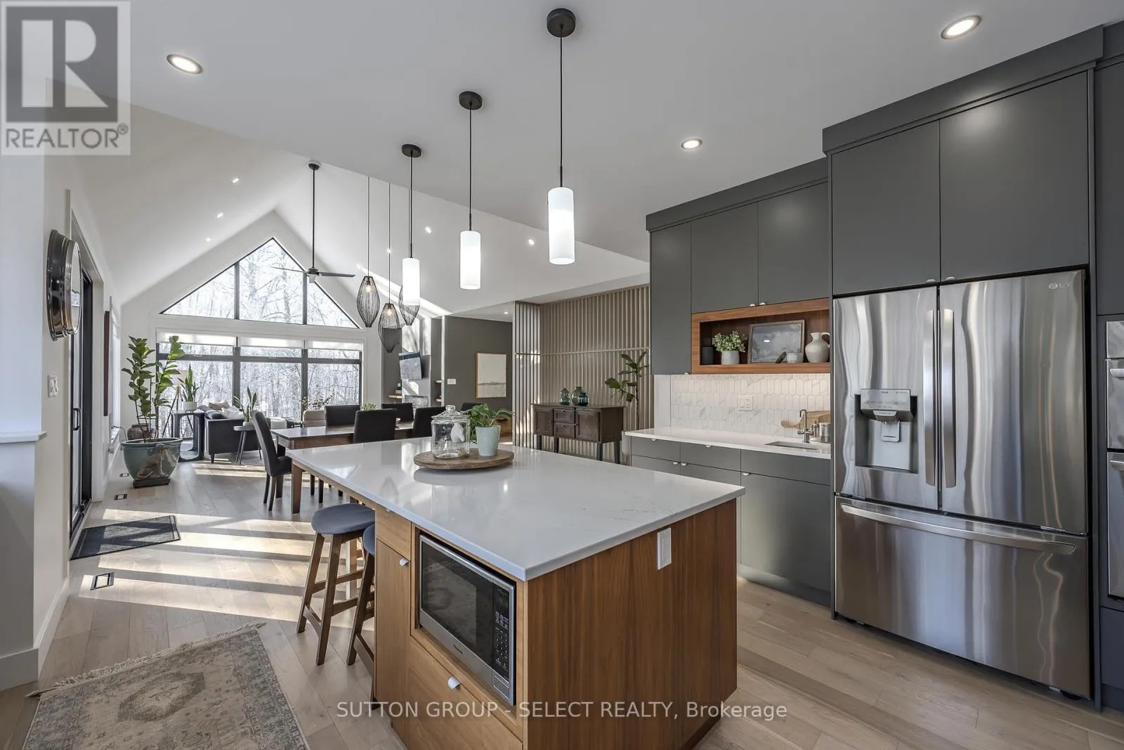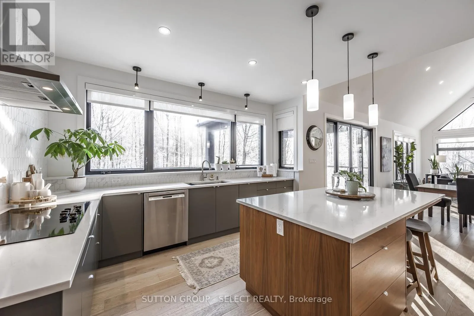 Cross Streets: Apricot Drive. ** Directions: Boler Rd to Manhattan - left on Apricot and right on Princeton. Executive bungalow on a spectacular 1/3-acre lot backing onto protected forest and pond system in prestigious Boler Heights. Positioned at the top of a quiet cul-de-sac, this residence offers rare privacy and immersive four-season views that feel more Muskoka than city living. The open-concept primary living spaces are anchored by a dramatic vaulted window wall that frames the treed landscape like living art. Designed with intentional sightlines across the wooded setting, the great room, dining area and kitchen flow together in a seamless fusion, bathed in natural light and a kaleidoscope of seasonal colour. Views travel effortlessly from one space to the next, allowing the forest to become part of the interior experience. A contemporary fireplace and striking wood slat illusion feature wall along the staircase add architectural texture and warmth. The chef-inspired kitchen is both refined & inviting, featuring a full-height tile backsplash feature wall, statement island, stainless appliances a walk-in pantry. Designed for effortless entertaining, it opens directly to the late partly covered deck with glass railings -an elevated outdoor living room suspended in the trees. Rich walnut detailing throughout the main level continues into the lower level, creating cohesive design continuity. The main floor primary suite offers private deck access, a spa-inspired ensuite and walk-in closet. A second bedroom, full bath, private office and generous mudroom/laundry enhance comfort and convenience, while the oversized garage includes EV charger. The walkout lower level is finished with in-floor radiant heat and features an expansive entertaining area with wet bar, 3 additional bedrooms and a covered patio with hot tub. Large windows draw natural light throughout. A full bath with exterior access supports future pool plans and refined backyard gatherings. An exceptional opportunity for retirees or discerning buyers seeking a luxury cottage-inspired lifestyle within the city. (id:27476)