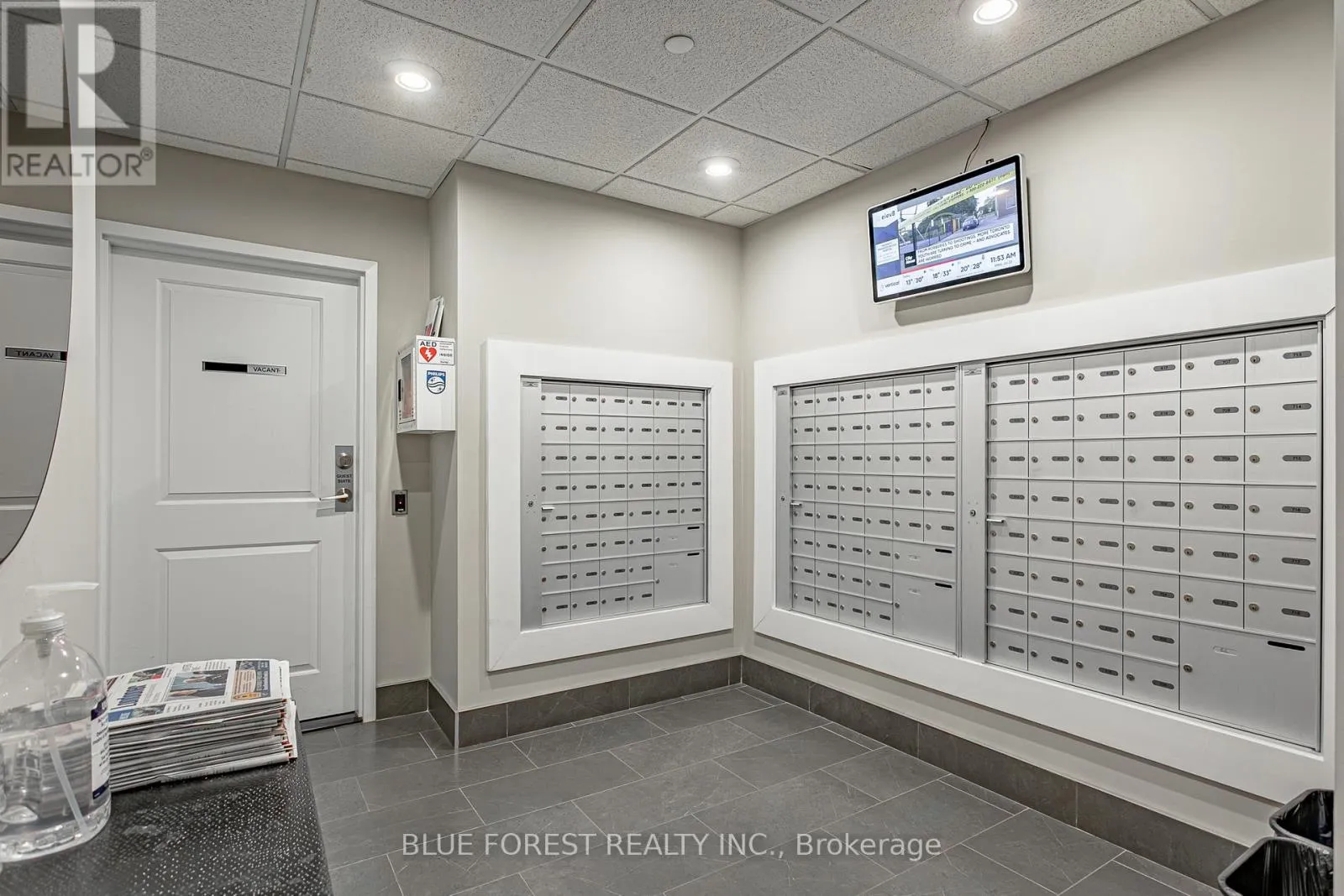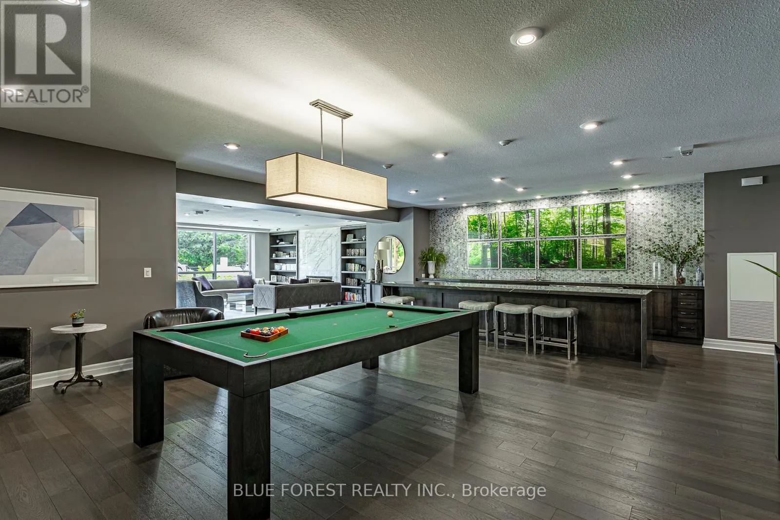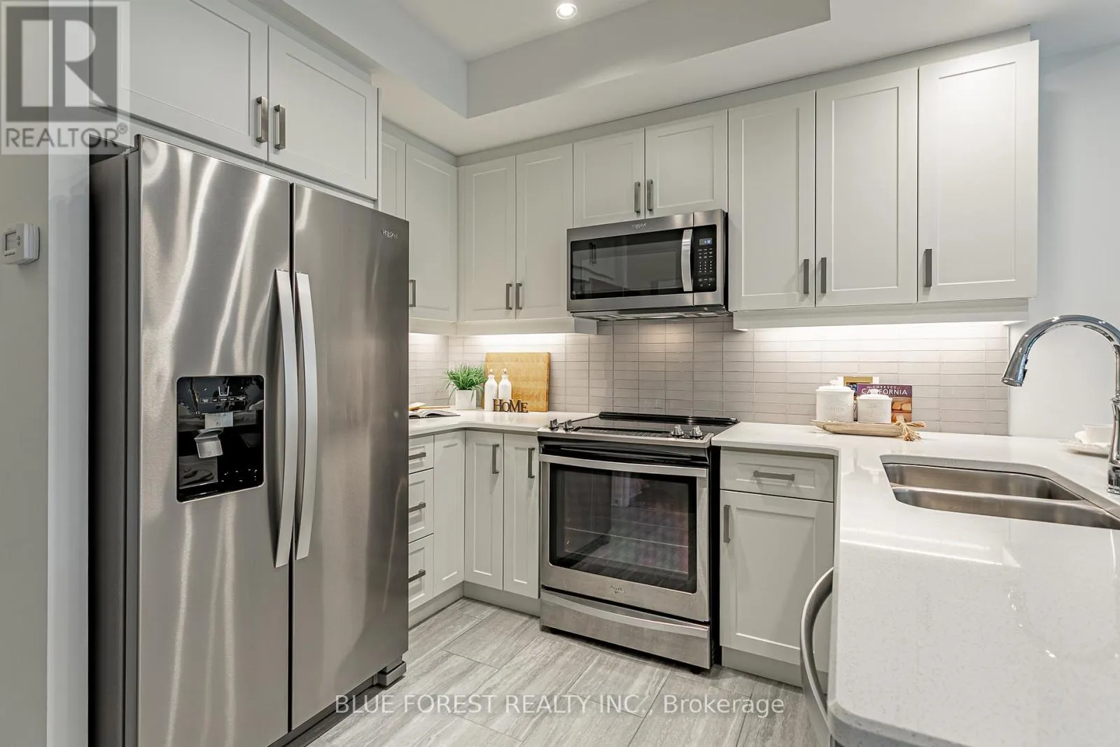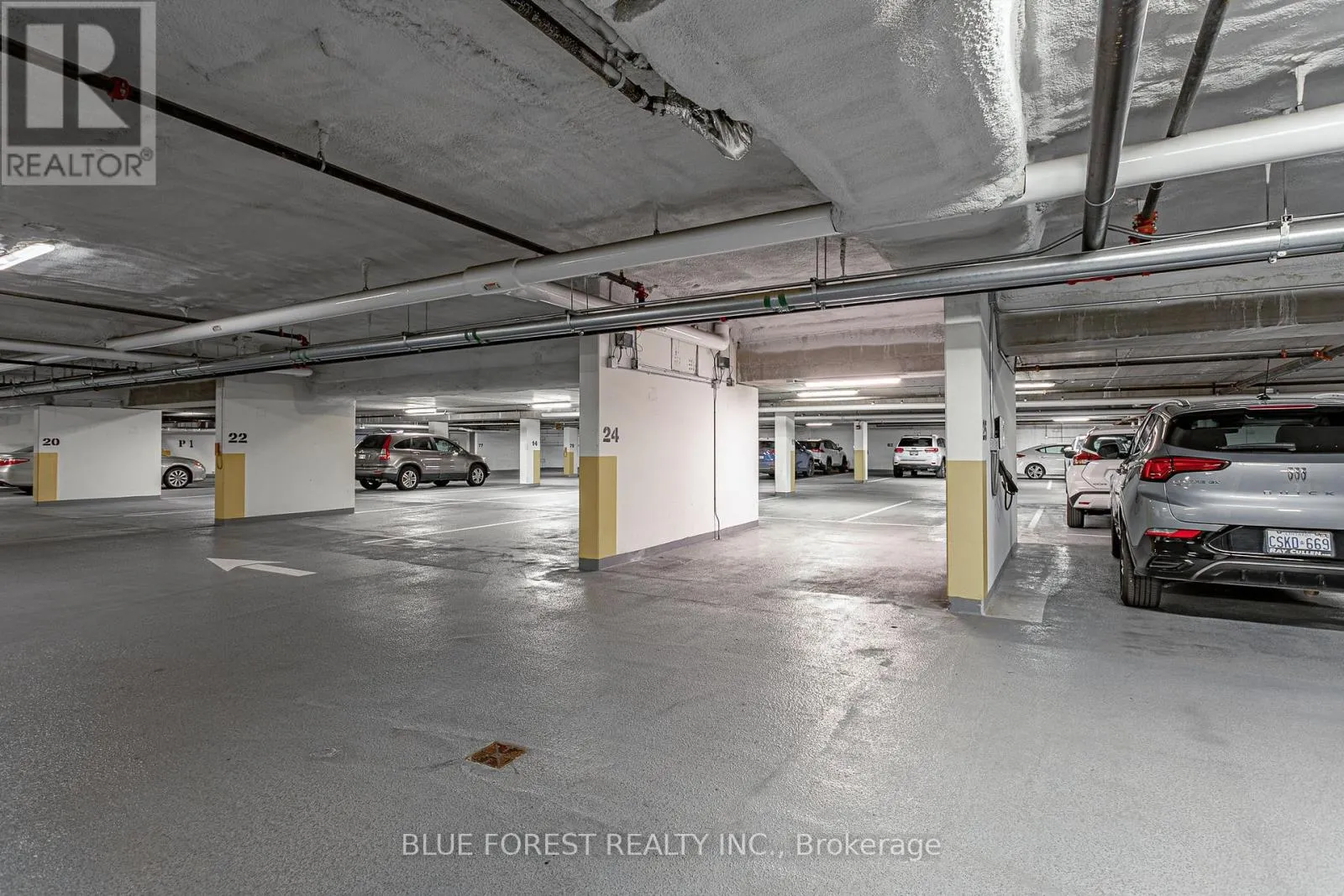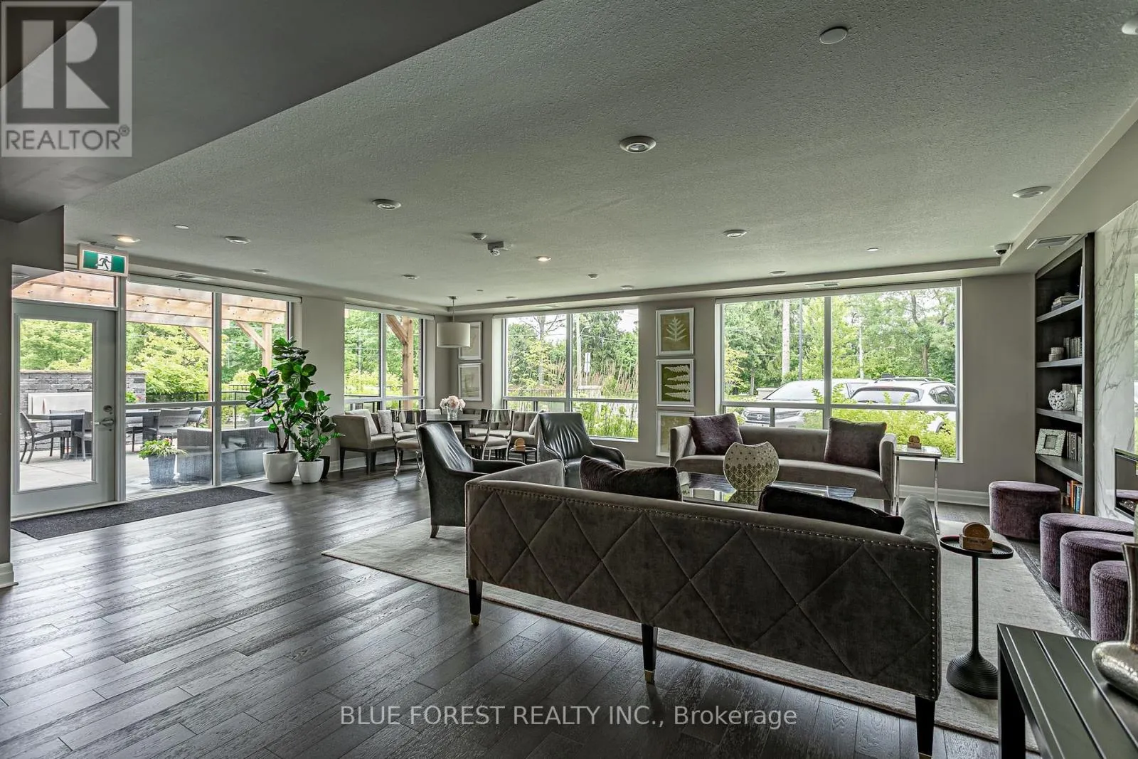 Cross Streets: Boler Rd. & Commissioners Rd. ** Directions: Commissioners Rd W. to Byron. Stylish and modern 6-year-old condo (Parkwest) perfectly situated across from the scenic Springbank Park in highly sought-after Byron. The bright, contemporary kitchen is thoughtfully designed for both style and function, featuring crisp white cabinetry, stainless steel appliances, quartz countertops, tile flooring, and a convenient breakfast bar that opens to the main living area. The open-concept layout flows effortlessly into the dining and living spaces, finished with warm laminate flooring and anchored by a sleek electric fireplace. The South facing unit enjoys sunshine throughout most of the day, creating a warm and inviting atmosphere year round. Step out onto your private balcony, surrounded by mature trees, an ideal spot to enjoy morning coffee or unwind in peace. The spacious primary bedroom boasts a professionally designed walk-in closet and large windows that flood the room with natural light. A versatile den provides the perfect flex space for a home office, guest room, or reading nook. The oversized 5-piece bathroom is both elegant and functional, offering double sinks, quartz countertops, large tub, and a glass-enclosed shower. Additional features include in-suite laundry, owned underground parking space, and a private storage locker. Residents enjoy exceptional amenities, including a stylish party room with pool table, kitchen and lounge area; a fully equipped fitness room, two outdoor patios, a guest suite, and even a private golf simulator room. Ample visitor parking. Enjoy direct access to the park with walking trails along the Thames River. Walking distance to shopping, restaurants, and bus stop. For those avid skiers, Boler Mountain is just minutes away. Condo fees include heating, air conditioning, water, building insurance, and outdoor maintenance making for effortless living in a truly exceptional location. (id:27476)