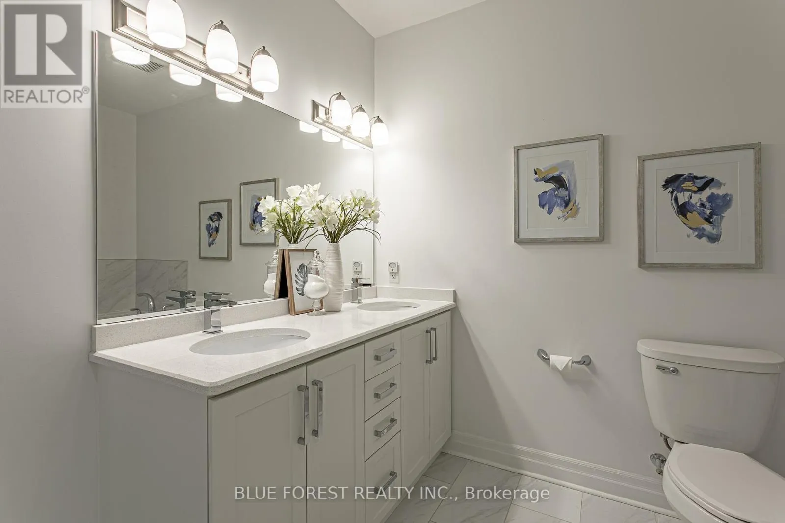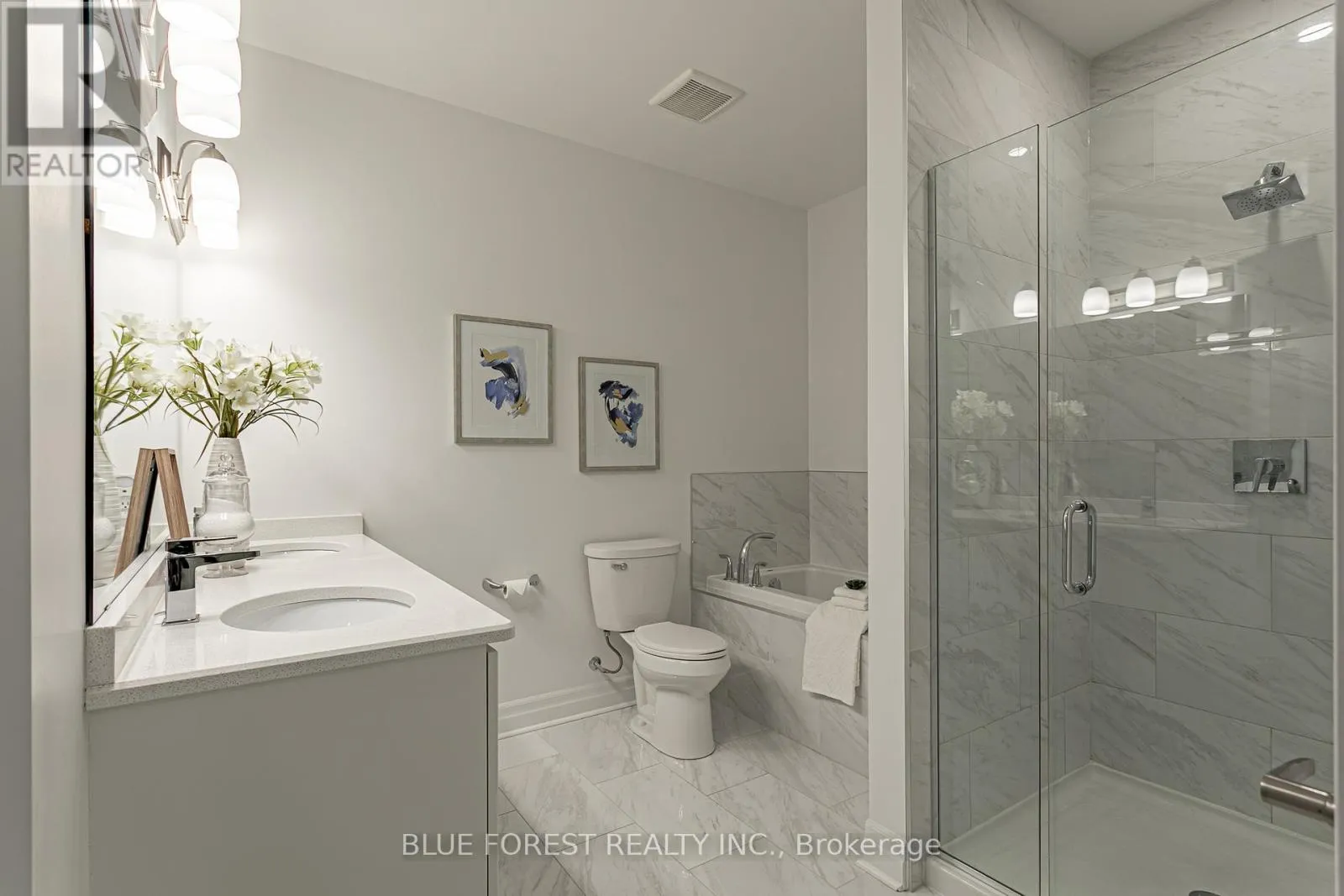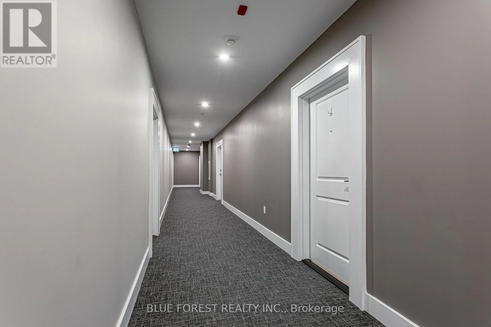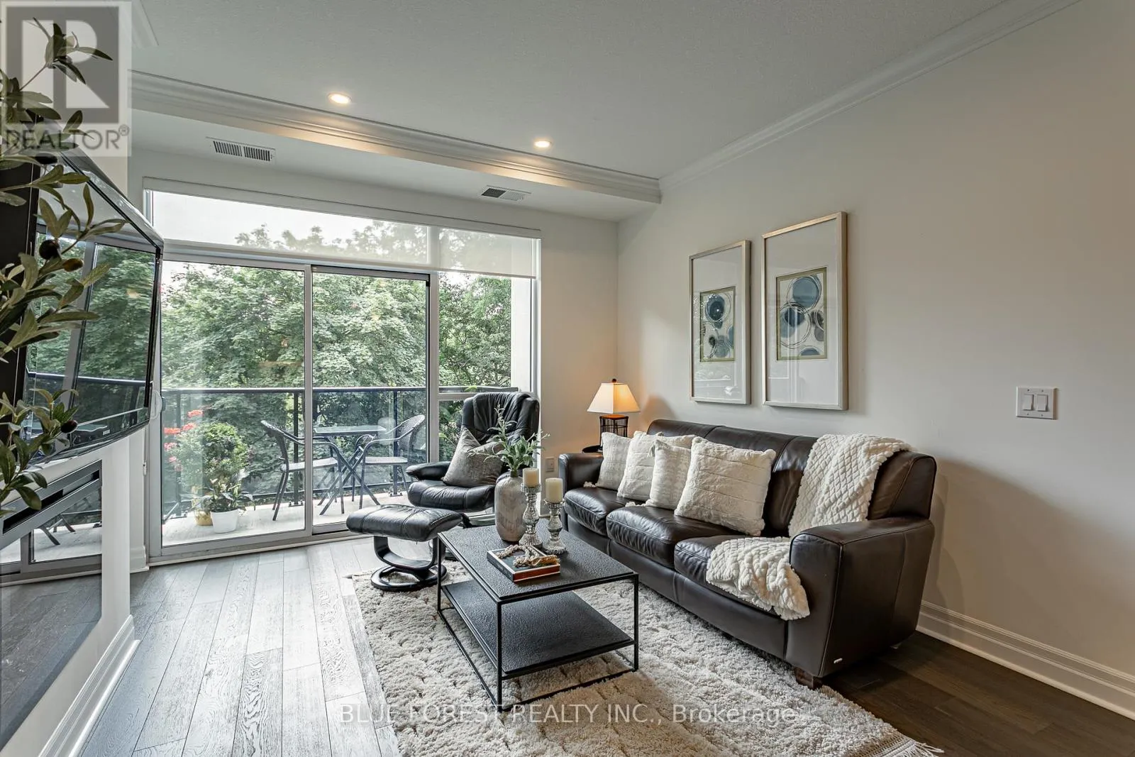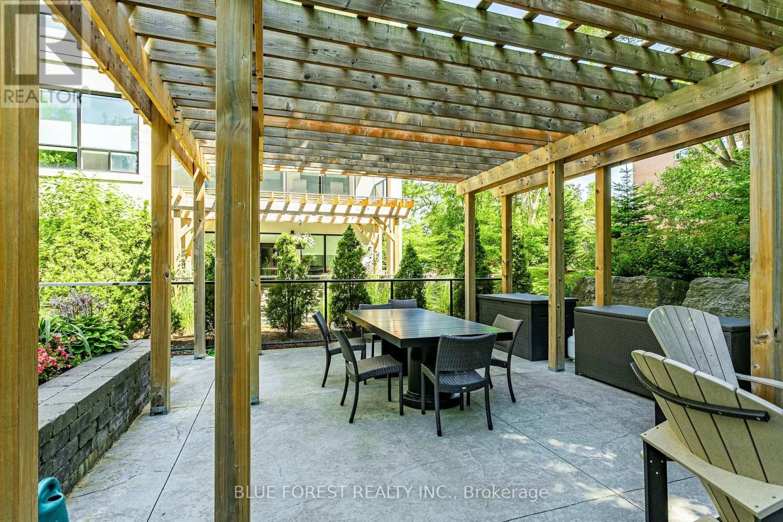 Cross Streets: Boler Rd. & Commissioners Rd. ** Directions: Commissioners Rd W. to Byron. Stylish and modern 6-year-old condo (Parkwest) perfectly situated across from the scenic Springbank Park in highly sought-after Byron. The bright, contemporary kitchen is thoughtfully designed for both style and function, featuring crisp white cabinetry, stainless steel appliances, quartz countertops, tile flooring, and a convenient breakfast bar that opens to the main living area. The open-concept layout flows effortlessly into the dining and living spaces, finished with warm laminate flooring and anchored by a sleek electric fireplace. The South facing unit enjoys sunshine throughout most of the day, creating a warm and inviting atmosphere year round. Step out onto your private balcony, surrounded by mature trees, an ideal spot to enjoy morning coffee or unwind in peace. The spacious primary bedroom boasts a professionally designed walk-in closet and large windows that flood the room with natural light. A versatile den provides the perfect flex space for a home office, guest room, or reading nook. The oversized 5-piece bathroom is both elegant and functional, offering double sinks, quartz countertops, large tub, and a glass-enclosed shower. Additional features include in-suite laundry, owned underground parking space, and a private storage locker. Residents enjoy exceptional amenities, including a stylish party room with pool table, kitchen and lounge area; a fully equipped fitness room, two outdoor patios, a guest suite, and even a private golf simulator room. Ample visitor parking. Enjoy direct access to the park with walking trails along the Thames River. Walking distance to shopping, restaurants, and bus stop. For those avid skiers, Boler Mountain is just minutes away. Condo fees include heating, air conditioning, water, building insurance, and outdoor maintenance making for effortless living in a truly exceptional location. (id:27476)