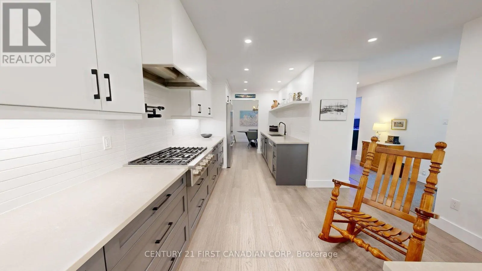 Cross Streets: COMMISSIONERS AND TOPPING. ** Directions: FROM WONDERLAND ROAD; EAST ON COMMISSIONERS , SOUTH ON TOPPING, PROPERTY ON THE WEST SIDE. Discover elevated single-level living in this fully reimagined bungalow townhome, where exceptional craftsmanship and thoughtful design create a truly turnkey experience. Extensively renovated throughout, this home offers refined finishes and premium upgrades ideal for buyers seeking both comfort and quality. The centerpiece is a beautifully designed chef's kitchen featuring GE Café and Bosch 800 Series appliances, including a gas cooktop with pot filler, convection wall oven, and built-in microwave. Custom Casey's cabinetry, quartz countertops, under-cabinet lighting, floating shelves, and a sleek VENT-A-HOOD combine style and function. A large island and pull-out pantry provide excellent workspace and storage. Engineered hardwood flooring, dimmable pot lights, and remote-controlled bedroom blinds enhance comfort, while custom built-in shelving and modern glass-panel closet doors add practical storage. The primary suite includes a motion-sensor walk-in closet and 220V wiring ready for a future stacked washer and dryer. Spa-inspired bathrooms feature quartz vanities, frameless glass walk-in rain showers, and built-in bench seating. The finished basement adds valuable living space with a custom steel stair railing, ample storage, and a natural gas line ready for a future fireplace. Exterior improvements include a new concrete patio and walkway, manicured landscaping, finished garage, patio doors with built-in blinds, and most windows replaced in 2021. Additional updates include a Maytag Commercial washer and dryer, newer furnace (4 yrs), water heater (5 yrs), upgraded electrical, loose-lay basement flooring, and upgraded doors and trim throughout. Located in a quiet, well-maintained community, this home is ideal for downsizers, professionals, or anyone seeking stylish, low-maintenance living. Move in and enjoy - quality like this is rare. This home will set you apart. (id:27476)