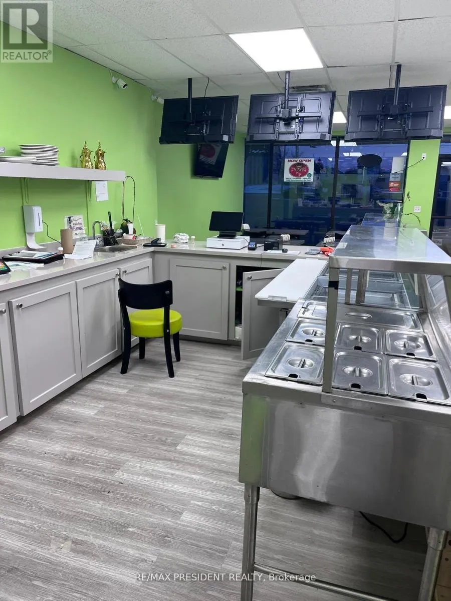 Cross Streets: Commissioners road E and Pond Mills Road. ** Directions: NORTH EAST CORNER OF COMMISSIONERS RD EAST & POND MILLS RD. Busy Plaza - Indian Grocery Store, Bank, Subway, Convenience and other stores in the same plaza..This is a rare opportunity to own a well-established, highly regarded Indian/Pakistani restaurant in a prime high-traffic location and highly recommended Google reviews. The independent, non-franchise business offers both dine-in and take-out service with seating for 20+ guests and ample surface parking in the plaza. A fully equipped kitchen includes a 6-burner stove, BBQ grill, naan oven, tandoor, two additional stoves, a walk-in cooler, double-door freezer, a dough-making machine, two extra freezers, water heater, and a complete security camera system and much more. The current owner is retiring and will provide training to ensure a smooth transition. You can also convert this into different cuisine as well. With shorter operating hours at present, there is strong potential to increase revenue by extending hours or adding catering and tiffin services to capture nearby markets such as students, taxi drivers, and truck drivers (proximity to major truck stops). All equipment, furniture, and leasehold improvements are included in the turnkey sale, along with a long-term lease offering optional renewal terms. AI Image from the front. (id:27476)