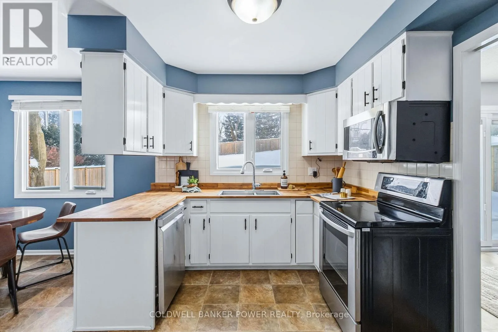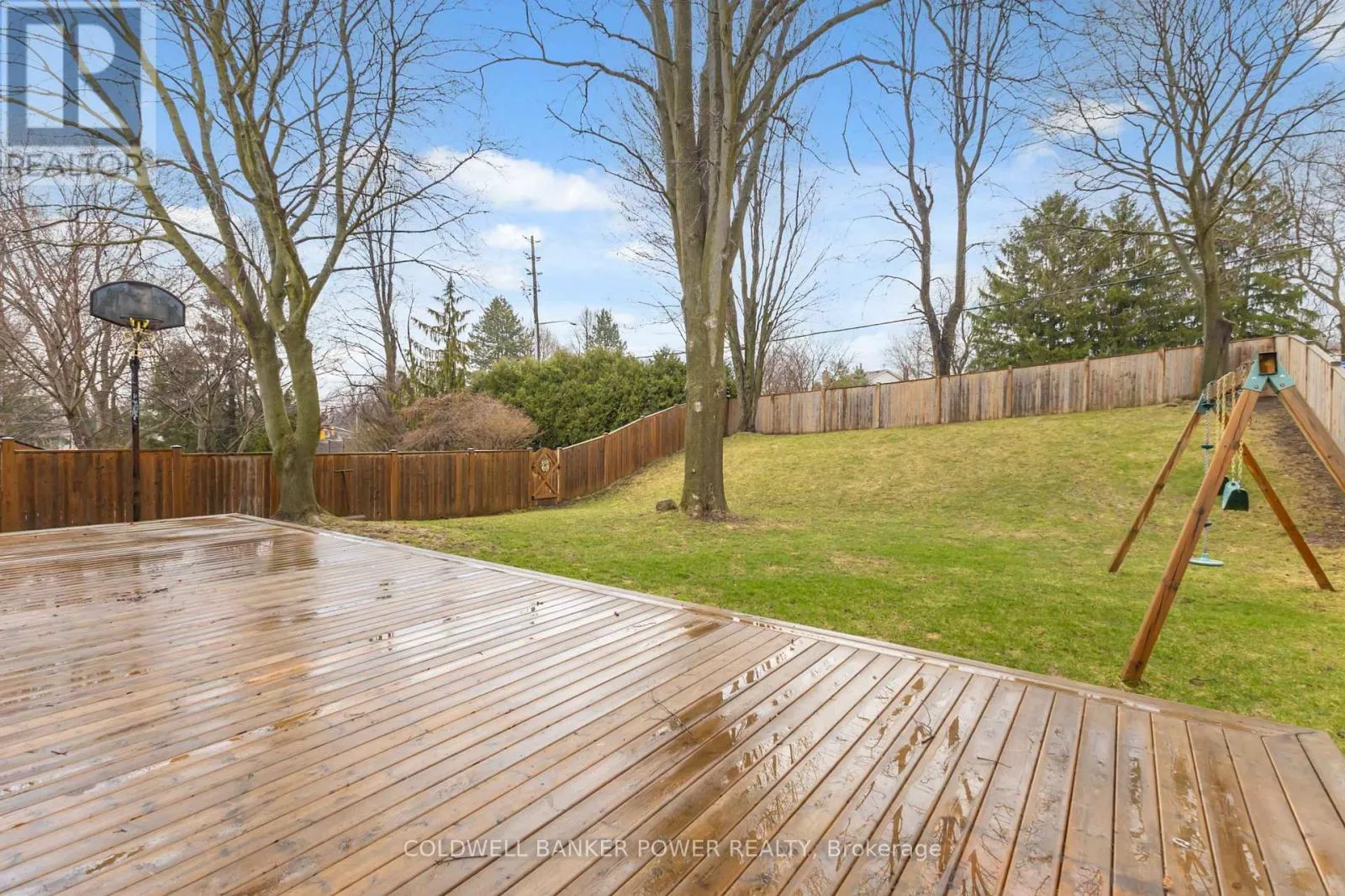 Cross Streets: Boler Rd & Griffith St. ** Directions: Boler Rd to Griffith St to Foxcroft Cres. Much sought after MATURE BYRON NEIGHBOURHOOD. This 4+1 bedroom is situated on a fully fenced 150 foot lot. Spacious oversized floor plan with separate living room, formal dining room, main floor family room with wood burning fireplace, large eat-in kitchen, and main floor laundry as well as open concept finished lower level. Huge primary bedroom with spacious closet space and full ensuite bath. Professionally painted throughout, updates to bathrooms, massive 64 foot deck in rear yard, new fencing in 2021, all windows and doors have been replaced at various times except for manual garage door, Newer luxury vinyl flooring, newer carpeting. Most appliances newer and include Fridge, stove, dishwasher, washer, dryer, and microwave. Rare opportunity.... and just minutes to excellent schools, sports complex, shopping and walking trails. (id:27476)