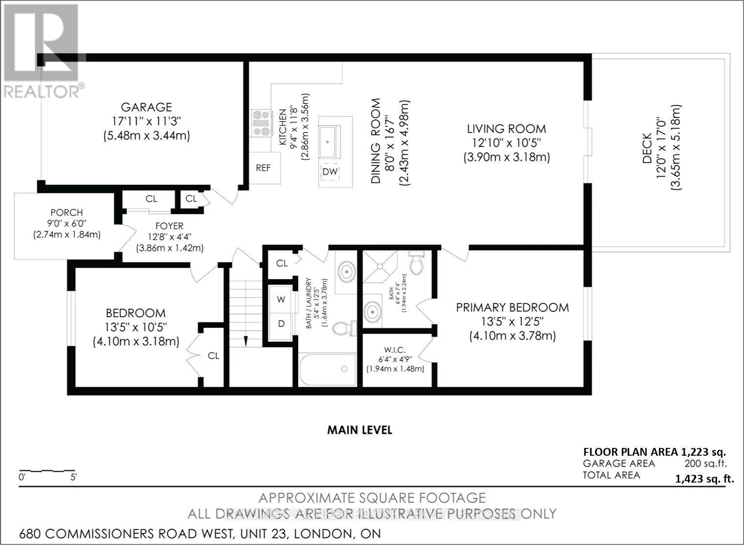 Cross Streets: Commissioners & Wonderland. ** Directions: Commissioners Rd W between Cranbrook & Nottinghill. Westmount ONE FLOOR BUNGALOW CONDO offering great value and just minutes to all major shopping, restaurants, churches, coffee shops, highways and more. Very desirable location at rear of complex backing to single family homes...very private. Open concept design with vaulted ceilings and skylight. Large bright white kitchen with full breakfast bar, hardwood floors through most of main floor, large rear sundeck (new in 2025) off great room. Spacious primary bedroom with walk-in closet and full ensuite bath. Main floor laundry. Single car garage with automatic opener and inside entry. 5 appliances included. (id:27476)