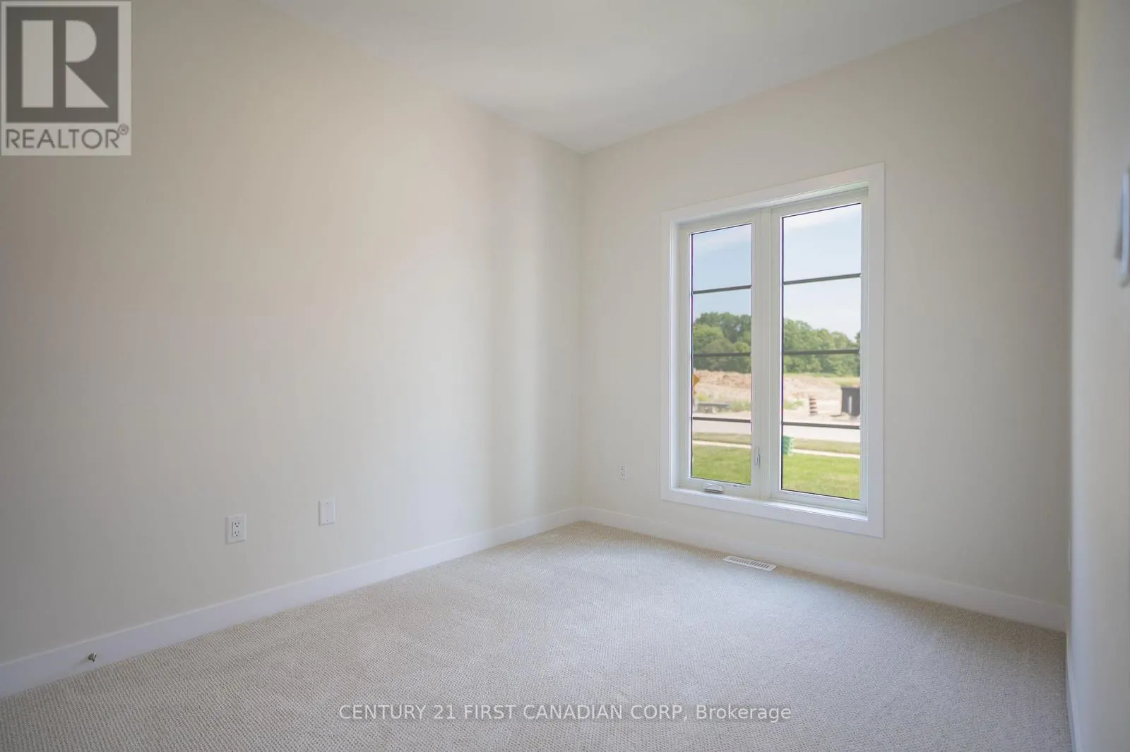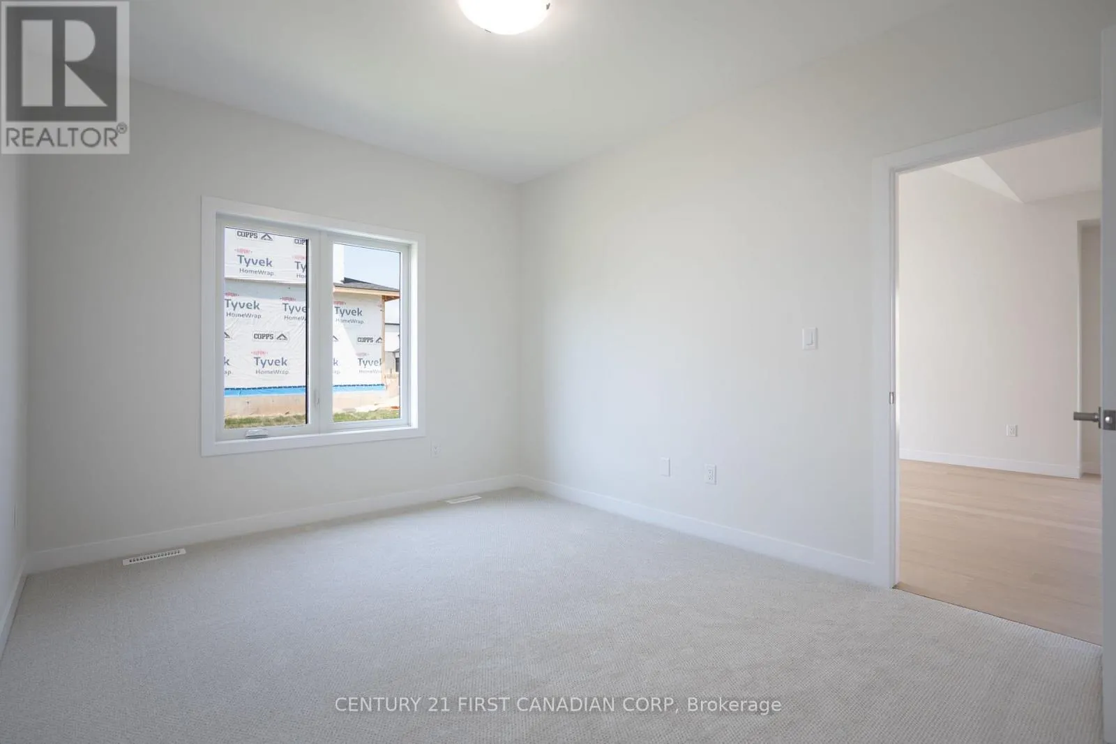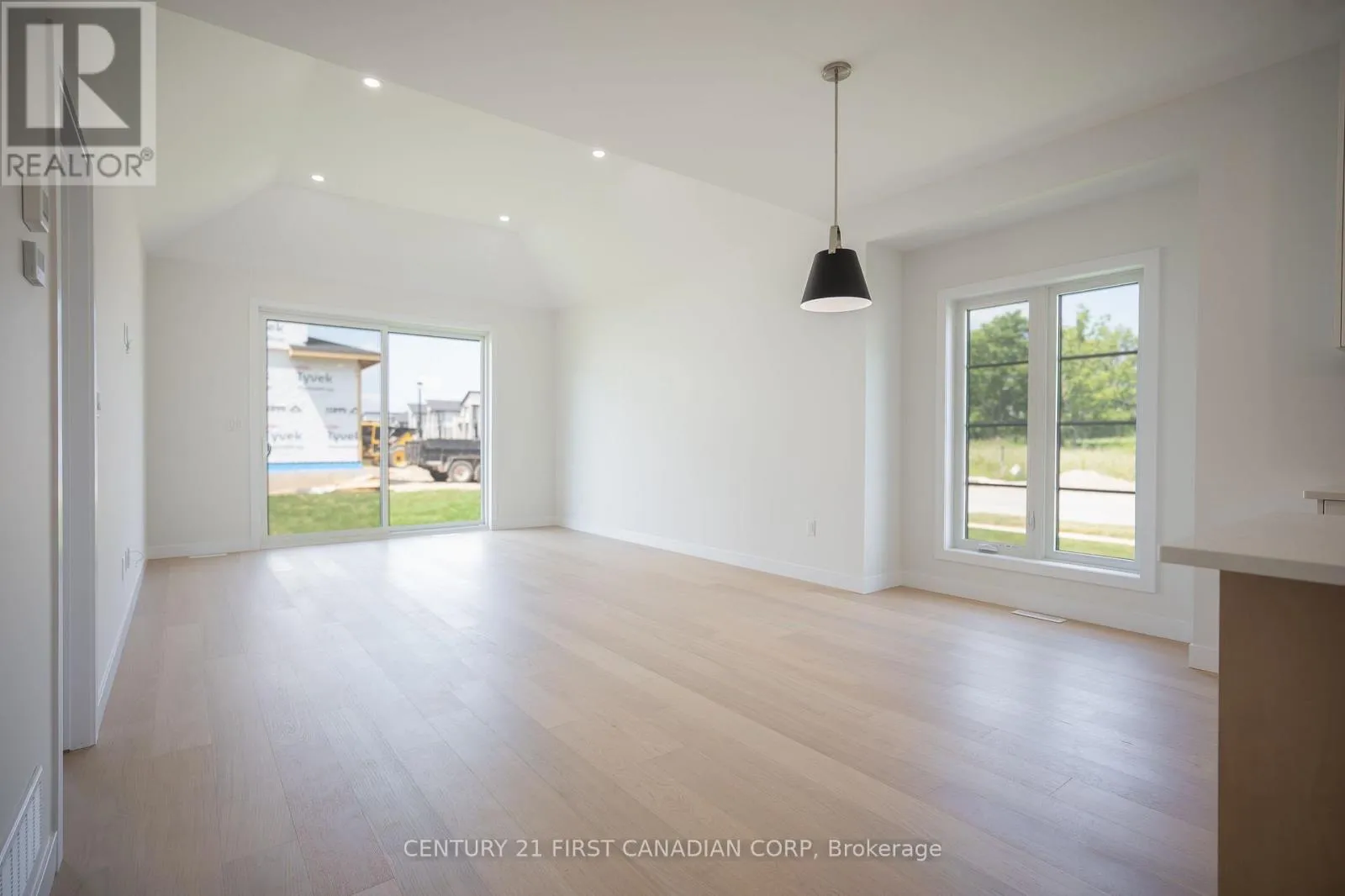 Cross Streets: Campbell Street and Main Street. ** Directions: From Colonel Talbot, drive eastbound on Royal Magnolia Avenue and turn right on to Campbell Street. At the roundabout, take the third exit (turn left). This bungalow is at the end on the lefthand side. LAST CHANCE TO OWN - NEW BUILD EXECUTIVE BUNGALOW TOWNHOME! One of the final Move-In Ready homes in this highly desirable Lambeth development. This stunning 2 Bedroom, 2 Full Bathroom bungalow offers 1,281 SqFt of thoughtfully finished main floor space, complemented by a spacious unfinished basement with endless possibilities. The first thing you notice when you step inside is how bright the home is with all the large windows throughout. A beautifully upgraded kitchen featuring quartz countertops, ceiling-height cabinetry, and a stainless steel chimney-style range hood. The open-concept design flows effortlessly into the dinette and great room, where a dramatic 12' vaulted ceiling and oversized sliding patio door create an airy, inviting atmosphere. Premium finishes including engineered hardwood, ceramic tile, and plush bedroom carpeting provide both luxury and comfort throughout. Situated on a large 45' wide by 118' deep lot with a generous side yard and fencing already completed by the builder, this home offers rare outdoor space for a townhome. As a Freehold Development, enjoy NO CONDO FEES! The striking stone and Hardie panel exterior provide strong curb appeal and lasting durability for decades to come. In a location just minutes from major highways, shopping centres, parks, and multiple sporting locations, this home delivers on all fronts. Opportunities like this are rare - especially with only two units remaining! Visit our weekly open houses or book your private showing today to experience the ease of move-in ready bungalow living. (id:27476)