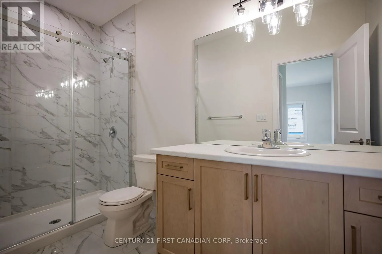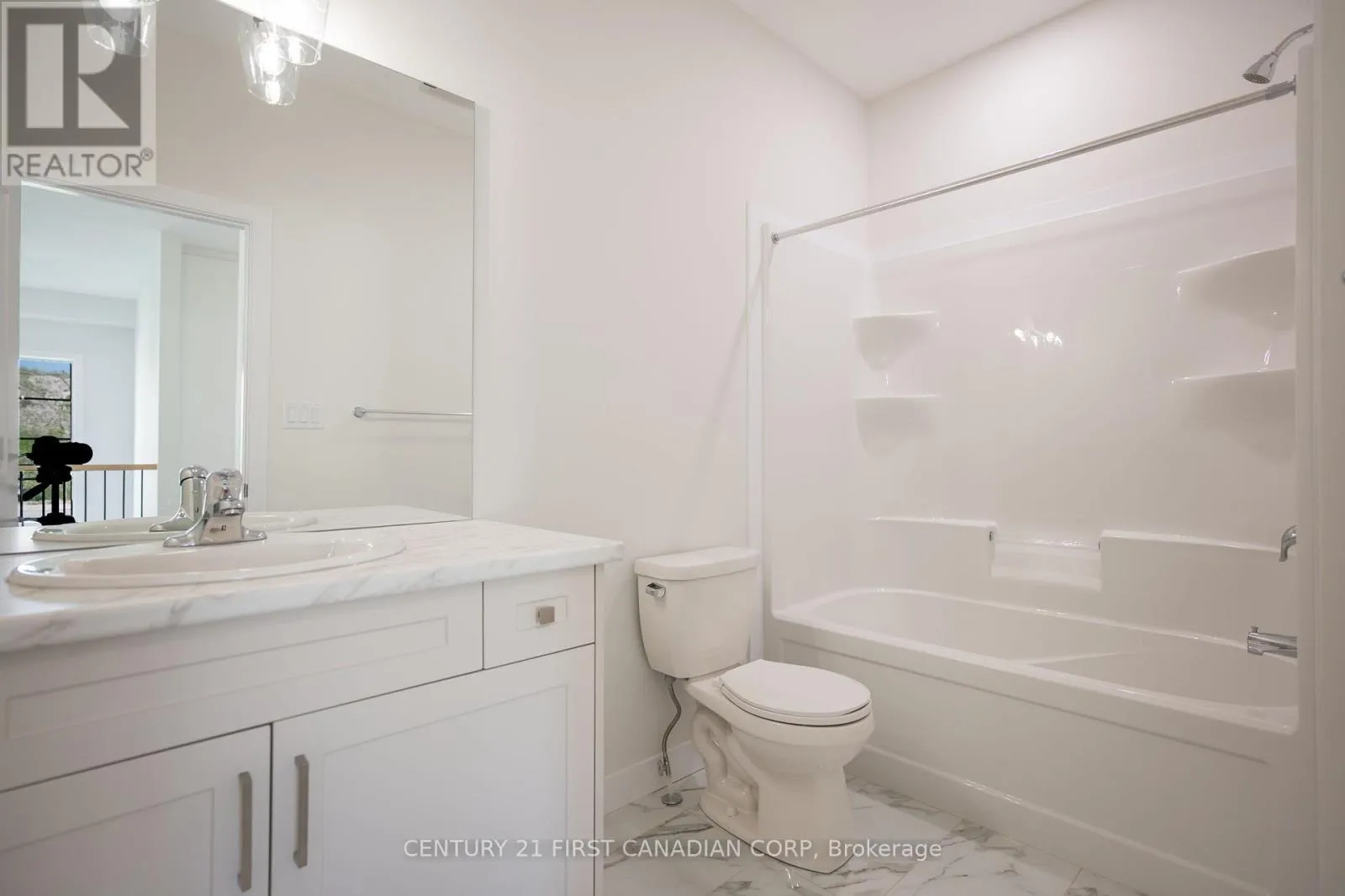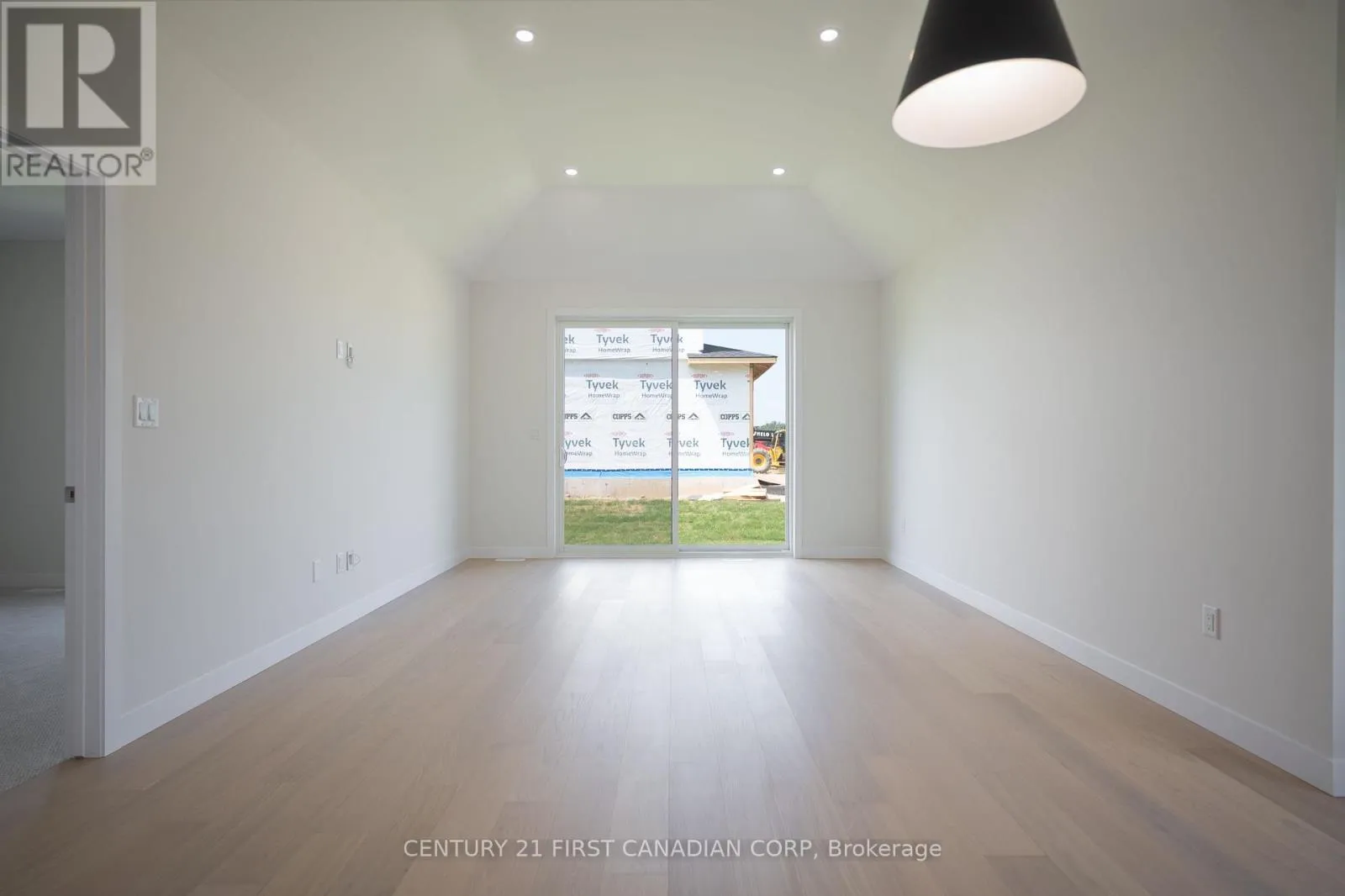 Cross Streets: Campbell Street and Main Street. ** Directions: From Colonel Talbot, drive eastbound on Royal Magnolia Avenue and turn right on to Campbell Street. At the roundabout, take the third exit (turn left). This bungalow is at the end on the lefthand side. LAST CHANCE TO OWN - NEW BUILD EXECUTIVE BUNGALOW TOWNHOME! One of the final Move-In Ready homes in this highly desirable Lambeth development. This stunning 2 Bedroom, 2 Full Bathroom bungalow offers 1,281 SqFt of thoughtfully finished main floor space, complemented by a spacious unfinished basement with endless possibilities. The first thing you notice when you step inside is how bright the home is with all the large windows throughout. A beautifully upgraded kitchen featuring quartz countertops, ceiling-height cabinetry, and a stainless steel chimney-style range hood. The open-concept design flows effortlessly into the dinette and great room, where a dramatic 12' vaulted ceiling and oversized sliding patio door create an airy, inviting atmosphere. Premium finishes including engineered hardwood, ceramic tile, and plush bedroom carpeting provide both luxury and comfort throughout. Situated on a large 45' wide by 118' deep lot with a generous side yard and fencing already completed by the builder, this home offers rare outdoor space for a townhome. As a Freehold Development, enjoy NO CONDO FEES! The striking stone and Hardie panel exterior provide strong curb appeal and lasting durability for decades to come. In a location just minutes from major highways, shopping centres, parks, and multiple sporting locations, this home delivers on all fronts. Opportunities like this are rare - especially with only two units remaining! Visit our weekly open houses or book your private showing today to experience the ease of move-in ready bungalow living. (id:27476)