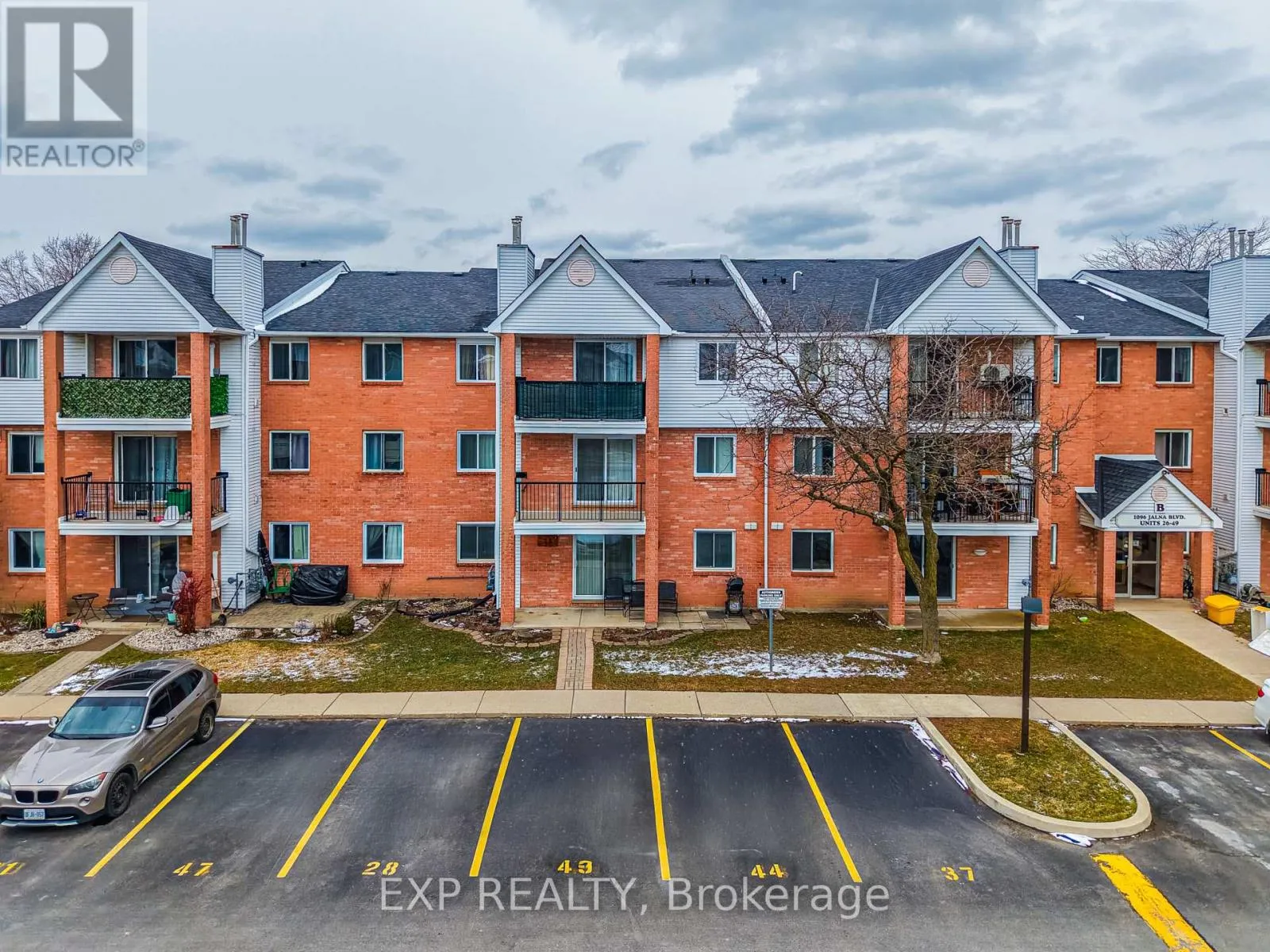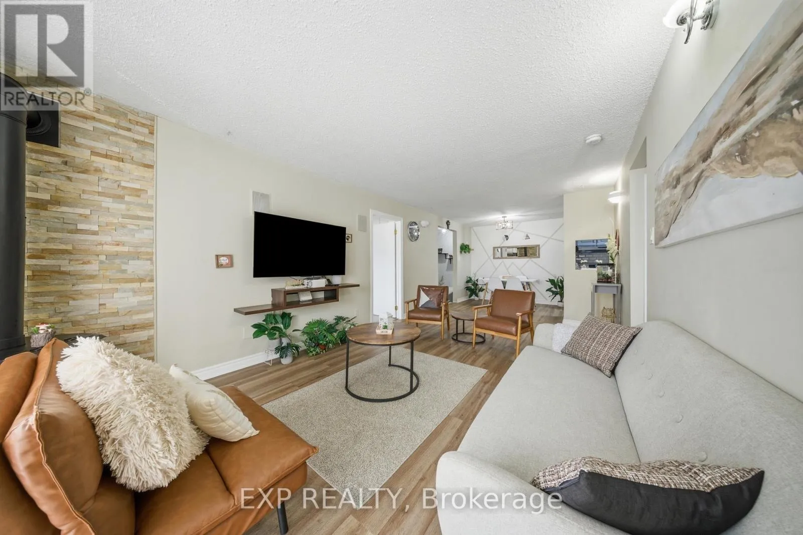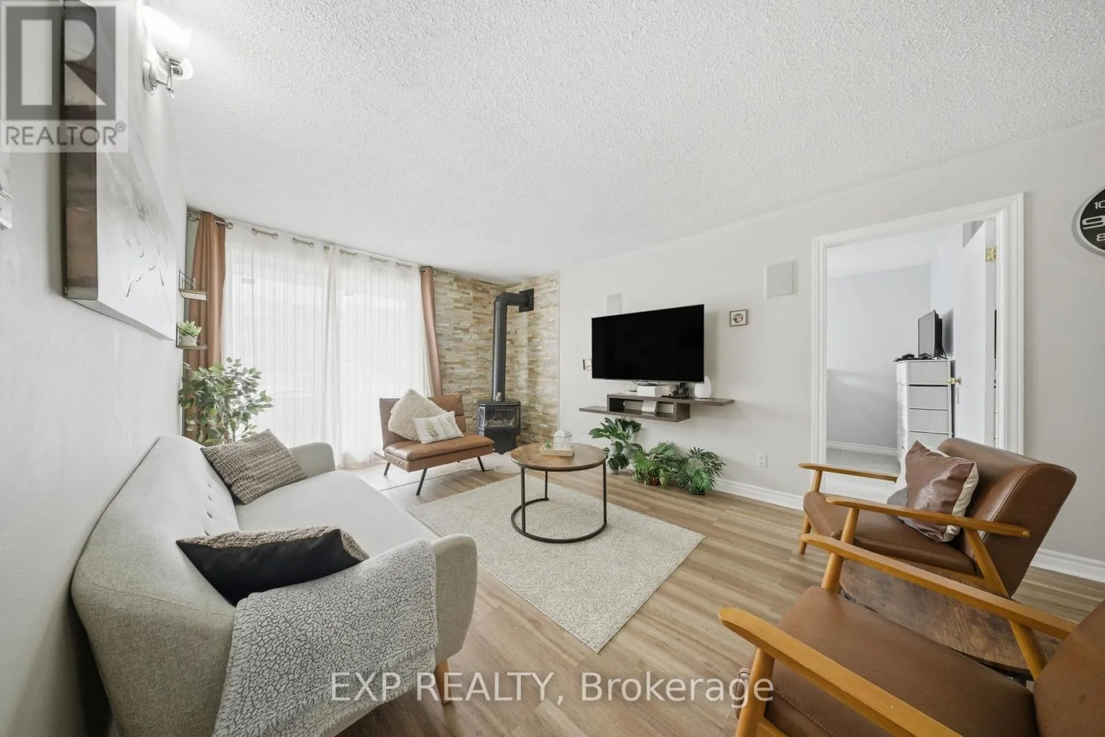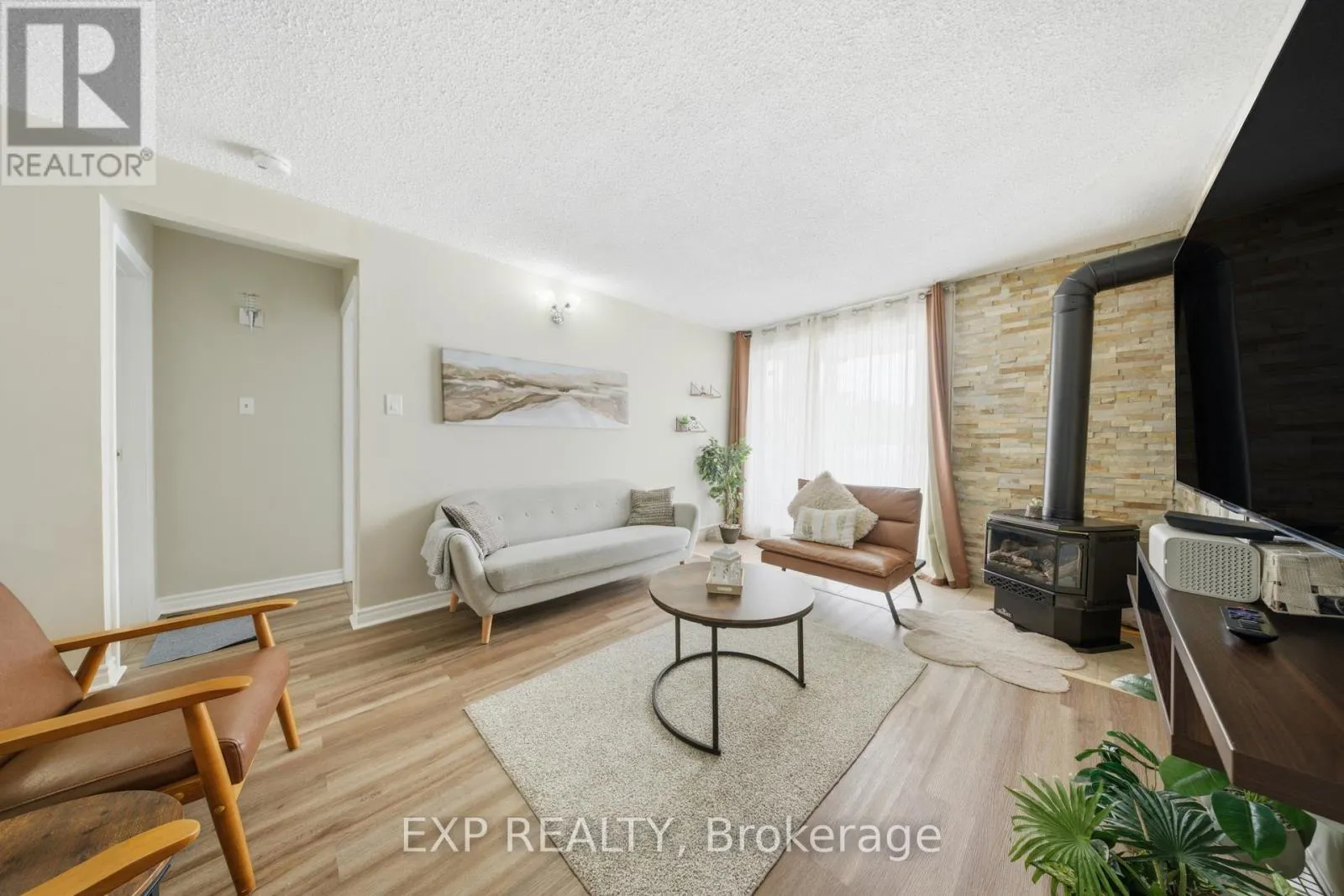 Cross Streets: Wellington Rd & Bradley Ave. ** Directions: Wellington Rd to Bradley Ave to Montgomery Rd to Jalna Blvd. Welcome to this stunning ground-level 2-bedroom home, offering exceptional comfort, style, and an unbeatable location in a highly desirable, centrally situated complex in London. This beautifully maintained, move-in ready unit invites you to simply unpack and enjoy. Flooded with natural light, the open-concept layout is enhanced by modern flooring, smooth ceilings in the bedrooms, and a welcoming foyer that sets the tone for the rest of the home. The spacious living area showcases a striking accent wall and a charming rustic gas fireplace, creating a warm and stylish atmosphere while efficiently heating the entire unit. Step out through the bright walkout to your private patio with keyed entry, perfect for morning coffee, relaxing evenings, or entertaining guests.The updated kitchen is both functional and elegant, featuring granite countertops, ample cabinetry, and quality stainless steel appliances. A renovated bathroom and tasteful finishes throughout further elevate the home's polished appeal. Additional highlights include in-unit laundry, a large storage closet, and a versatile nook ideal for a home office or study space.What truly sets this home apart is its exceptional location. Enjoy being just minutes from White Oaks Mall, along with countless shops, grocery stores, restaurants, and everyday conveniences. Commuters will appreciate the quick and easy access to Highway 401, making travel across the city or beyond seamless. Nearby parks, schools, and community amenities add to the strong lifestyle appeal of this vibrant neighbourhood. Residents also enjoy access to desirable building amenities, including an outdoor pool, all within a well-maintained and welcoming community. A fantastic opportunity to own a stylish, thoughtfully updated home in a prime, connected location - this is one you won't want to miss. (id:27476)