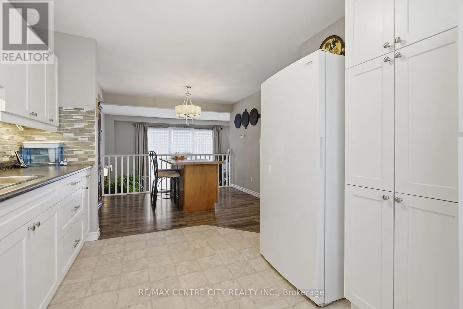 Cross Streets: Pond Mills Road. ** Directions: North off of Deveron Cres. 159 Deveron Crescent, London - Pond Mills townhouse-style condo: turnkey, low-maintenance living in a prime location adjacent to Optimist Park and directly beside a major bus routes. Bright, updated interior with main living room boasting dramatic 15-ft ceilings and floor-to-ceiling windows that flood the space with light. The modern kitchen features a large eat-in island, under-valance lighting, and a convenient stand-up freezer included. Upstairs offers 4 generously sized bedrooms that share a spacious 4-piece bathroom. Recent upgrades include windows (2016), and garage door (2016). This stunning townhouse is ideal for families or commuters who want easy transit access, nearby green space, and a move-in ready home. BOOK YOUR SHOWING WHILE YOU STILL CAN! (id:27476)