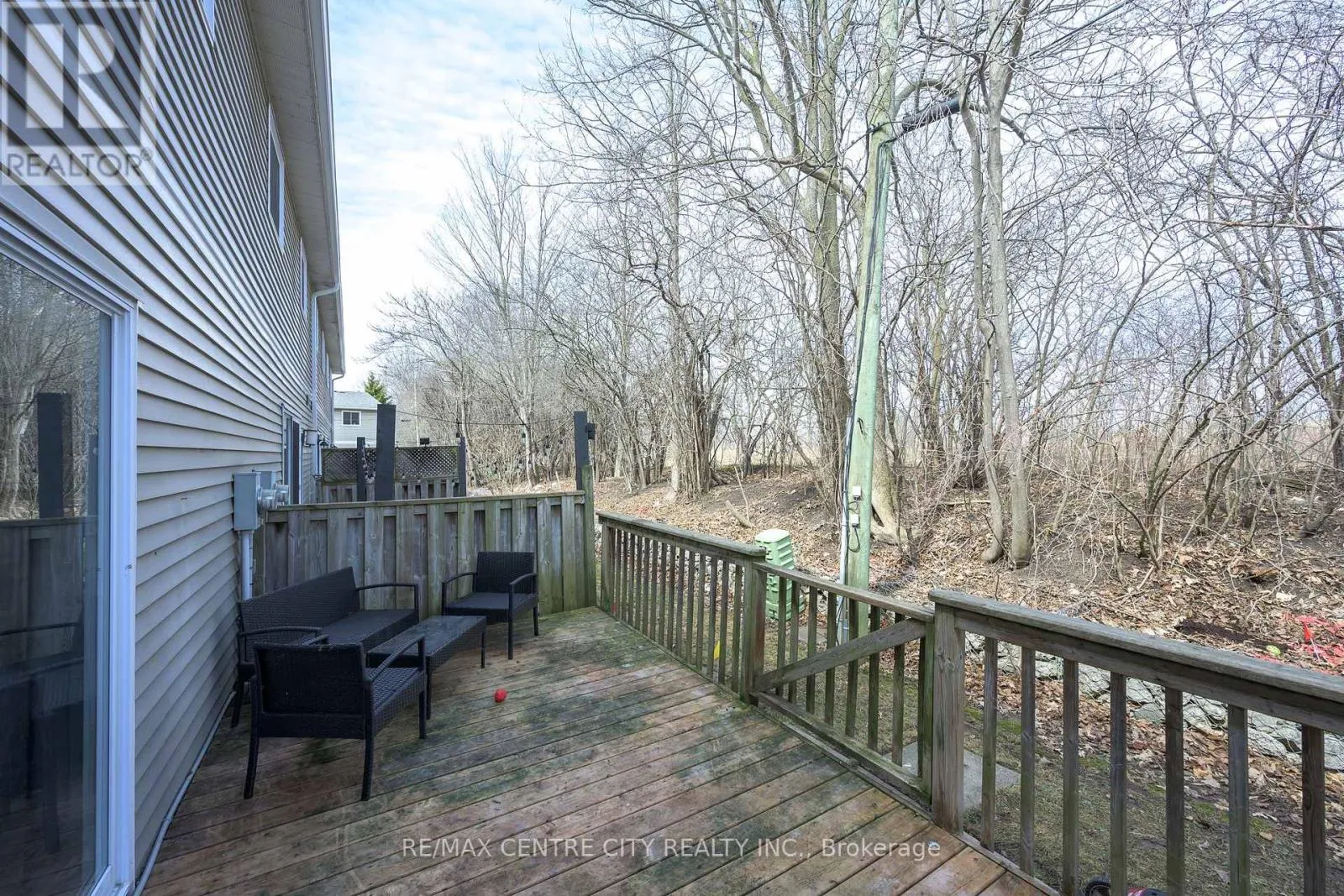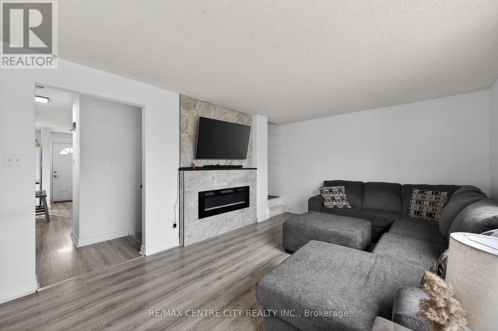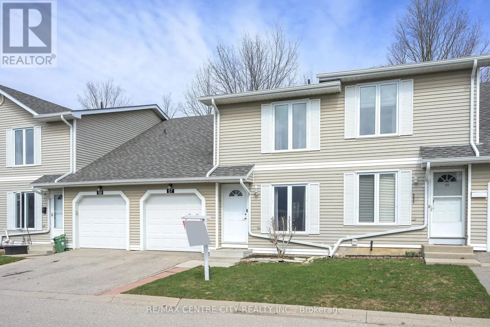 Cross Streets: Wharncliffe Rd & Centre St. ** Directions: Wharncliffe Rd south to Centre St. Welcome to Hillside Heights! This highly desirable condo community is family and pet friendly, well managed, beautifully maintained and LOW condo fees-offering a truly welcoming neighbourhood. Unit #57 is a spacious 2-storey home featuring an attached single garage with inside entry and additional driveway parking. The main floor offers a bright eat-in kitchen, perfect for everyday living and entertaining, along with a generous living/dining area highlighted by a beautiful fireplace feature wall and oversized sliding doors that lead to a private deck backing onto peaceful greenspace-ideal for relaxing or enjoying a quiet BBQ. A convenient 2-piece bath completes the main level. Upstairs, you'll find three well-sized bedrooms, including a spacious primary retreat with a walk-in closet and room for a king-size bed. The second bedroom also features a walk-in closet and ample space, while the third bedroom includes a double closet. A 4-piece bathroom completes the upper level. The finished lower level provides additional living space with a recreation room with a gas fireplace, along with plenty of storage in the laundry and utility areas. Perfect for first-time buyers, families or those looking to say goodbye to snow shoveling and yard maintenance and hello to easy, carefree living, this home offers exceptional value in a prime location-just minutes from shopping, dining, grocery stores, pharmacies, schools, hospitals, and major transportation routes. A fantastic opportunity in a sought-after community-don't miss it! (id:27476)