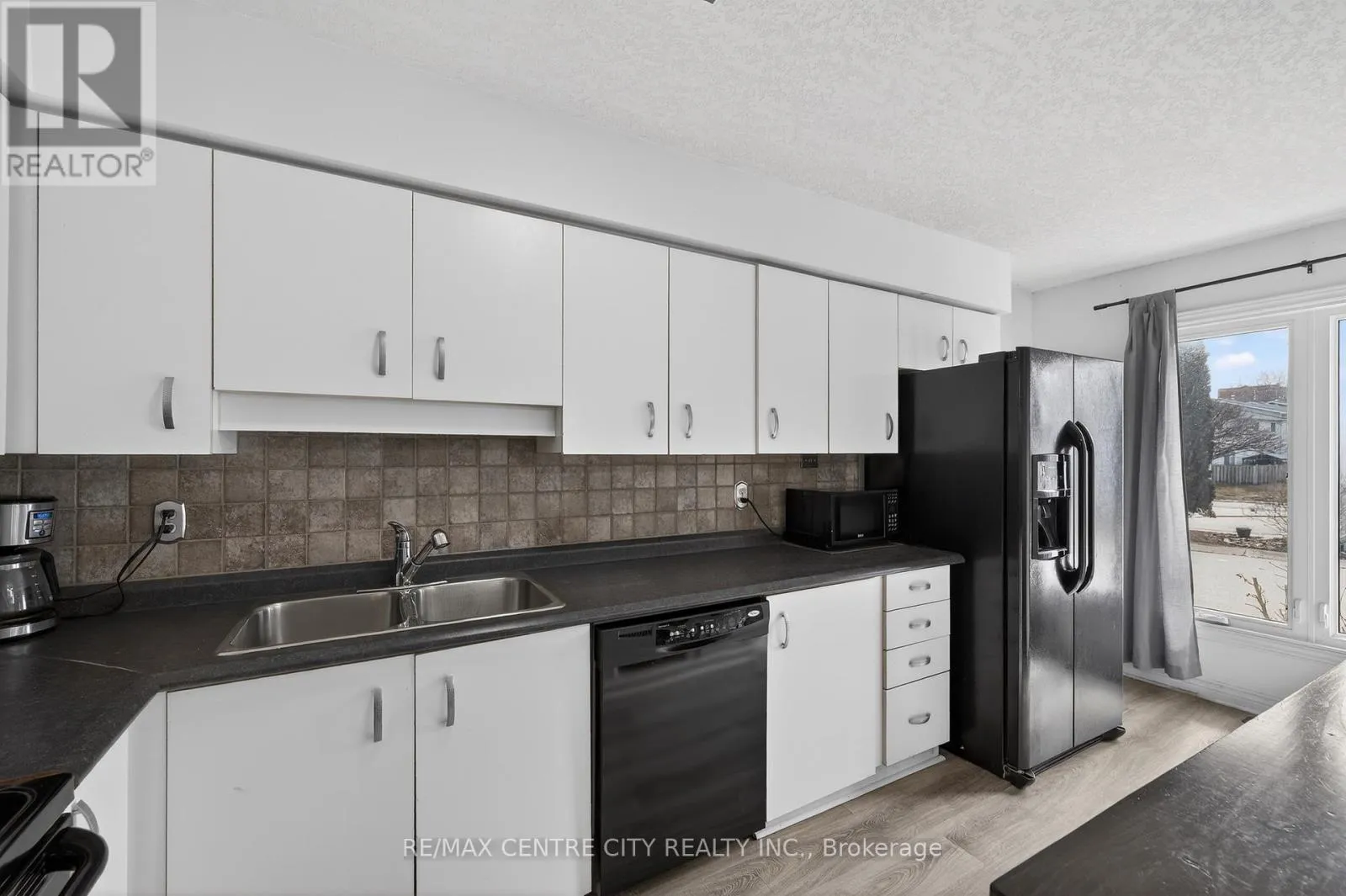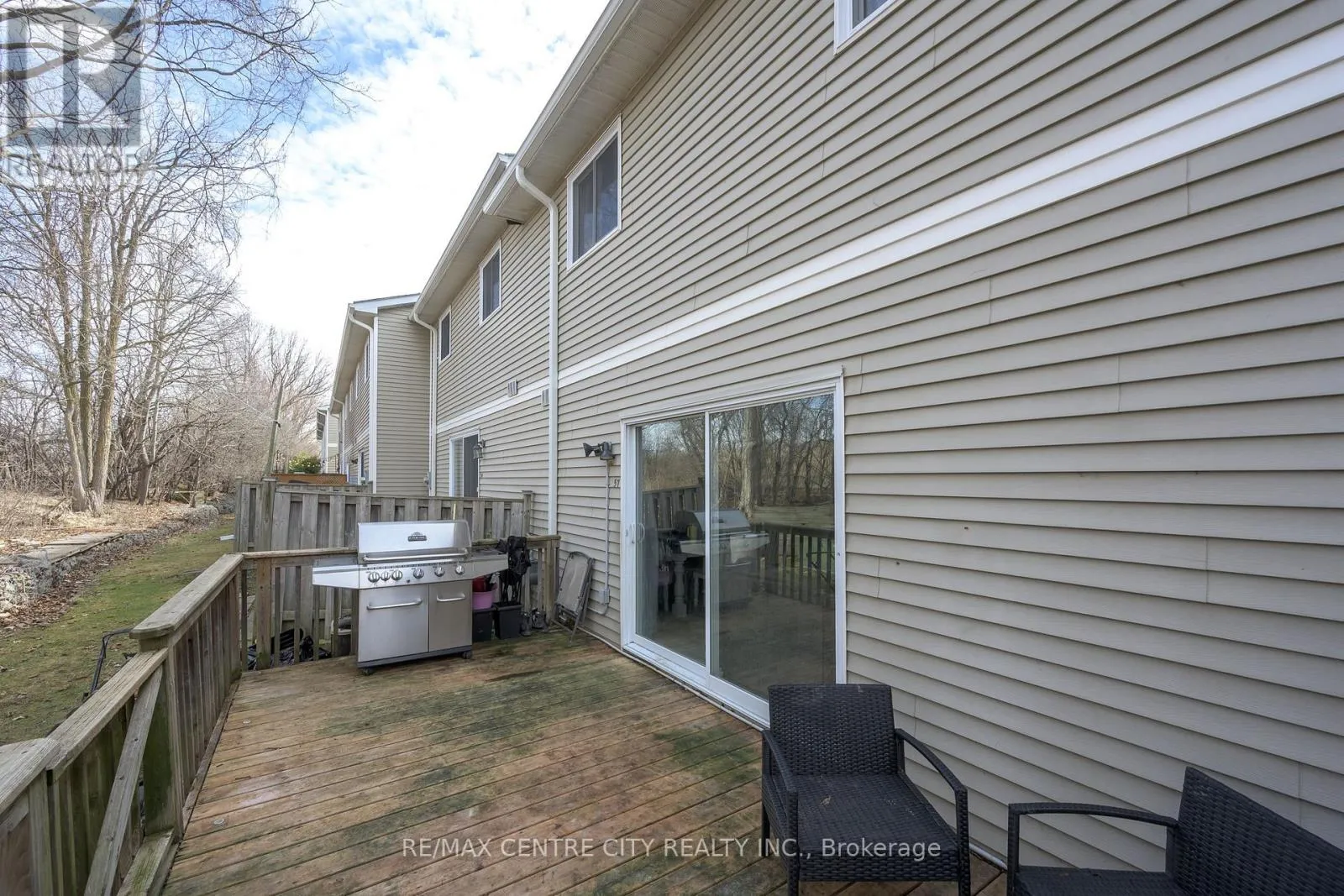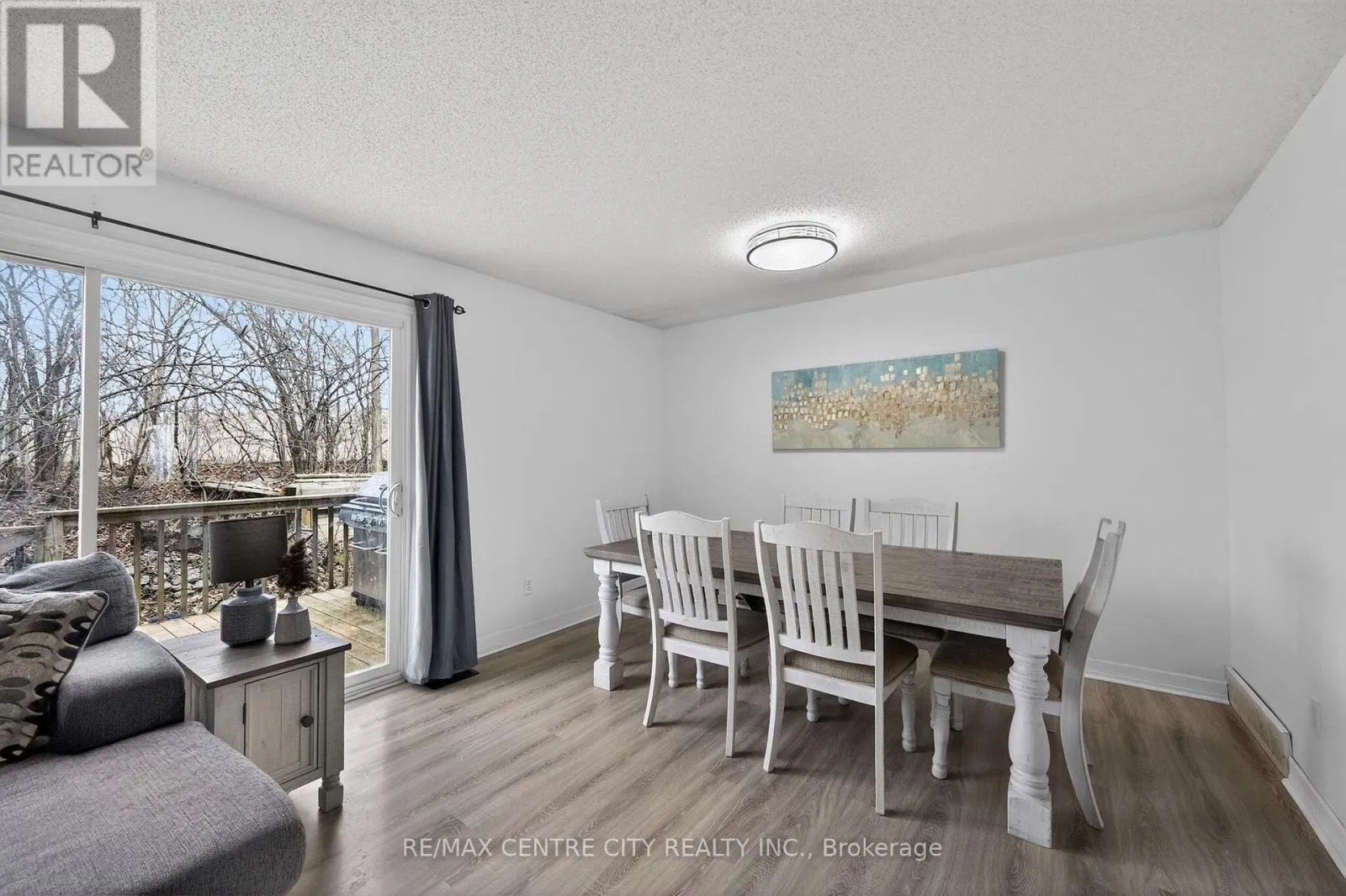 Cross Streets: Wharncliffe Rd & Centre St. ** Directions: Wharncliffe Rd south to Centre St. Welcome to Hillside Heights! This highly desirable condo community is family and pet friendly, well managed, beautifully maintained and LOW condo fees-offering a truly welcoming neighbourhood. Unit #57 is a spacious 2-storey home featuring an attached single garage with inside entry and additional driveway parking. The main floor offers a bright eat-in kitchen, perfect for everyday living and entertaining, along with a generous living/dining area highlighted by a beautiful fireplace feature wall and oversized sliding doors that lead to a private deck backing onto peaceful greenspace-ideal for relaxing or enjoying a quiet BBQ. A convenient 2-piece bath completes the main level. Upstairs, you'll find three well-sized bedrooms, including a spacious primary retreat with a walk-in closet and room for a king-size bed. The second bedroom also features a walk-in closet and ample space, while the third bedroom includes a double closet. A 4-piece bathroom completes the upper level. The finished lower level provides additional living space with a recreation room with a gas fireplace, along with plenty of storage in the laundry and utility areas. Perfect for first-time buyers, families or those looking to say goodbye to snow shoveling and yard maintenance and hello to easy, carefree living, this home offers exceptional value in a prime location-just minutes from shopping, dining, grocery stores, pharmacies, schools, hospitals, and major transportation routes. A fantastic opportunity in a sought-after community-don't miss it! (id:27476)