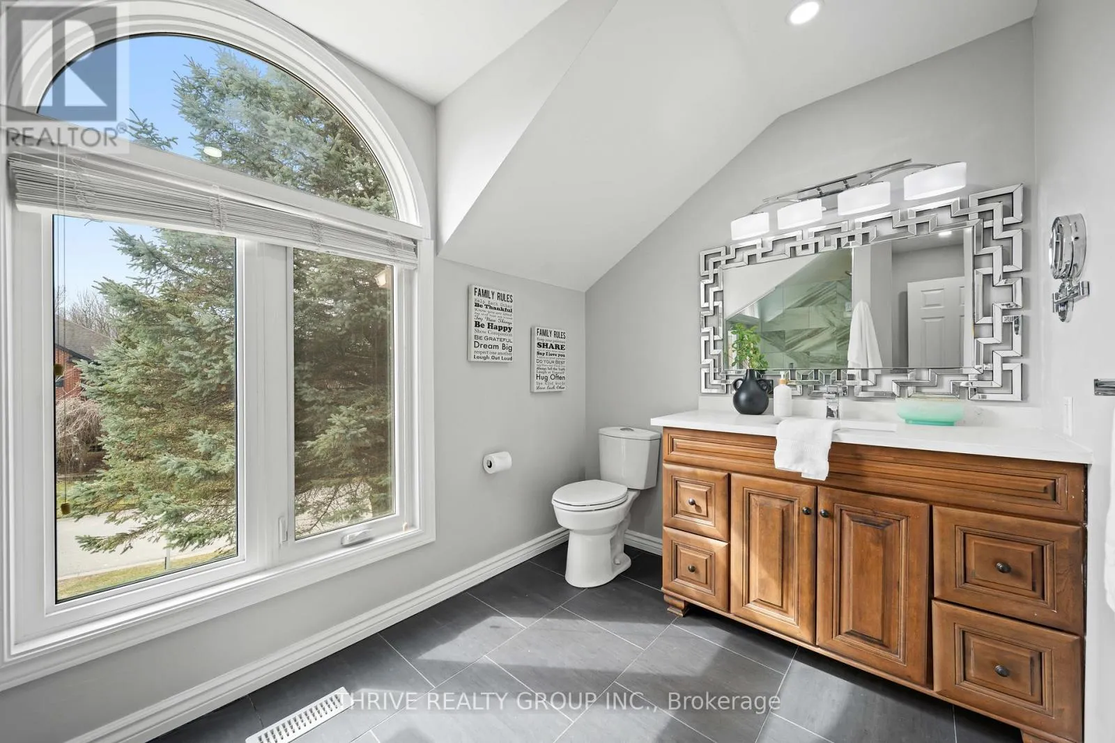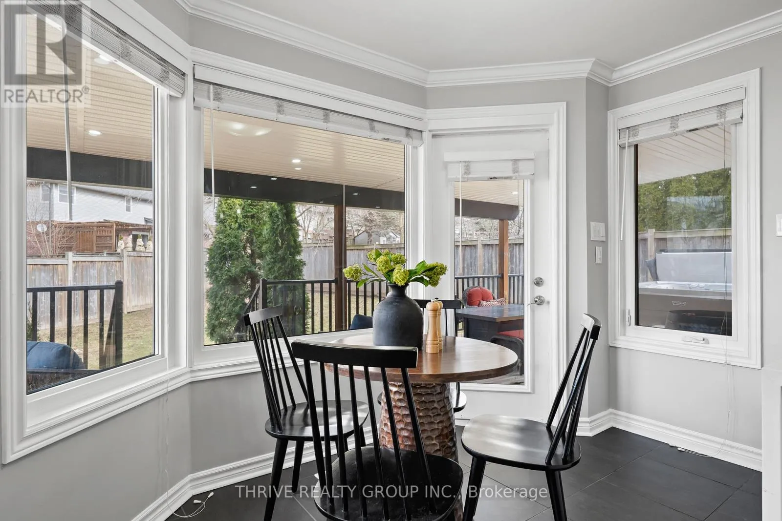 Cross Streets: Wonderland and Springbank. ** Directions: Trellis Crescent and Rosecliffe Terrace. Impeccably maintained and thoughtfully updated, this exceptional two-storey home is located in the highly sought-after Rosecliffe Estates, known for its quiet, friendly atmosphere and tree-lined streets. Offering 4+1 bedrooms, 3.5 bathrooms, a double car garage, and parking for up to 6 vehicles, this home sits on a rare pie-shaped lot with added space between neighbouring homes for enhanced privacy.The main floor features a bright, open foyer, formal living and dining areas, and a beautifully updated kitchen with quartz countertops, waterfall island, gas stove, and newer appliances. The open-concept kitchen flows into a sunken family room, while a separate living room offers a more private retreat. Large windows fill the home with natural sunlight throughout the day.Upstairs, you'll find generously sized bedrooms with excellent closet space, including a spacious primary suite with walk-in closet and 5-piece ensuite. Bathrooms have been tastefully renovated with elevated finishes, including rainfall showers and dual temperature controls in the primary.The fully finished basement adds versatility with a large rec room, an additional bedroom or den, and a full bathroom.Step outside to a private backyard oasis with a covered porch, deck, and 8-person hot tub. Mature trees and the wide lot create a peaceful, secluded setting, with rear gate access for trailer storage.Additional features include an Ecobee thermostat, JBL speaker system, security system, sump pump, and newer washer and dryer (2026).Ideally located minutes from downtown, with easy access to the 402, and walking distance to Springbank Park, schools, and amenities.A rare opportunity to enjoy space, sunlight, and a strong sense of community in one of London's most desirable neighbourhoods. (id:27476)