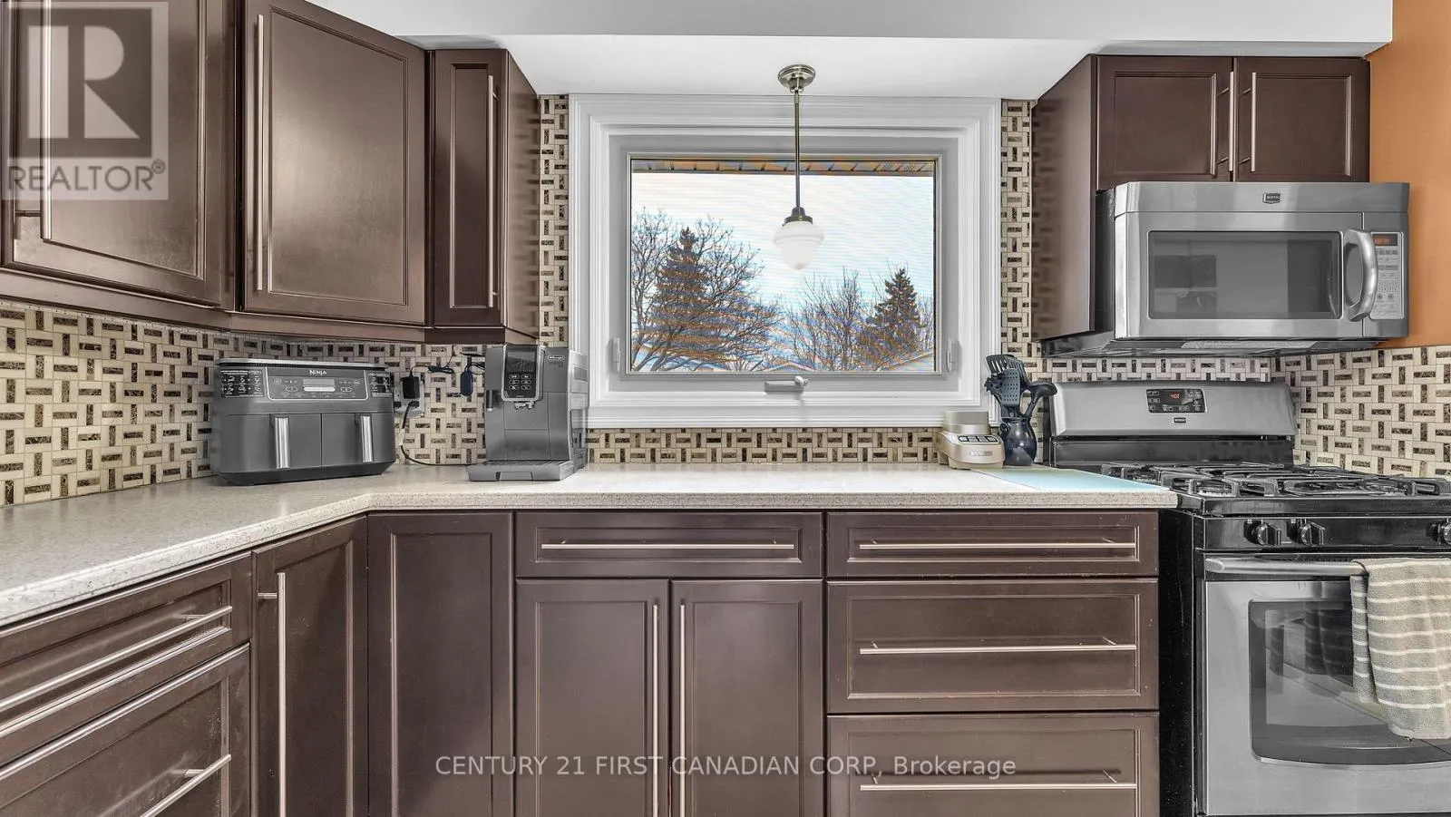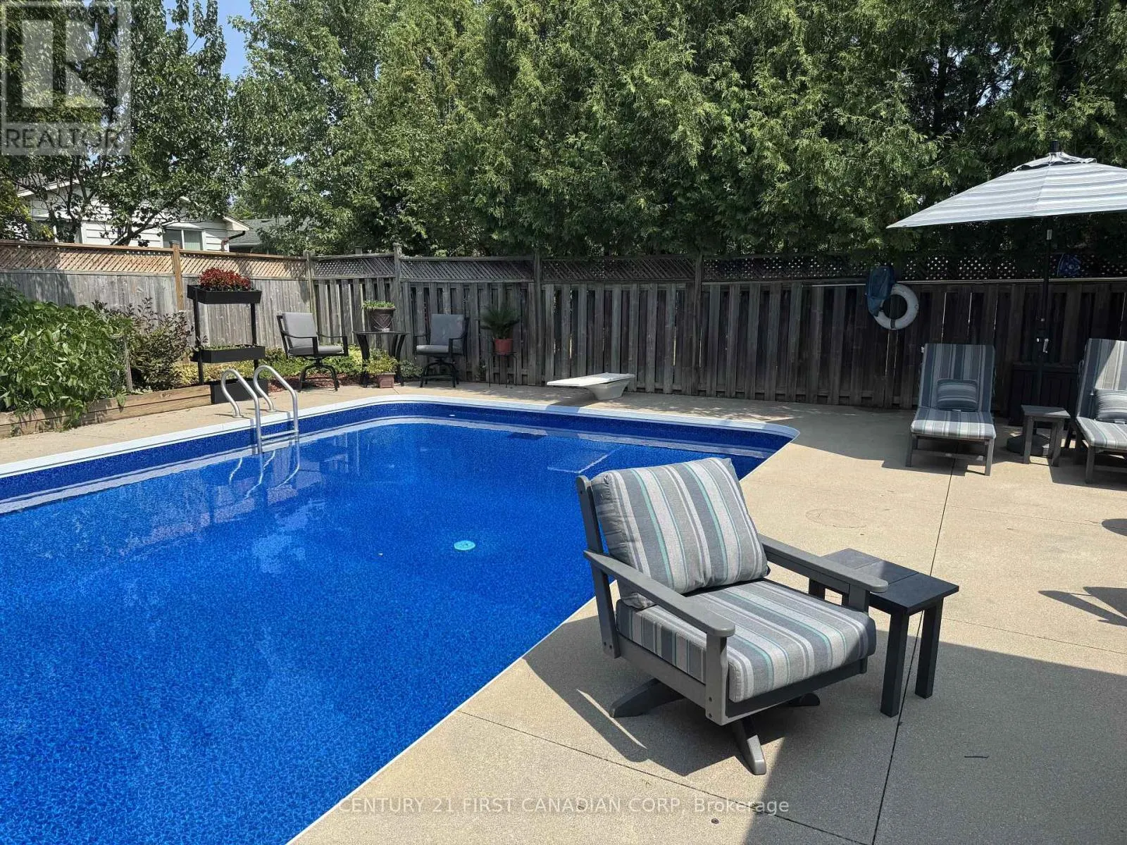 Cross Streets: Jalna Blvd. ** Directions: Jalna West on Alayne. This is the one buyers wait for!! You will be impressed by this meticulous sidesplit with inground pool in White Oaks.Set on a private 50 x 100 ft lot in a family-friendly neighbourhood,this beautifully maintained side split delivers the perfect blend of comfort, functionality, and lifestyle.Step inside to a bright, inviting main floor featuring hardwood floors, a sun-filled living room, and a seamless flow into the dining area and updated kitchen.Complete with a centre island, stainless steel appliances,tile backsplash,& ample cabinetry,this space is designed for both everyday living and effortless entertaining.Just steps away, a spacious family room offers the perfect place to unwind, with direct walkout access to your backyard retreat. Upstairs,you'll find three generous bedrooms,along with a large 5-piece bathroom ideal for growing families.The lower level adds even more value with a home gym, laundry area, and plenty of storage, while an upgraded electrical panel with generator capability provides added peace of mind. The real showstopper? The backyard.A fully fenced private oasis featuring: In-ground saltwater pool(updated heater, liner, pump & chlorinator),Covered patio for shaded lounging,Poured concrete surround.Mature landscaping for ultimate privacy. This is summer living,done right.Located just minutes from White Oaks Mall, parks, trails, Westminster Ponds, schools, restaurants, and all amenities - everything you need is right at your doorstep. Move-in ready. Updated. Prime location. Backyard resort living. This home checks every box and it won't last. (id:27476)