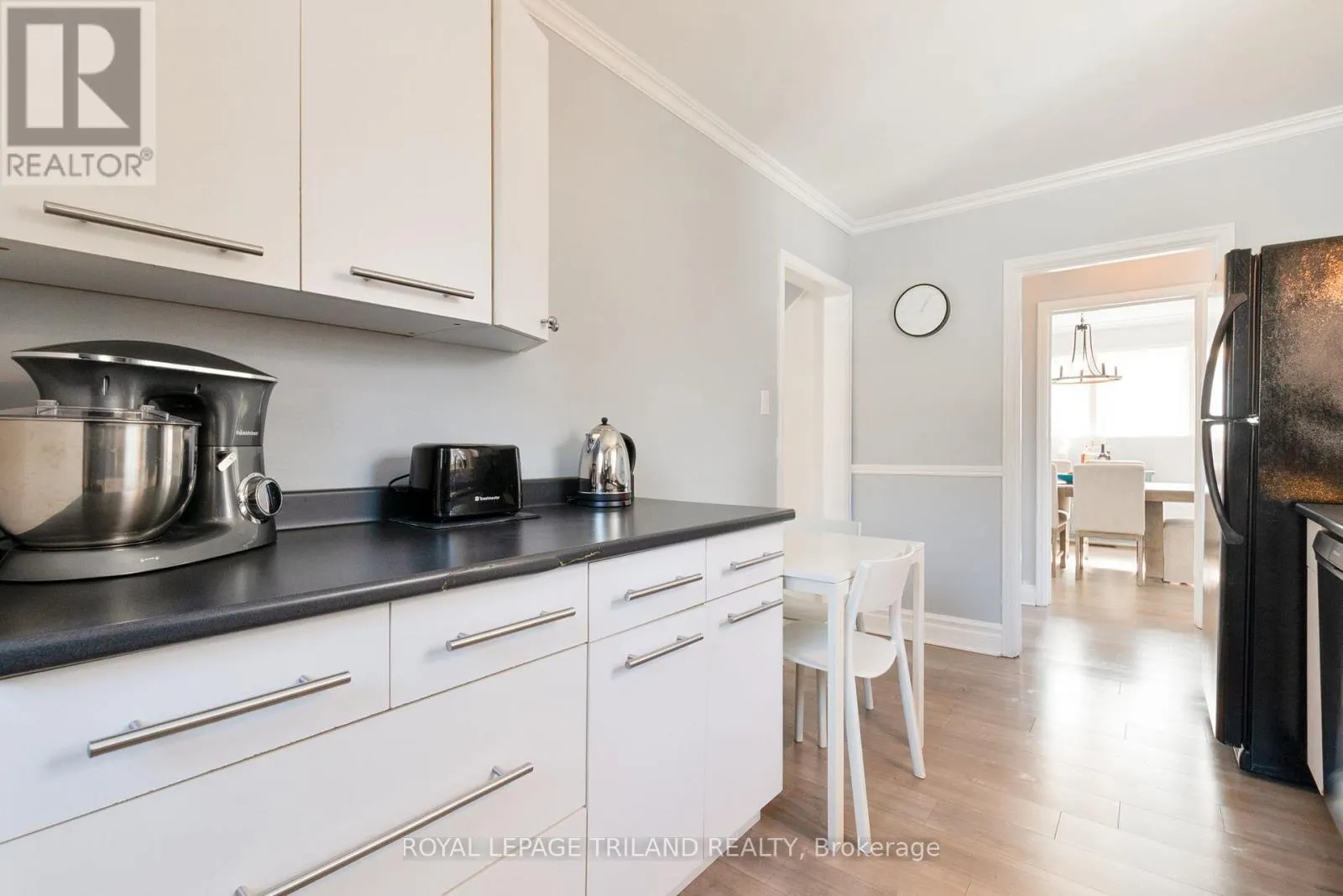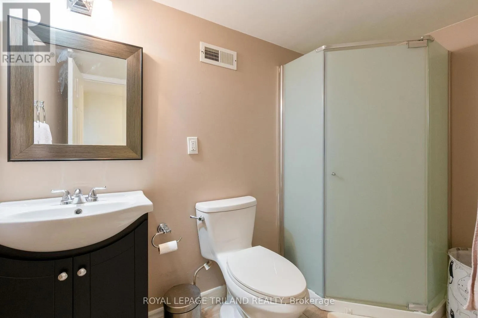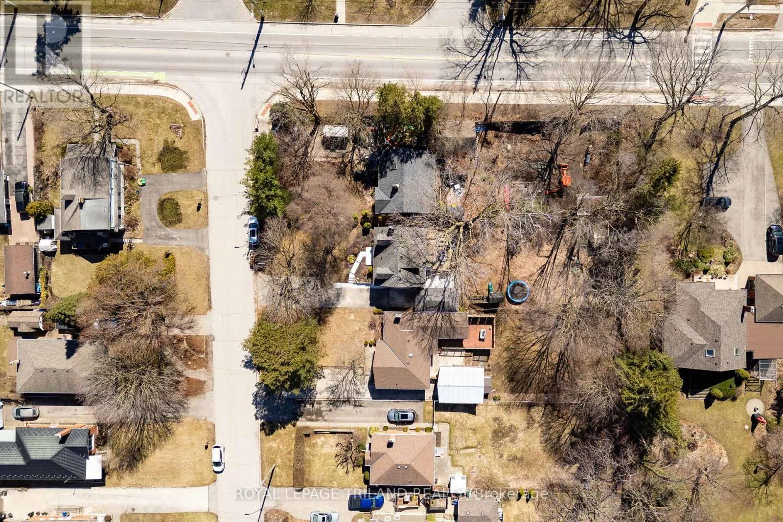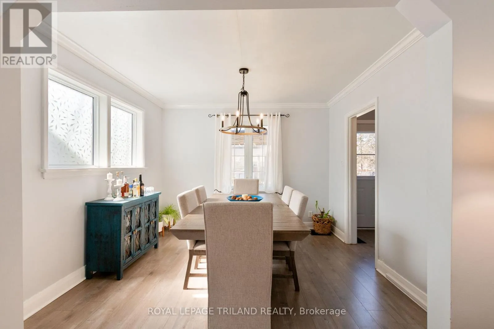 Cross Streets: Byron Baseline. ** Directions: Byron Baseline to Byron Blvd. Welcome to 417 Byron Blvd, a charming 1.5 storey Cape Cod style home in the heart of Byron. Built in 1950, this property sits on an impressive 50 x 187 ft lot, approximately 0.215 acres, offering exceptional space and future potential for renovation or expansion if required. Surrounded by mature trees, the expansive backyard is perfect for gardening, entertaining, or letting kids and pets play. The property features parking for 5+ vehicles, a detached single car garage built in 2016, and a recently updated concrete walkway and front porch completed in 2025. Inside, the front entry opens to a bright formal living room with a gas fireplace and large front and side windows. The adjoining dining room is also filled with natural light, creating a warm and inviting space for gatherings. The main floor includes a versatile third bedroom (also ideal as a home office or playroom), along with a spacious galley style kitchen featuring updated white cabinetry, ample storage, and prep space. A fully updated 5 piece bath with dual sinks and a tiled tub/shower adds both style and function. The entire main floor is finished in updated laminate flooring. Just off the kitchen, step out to the large sundeck built in 2010, perfect for summer entertaining and BBQs. Upstairs offers two generously sized bedrooms with recently replaced carpeting, providing comfortable and private spaces ideal for family living. The lower level is partially finished with a rec room, fourth bedroom, 3 piece bath, laundry, and plenty of storage. Notable updates include shingles in 2019 and furnace in 2012. Located in one of Byron's most sought after communities, this home is just minutes to top rated schools, shopping, restaurants, and the natural beauty of Springbank Park with its scenic trails along the Thames River. Enjoy the perfect blend of a quiet, established neighbourhood with convenient access to all amenities. (id:27476)