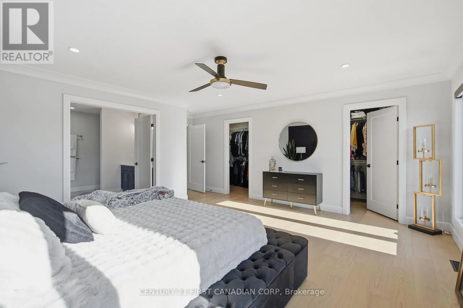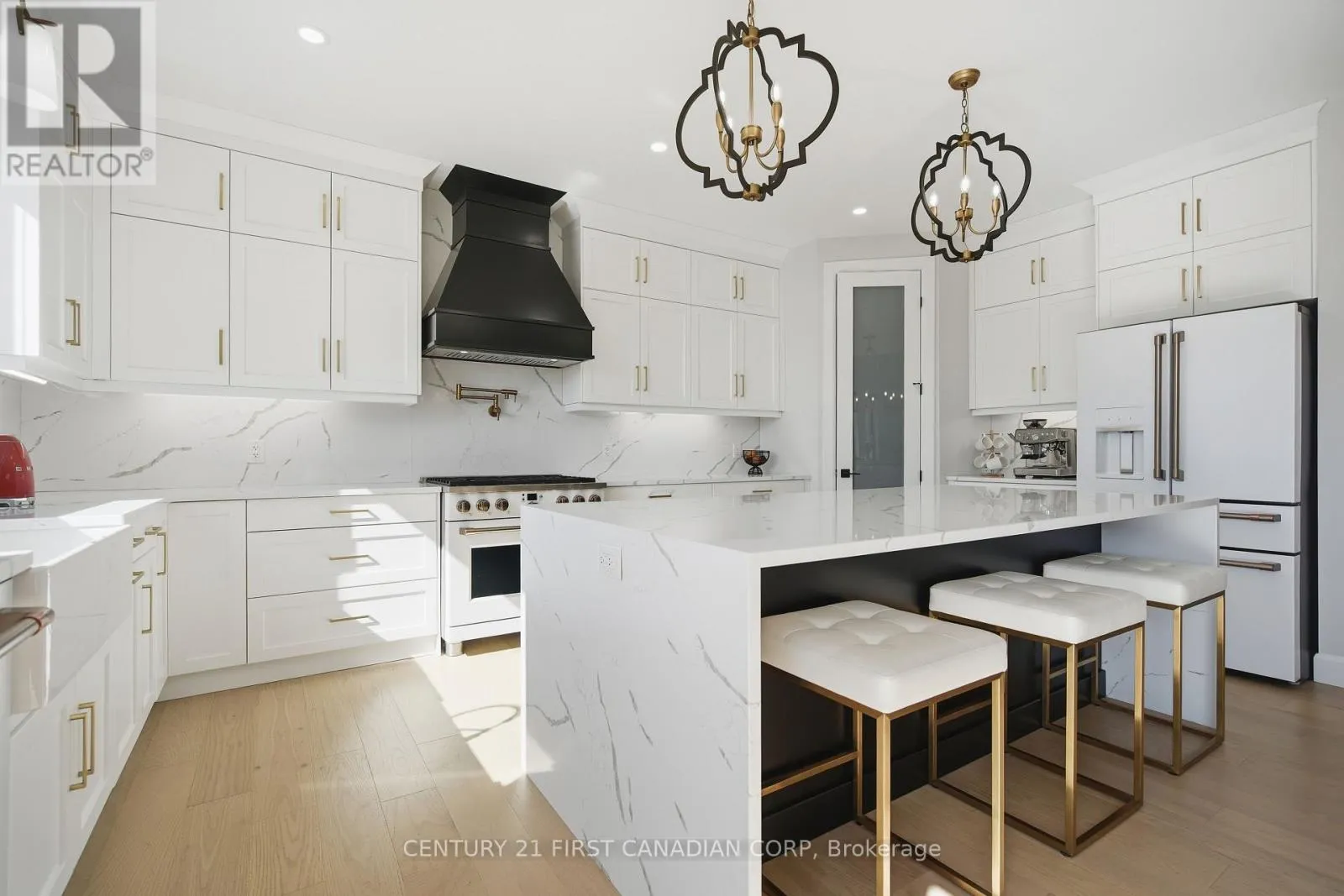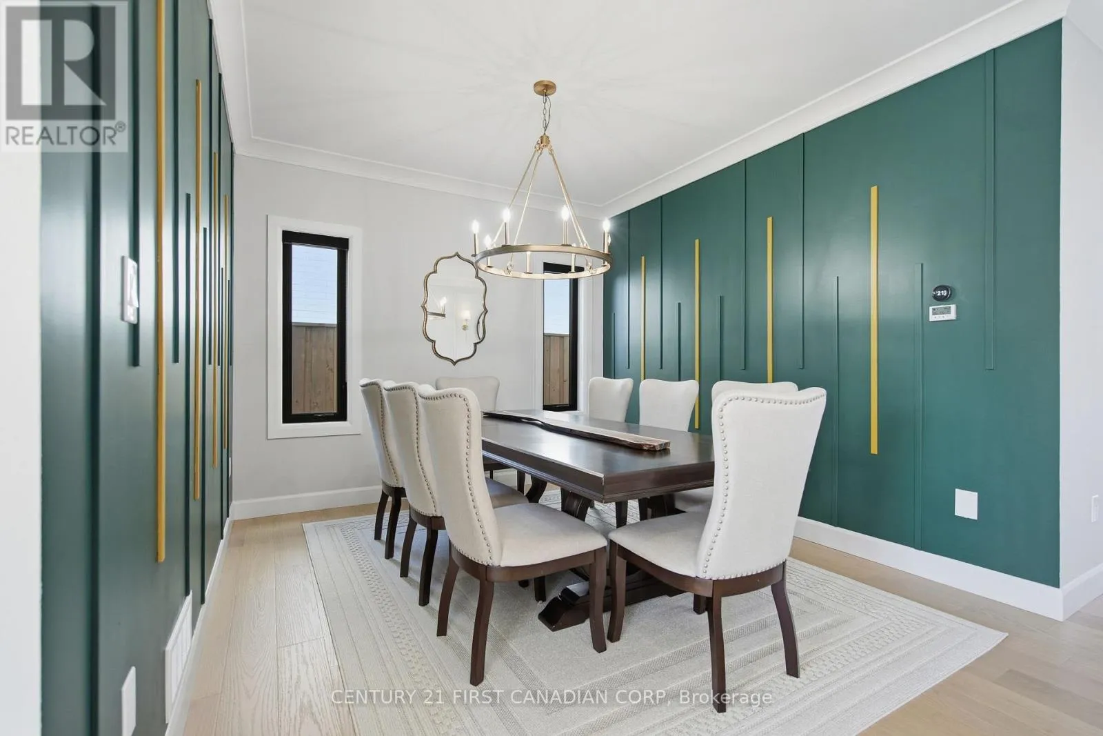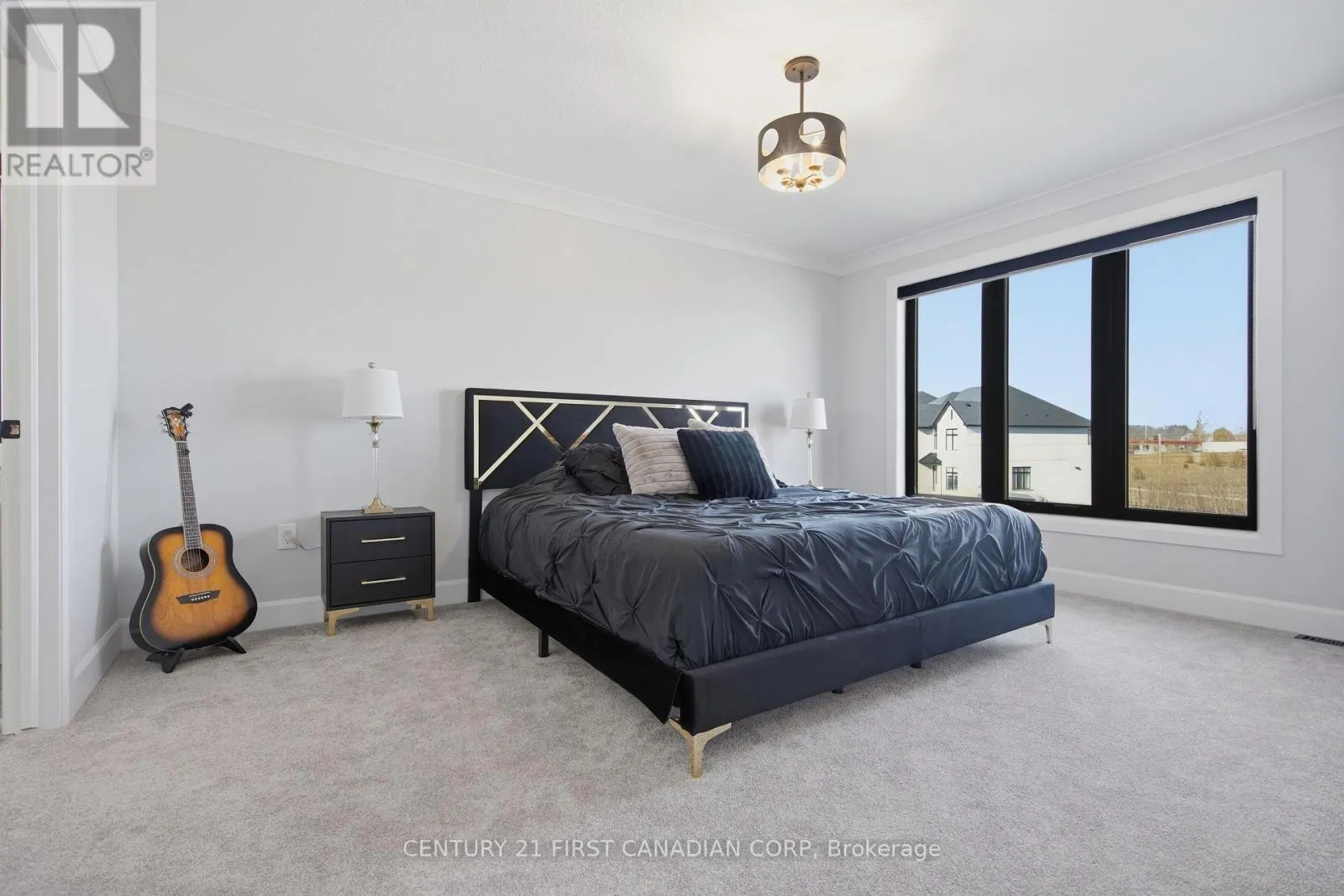 Cross Streets: COLONEL TALBOT & PACK RD. ** Directions: LEFT OF ISLEWORTH ONTO SILVER CREEK CIRCLE. Better Than New and Every Upgrade Already Done. Welcome to Silverleaf Estates, where luxury meets effortless living. This exceptional 5 bedroom, 5 bathroom home offers 4,532 sq. ft. on a premium lot that is 146 x 134 ft deep-blending elegance, function, and lifestyle.Just 3 years young, it makes a striking first impression with its stone and stucco exterior, expansive driveway, and professionally landscaped grounds. Step into the grand foyer, where an elegant chandelier sets the tone. The main level flows seamlessly into a show-stopping chef's kitchen featuring a waterfall quartz island, full quartz backsplash, custom hood fan, ceiling-height cabinetry, and high-end Café appliances.The breathtaking great room is the heart of the home, anchored by a dramatic two-storey gas fireplace wrapped in floor-to-ceiling Italian tile-perfect for entertaining and everyday living.With over $250,000 in builder upgrades, no detail has been overlooked. Crown moulding throughout, hardwired security, and an EV-ready 240V garage hookup offer both luxury and convenience.Upstairs features second-floor laundry and spacious bedrooms, including two with private ensuites. The primary suite is a true retreat with his & hers closets and a spa-inspired 5-piece ensuite. The other two bathrooms feature a beautiful blue marble flooring and shower backdrop. The fully finished basement adds versatility with a large rec room, gym, additional bedroom, and stylish 3-piece bath-ideal for guests or multigenerational living, with potential for a future separate entrance.Step outside to your private backyard oasis with over 1,000 sq. ft. of stamped concrete, a gazebo, fully fenced yard, and custom 10x16 shed-built for entertaining and relaxing.Located in a sought-after family friendly neighbourhood near top-rated schools, shopping, dining, and quick access to Highways 401 & 402.Why build when this one has it all? Move in and enjoy. (id:27476)