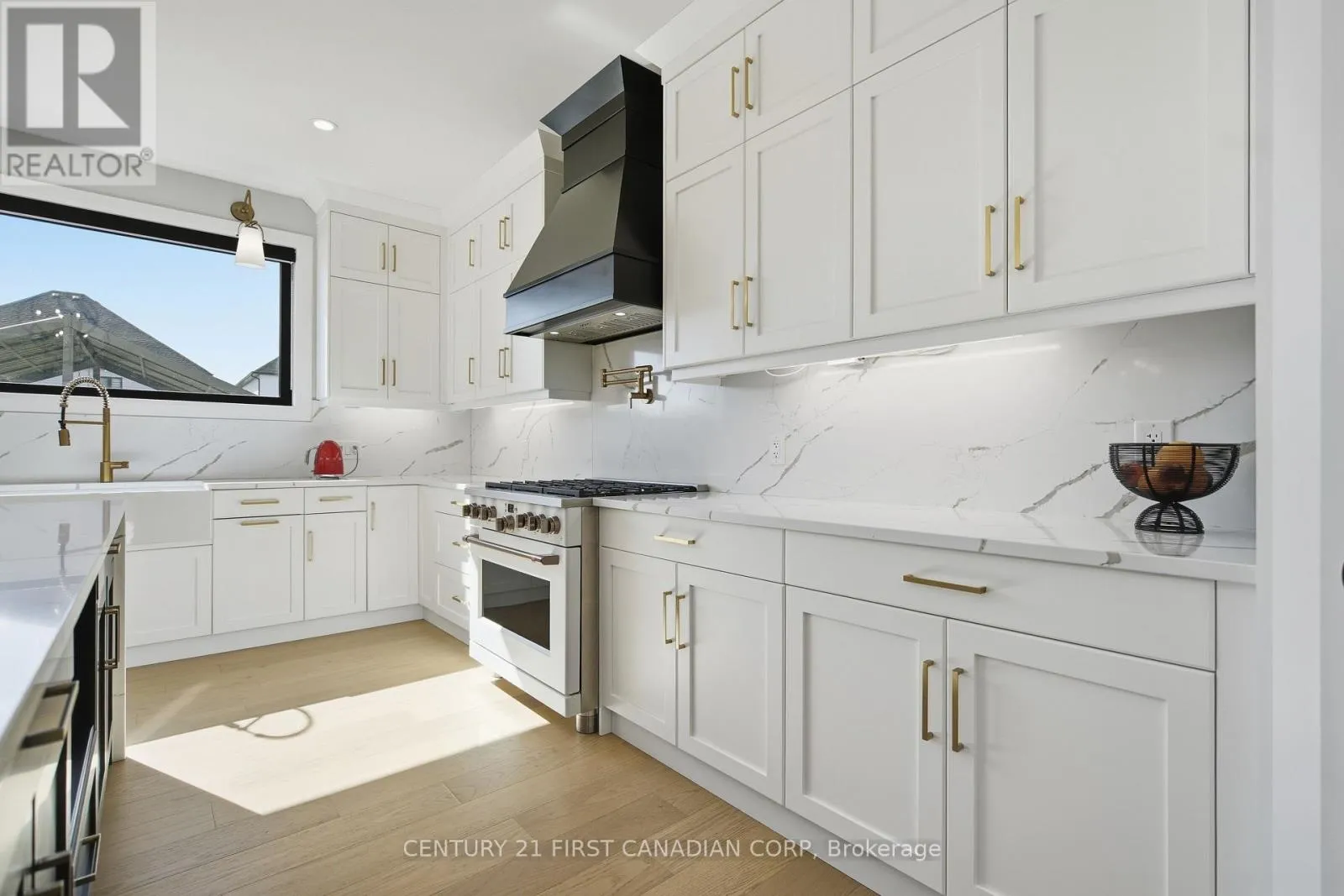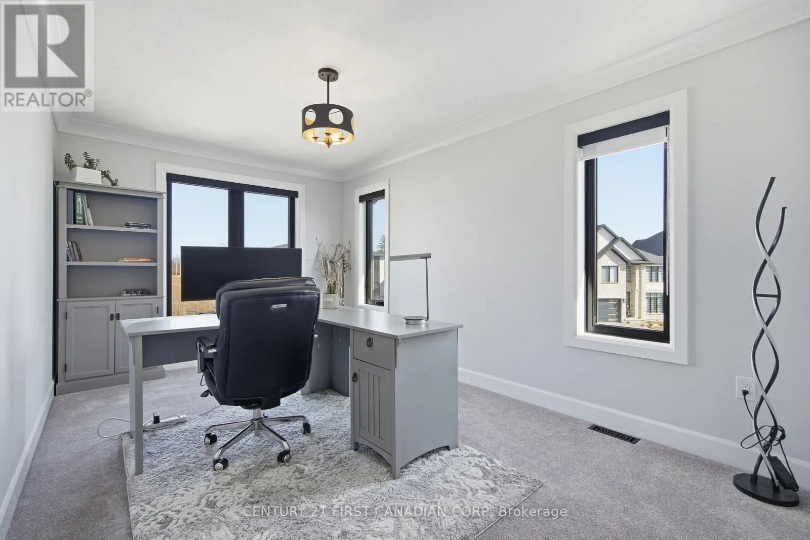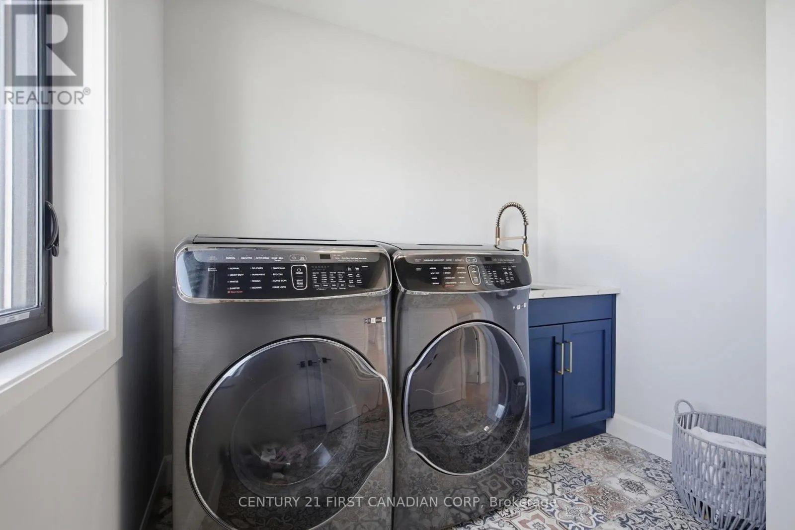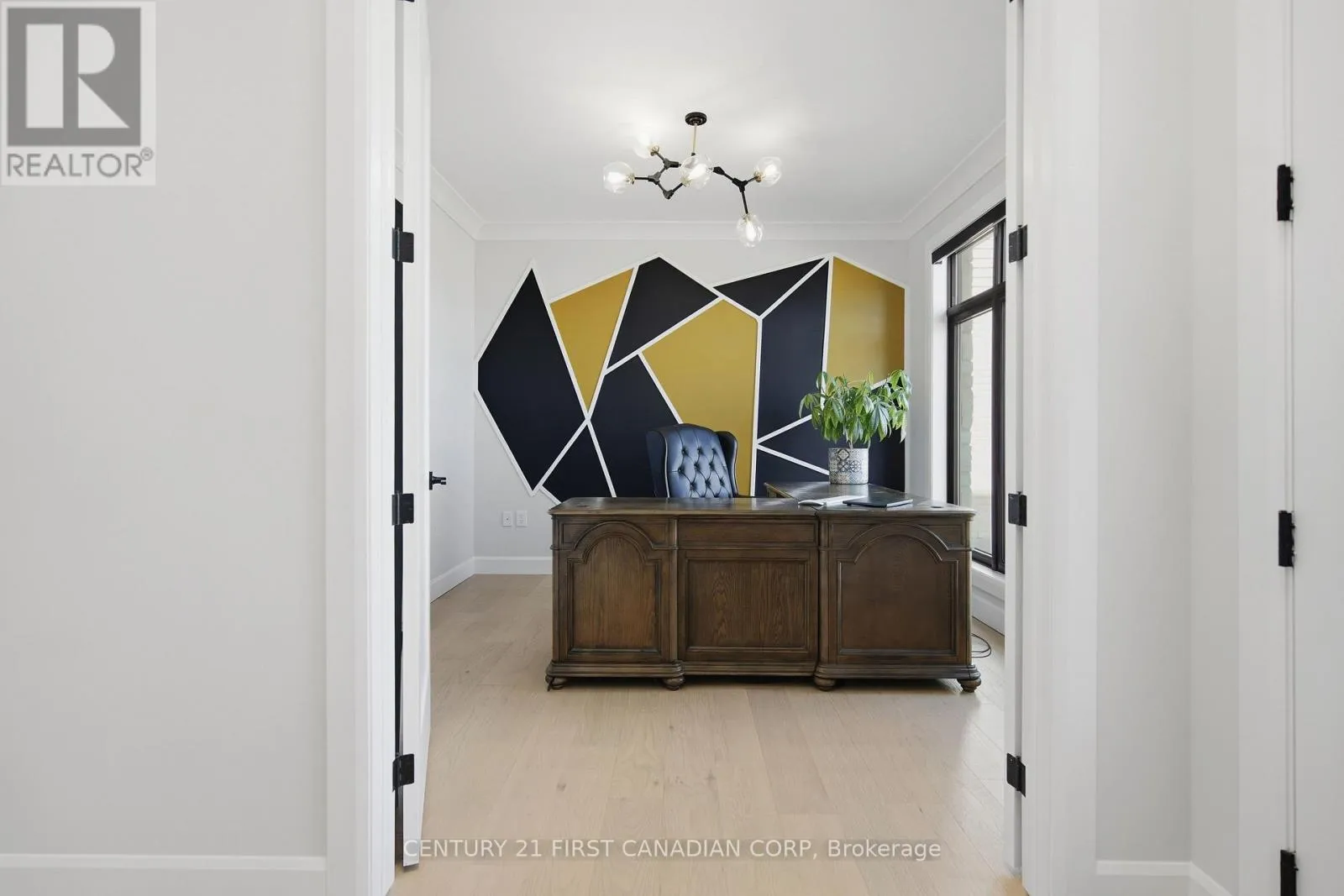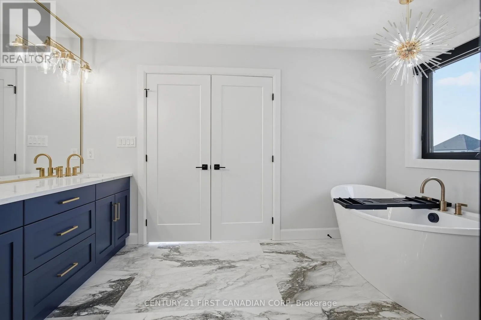 Cross Streets: COLONEL TALBOT & PACK RD. ** Directions: LEFT OF ISLEWORTH ONTO SILVER CREEK CIRCLE. Better Than New and Every Upgrade Already Done. Welcome to Silverleaf Estates, where luxury meets effortless living. This exceptional 5 bedroom, 5 bathroom home offers 4,532 sq. ft. on a premium lot that is 146 x 134 ft deep-blending elegance, function, and lifestyle.Just 3 years young, it makes a striking first impression with its stone and stucco exterior, expansive driveway, and professionally landscaped grounds. Step into the grand foyer, where an elegant chandelier sets the tone. The main level flows seamlessly into a show-stopping chef's kitchen featuring a waterfall quartz island, full quartz backsplash, custom hood fan, ceiling-height cabinetry, and high-end Café appliances.The breathtaking great room is the heart of the home, anchored by a dramatic two-storey gas fireplace wrapped in floor-to-ceiling Italian tile-perfect for entertaining and everyday living.With over $250,000 in builder upgrades, no detail has been overlooked. Crown moulding throughout, hardwired security, and an EV-ready 240V garage hookup offer both luxury and convenience.Upstairs features second-floor laundry and spacious bedrooms, including two with private ensuites. The primary suite is a true retreat with his & hers closets and a spa-inspired 5-piece ensuite. The other two bathrooms feature a beautiful blue marble flooring and shower backdrop. The fully finished basement adds versatility with a large rec room, gym, additional bedroom, and stylish 3-piece bath-ideal for guests or multigenerational living, with potential for a future separate entrance.Step outside to your private backyard oasis with over 1,000 sq. ft. of stamped concrete, a gazebo, fully fenced yard, and custom 10x16 shed-built for entertaining and relaxing.Located in a sought-after family friendly neighbourhood near top-rated schools, shopping, dining, and quick access to Highways 401 & 402.Why build when this one has it all? Move in and enjoy. (id:27476)