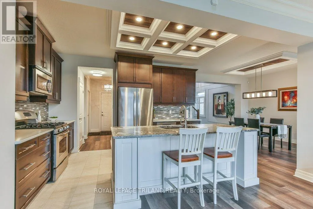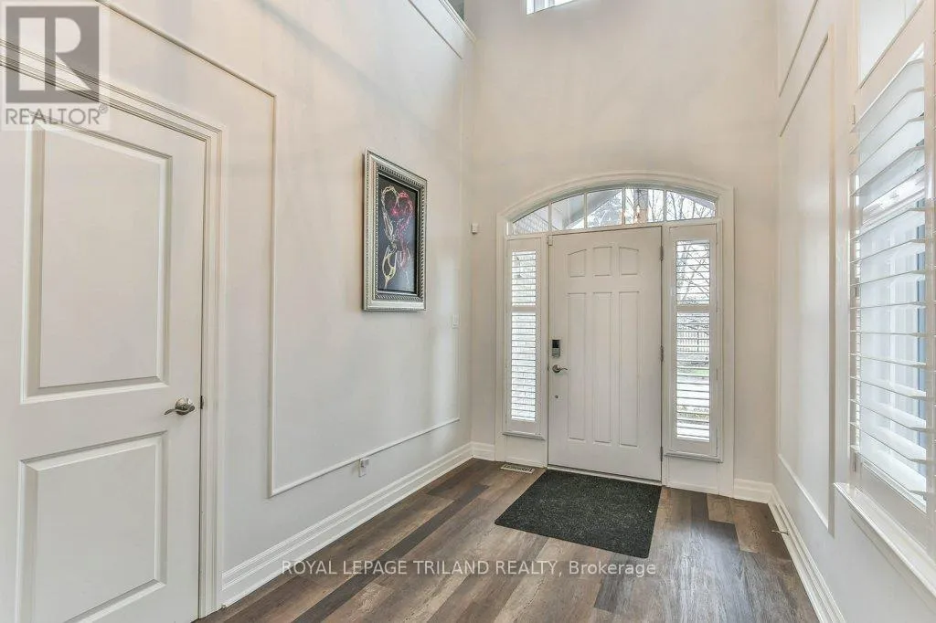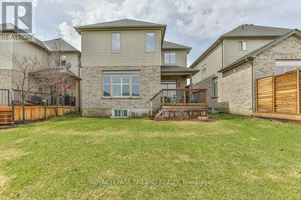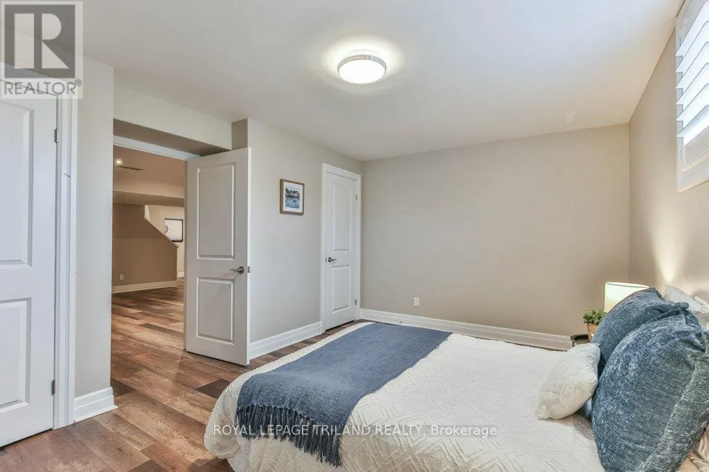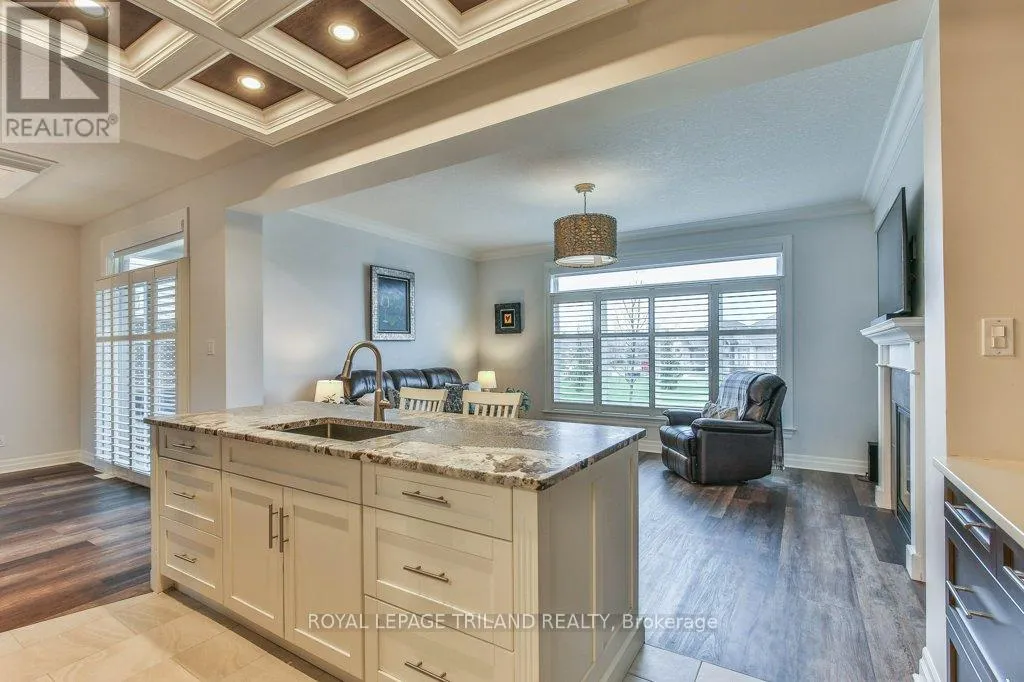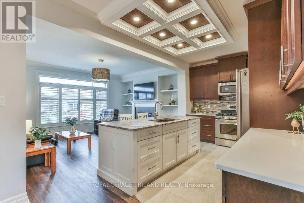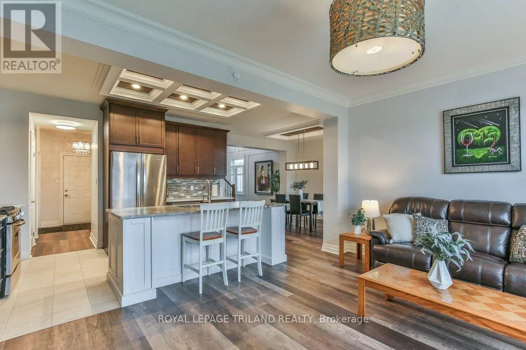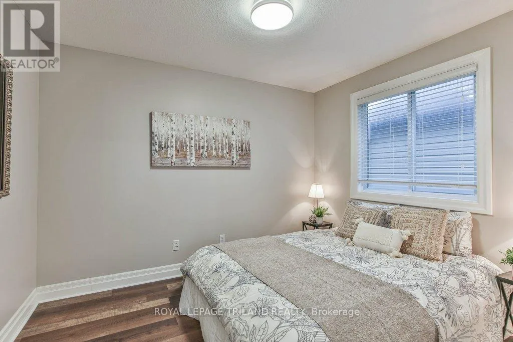 Cross Streets: COLONEL TALBOT RD / PACK RD. ** Directions: LOCATED ON THE EAST SIDE OF COLONEL TALBOT RD BETWEEN PACK RD AND RALEIGH BLVD. Welcome to the Promenade in Talbot Village! This detached vacant land condo offers the rare advantage of owning your lot while enjoying low-maintenance living, all in a prime location just minutes from everyday amenities.Backed by open green space and surrounded by ponds and the Talbot Trail System, this home offers a peaceful setting with added privacy and no direct rear neighbours. Offering approximately 2,200 sq ft above grade (as per exterior measurements), plus a finished lower level, this 3+1 bedroom home is well designed for modern living.The main floor features 9 ft ceilings and an open-concept layout with a spacious great room, complete with gas fireplace and large windows with California shutters. The kitchen is both functional and stylish, featuring stainless steel appliances, a quartz island, and custom ceiling detail.Upstairs, you'll find a generous family room, convenient second-floor laundry, and a primary bedroom with a 4-piece ensuite. Two additional bedrooms and a full bathroom complete the level.The finished lower level offers a recreation room, guest bedroom with 2 closets, 4-piece bathroom, and additional storage space.Notable upgrades and features include hardwood flooring, quartz countertops, pot lights in the great room, wrought iron spindles, California shutters, and a covered rear porch overlooking green space.Additional highlights include a double car garage, excellent curb appeal, and visitor parking located directly in front of the home.Condo fees are $260.78/month and include snow removal, landscaping, grass maintenance, and an in-ground sprinkler system.Ideally located just minutes from Byron and Westmount, and close to grocery stores, restaurants, banks, and more-this is an excellent opportunity to enjoy a well-maintained home in a sought-after community. (id:27476)
