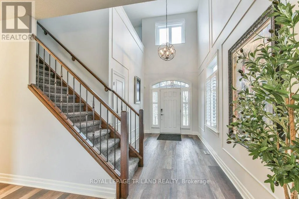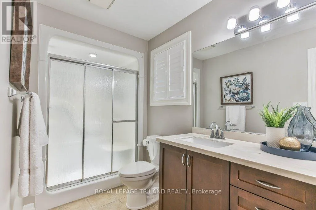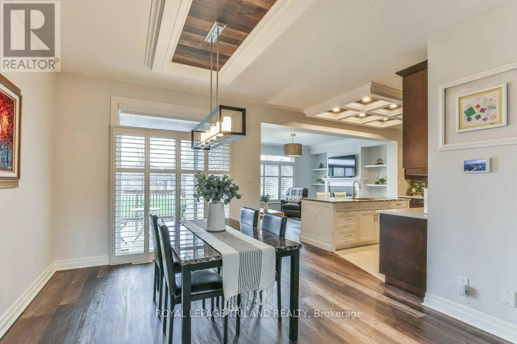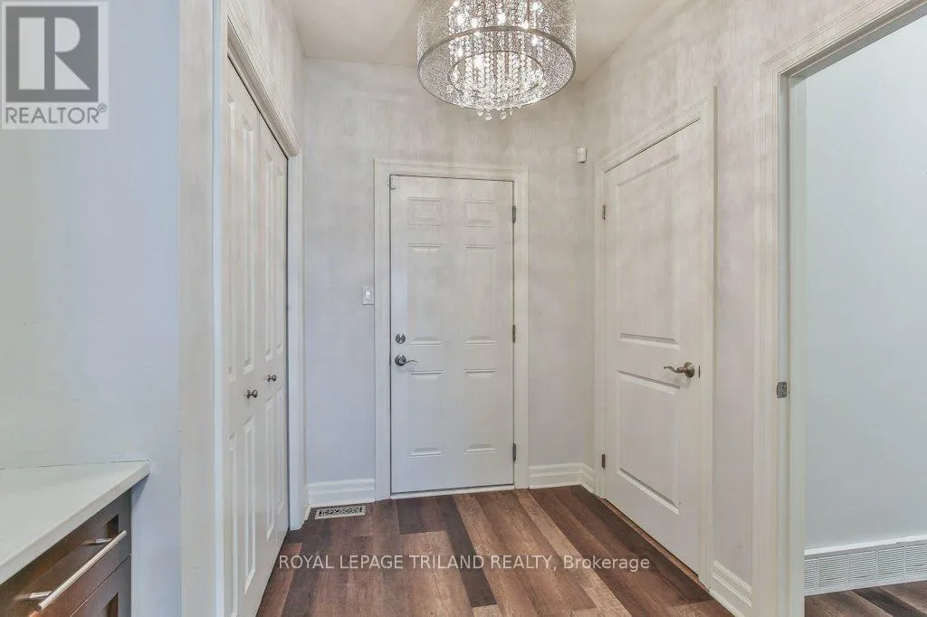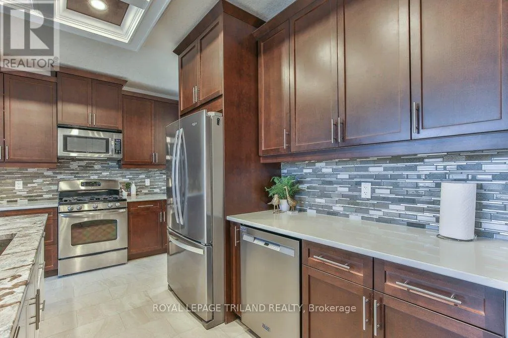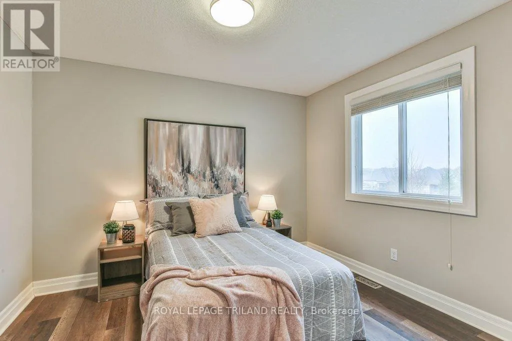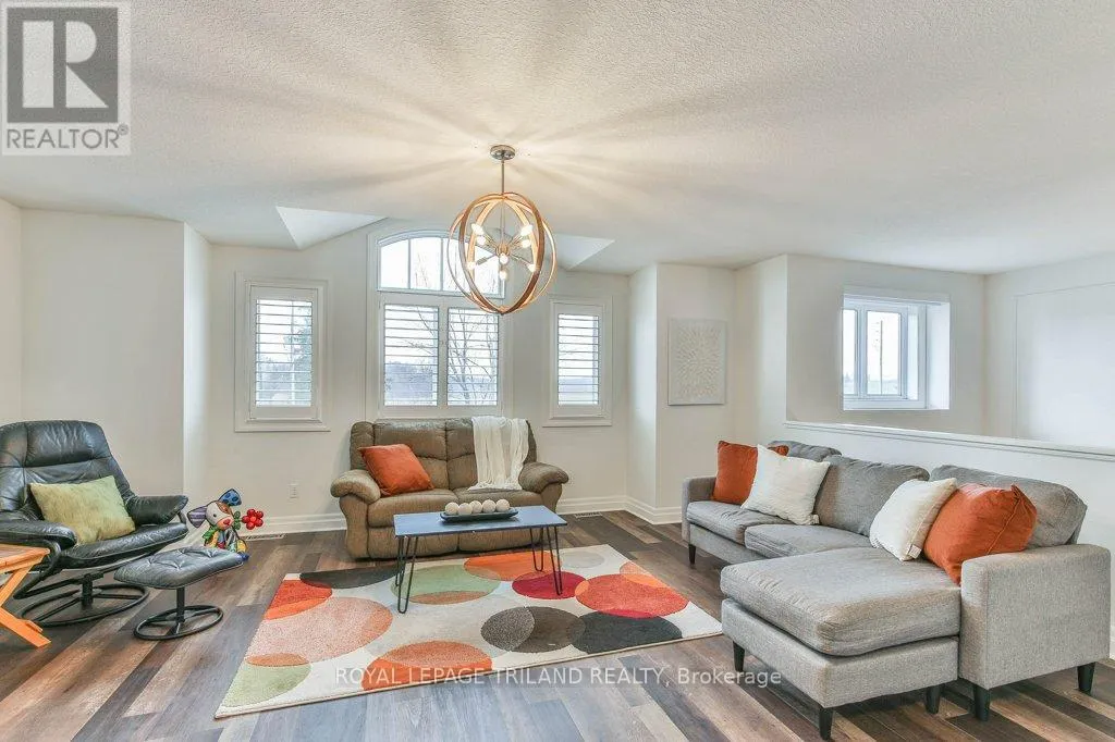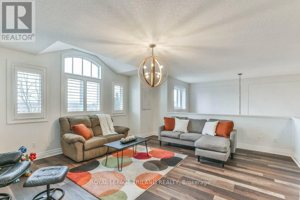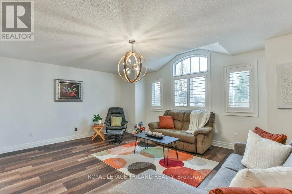 Cross Streets: COLONEL TALBOT RD / PACK RD. ** Directions: LOCATED ON THE EAST SIDE OF COLONEL TALBOT RD BETWEEN PACK RD AND RALEIGH BLVD. Welcome to the Promenade in Talbot Village! This detached vacant land condo offers the rare advantage of owning your lot while enjoying low-maintenance living, all in a prime location just minutes from everyday amenities.Backed by open green space and surrounded by ponds and the Talbot Trail System, this home offers a peaceful setting with added privacy and no direct rear neighbours. Offering approximately 2,200 sq ft above grade (as per exterior measurements), plus a finished lower level, this 3+1 bedroom home is well designed for modern living.The main floor features 9 ft ceilings and an open-concept layout with a spacious great room, complete with gas fireplace and large windows with California shutters. The kitchen is both functional and stylish, featuring stainless steel appliances, a quartz island, and custom ceiling detail.Upstairs, you'll find a generous family room, convenient second-floor laundry, and a primary bedroom with a 4-piece ensuite. Two additional bedrooms and a full bathroom complete the level.The finished lower level offers a recreation room, guest bedroom with 2 closets, 4-piece bathroom, and additional storage space.Notable upgrades and features include hardwood flooring, quartz countertops, pot lights in the great room, wrought iron spindles, California shutters, and a covered rear porch overlooking green space.Additional highlights include a double car garage, excellent curb appeal, and visitor parking located directly in front of the home.Condo fees are $260.78/month and include snow removal, landscaping, grass maintenance, and an in-ground sprinkler system.Ideally located just minutes from Byron and Westmount, and close to grocery stores, restaurants, banks, and more-this is an excellent opportunity to enjoy a well-maintained home in a sought-after community. (id:27476)