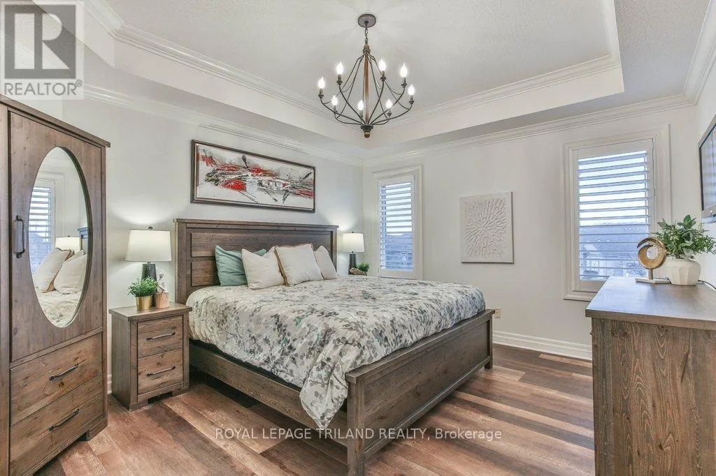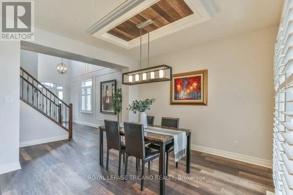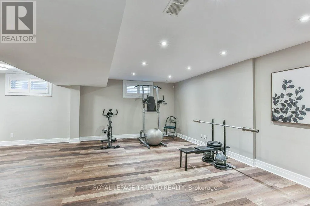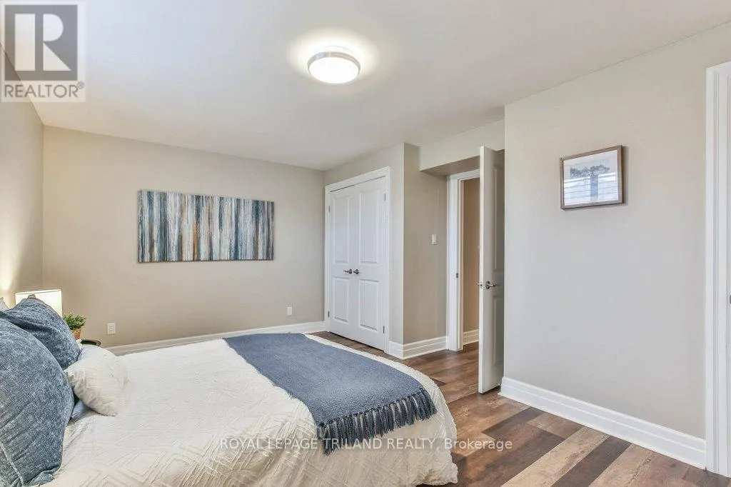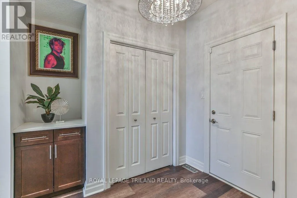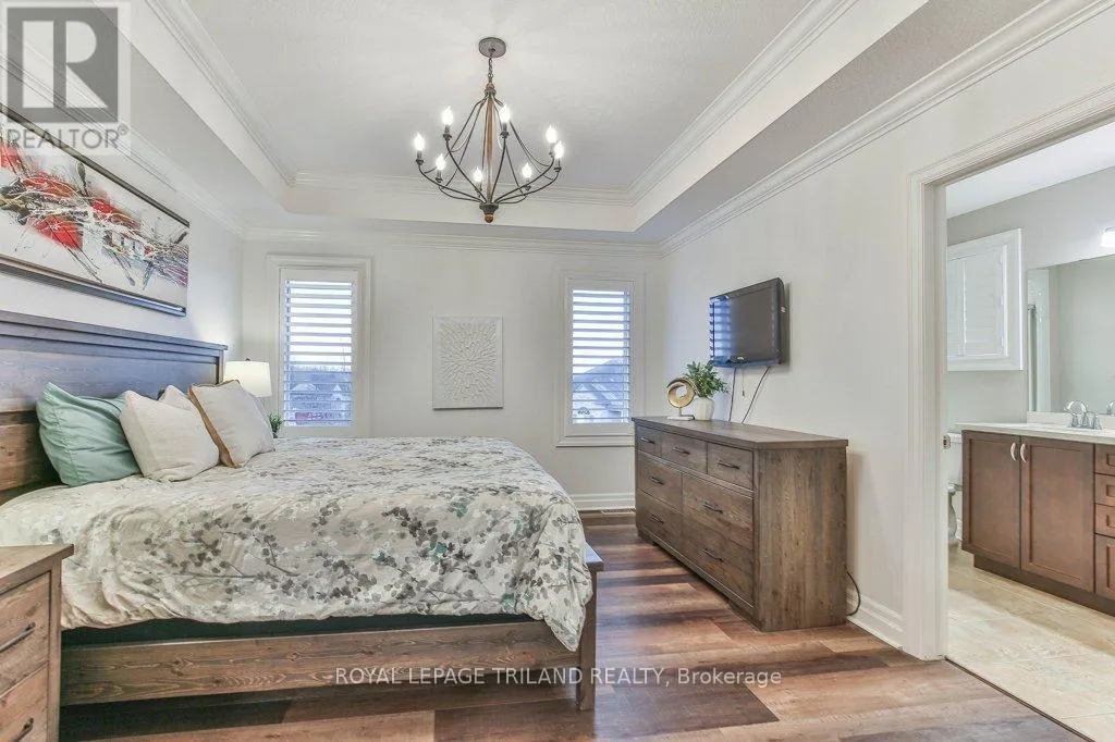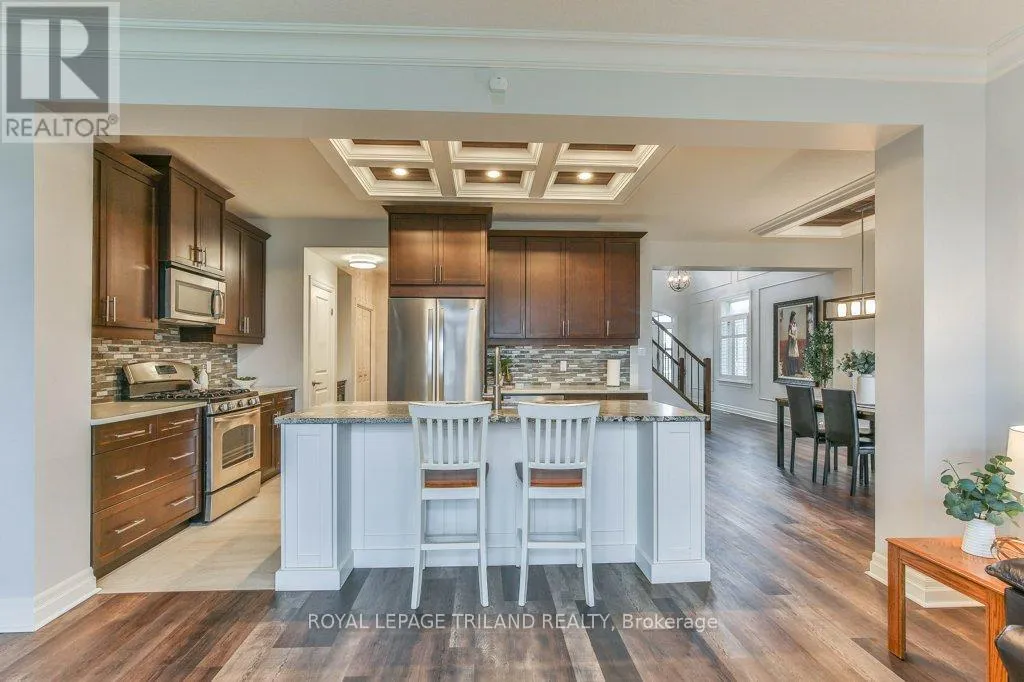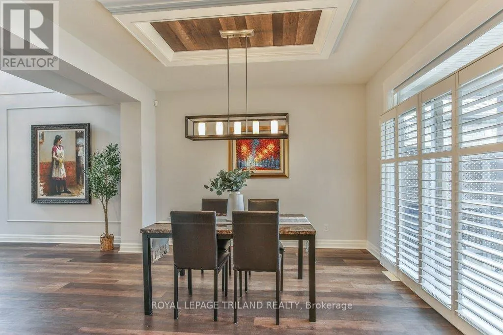 Cross Streets: COLONEL TALBOT RD / PACK RD. ** Directions: LOCATED ON THE EAST SIDE OF COLONEL TALBOT RD BETWEEN PACK RD AND RALEIGH BLVD. Welcome to the Promenade in Talbot Village! This detached vacant land condo offers the rare advantage of owning your lot while enjoying low-maintenance living, all in a prime location just minutes from everyday amenities.Backed by open green space and surrounded by ponds and the Talbot Trail System, this home offers a peaceful setting with added privacy and no direct rear neighbours. Offering approximately 2,200 sq ft above grade (as per exterior measurements), plus a finished lower level, this 3+1 bedroom home is well designed for modern living.The main floor features 9 ft ceilings and an open-concept layout with a spacious great room, complete with gas fireplace and large windows with California shutters. The kitchen is both functional and stylish, featuring stainless steel appliances, a quartz island, and custom ceiling detail.Upstairs, you'll find a generous family room, convenient second-floor laundry, and a primary bedroom with a 4-piece ensuite. Two additional bedrooms and a full bathroom complete the level.The finished lower level offers a recreation room, guest bedroom with 2 closets, 4-piece bathroom, and additional storage space.Notable upgrades and features include hardwood flooring, quartz countertops, pot lights in the great room, wrought iron spindles, California shutters, and a covered rear porch overlooking green space.Additional highlights include a double car garage, excellent curb appeal, and visitor parking located directly in front of the home.Condo fees are $260.78/month and include snow removal, landscaping, grass maintenance, and an in-ground sprinkler system.Ideally located just minutes from Byron and Westmount, and close to grocery stores, restaurants, banks, and more-this is an excellent opportunity to enjoy a well-maintained home in a sought-after community. (id:27476)