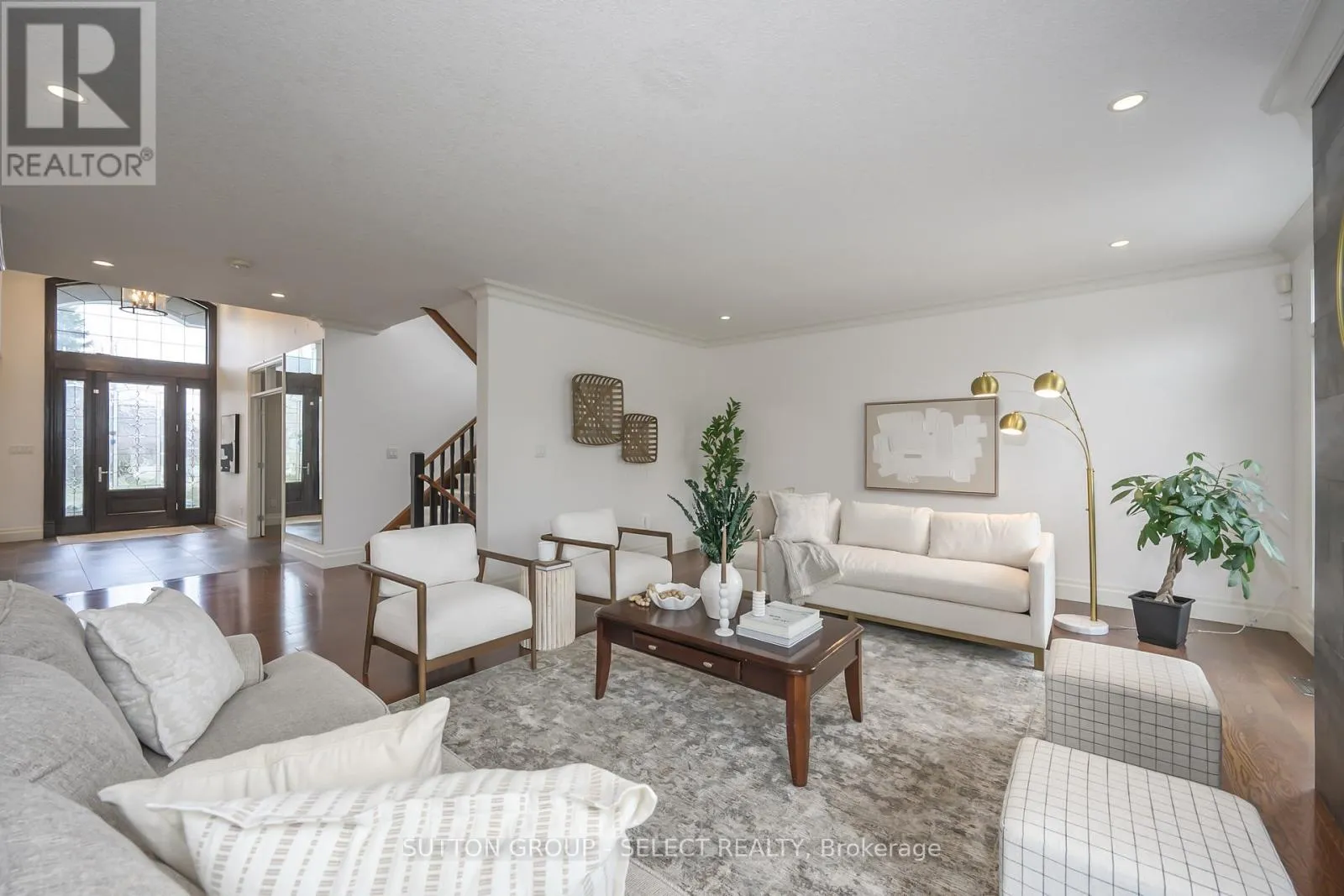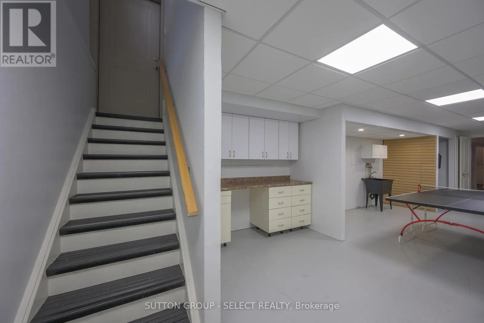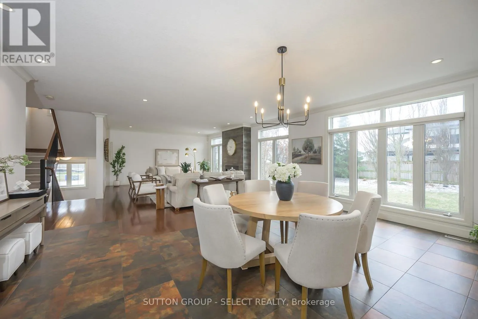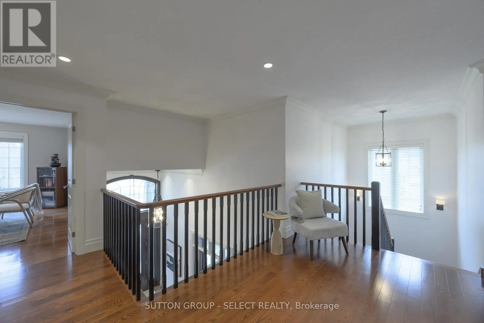 Cross Streets: Wickerson Gate/ Bayford Crescent. ** Directions: WEST ON BYRON BASELINE RD., TURN LEFT ON WICKERSON RD. AND THEN TURN LEFT ON WICKERSON GATE. A rare combination of scale, presence, and setting begins at the covered front porch, where substantial columns, stonework, and a stately entry create an immediate sense of arrival. A triple car garage and wide driveway reinforce the home's presence from the street. Inside, the two-storey foyer rises with natural light, framed by an arched opening and statement lighting-introducing the volume and architectural detail that define this home.The main level is anchored by expansive principal rooms that feel both open and intentional. Rich hardwood, substantial crown moulding, and custom millwork carry throughout, while a wall of windows across the back of the home draws in natural light and connects seamlessly to the outdoor living space. The living area is centred around a fireplace, with clear sightlines into the kitchen and dining spaces-designed for both everyday function and larger gatherings.The kitchen delivers on both presence and practicality, with extensive cabinetry, a large centre island with prep sink, gas range, and a walk-in pantry. A wet bar/servery enhances flow to the dining area. A private office is located off the foyer, along with convenient main floor laundry. Garden doors lead to a covered patio with an integrated wood-burning fireplace-an outdoor space that feels private and purposeful.Upstairs, a wide landing overlooks the foyer below. Four well-proportioned bedrooms include a primary suite with space to unwind, complemented by an ensuite with soaker tub, glass shower, double vanity, and skylight.The fully finished lower level adds flexibility with a large media/games room, fireplace, bedroom, full bath, and workshop.. A separate staircase from the garage supports multi-generational or private use.A fully fenced, pool-sized yard and wide corner lot offer added frontage, privacy, and a more open streetscape, set in Wickerson Heights at the edge of Byron Village. Nearby trails, Thames River, West 5, RiverBend Golf & Hunt Club Golf. (id:27476)