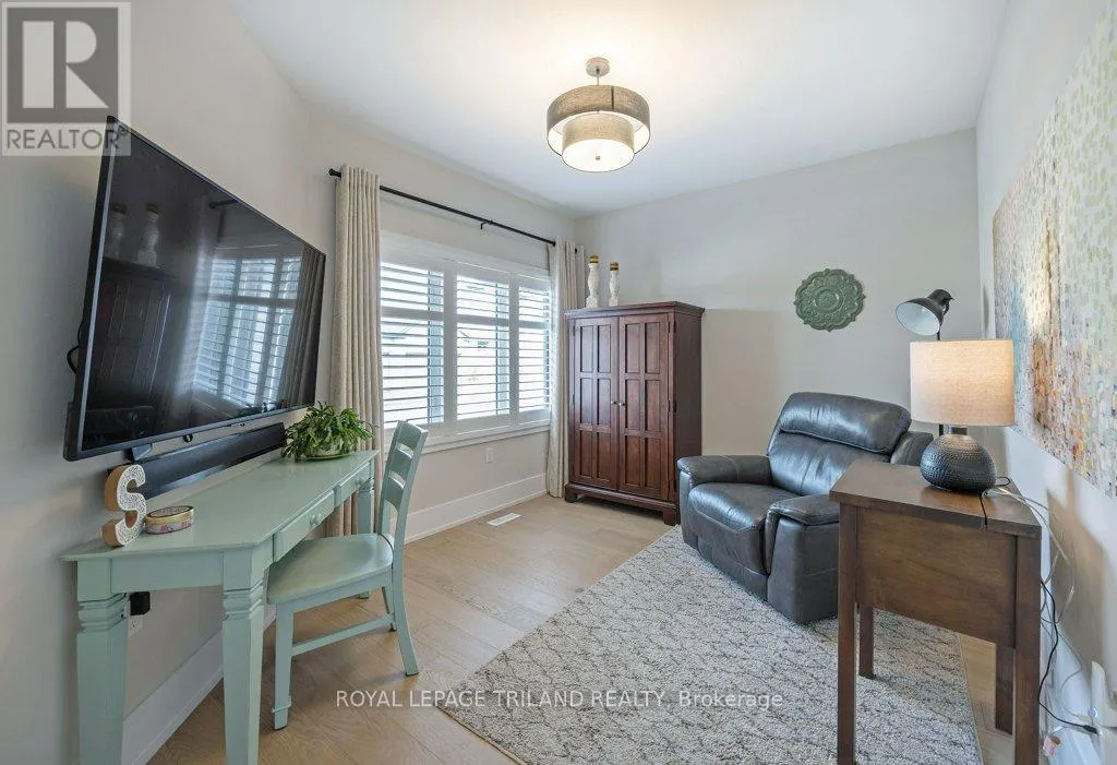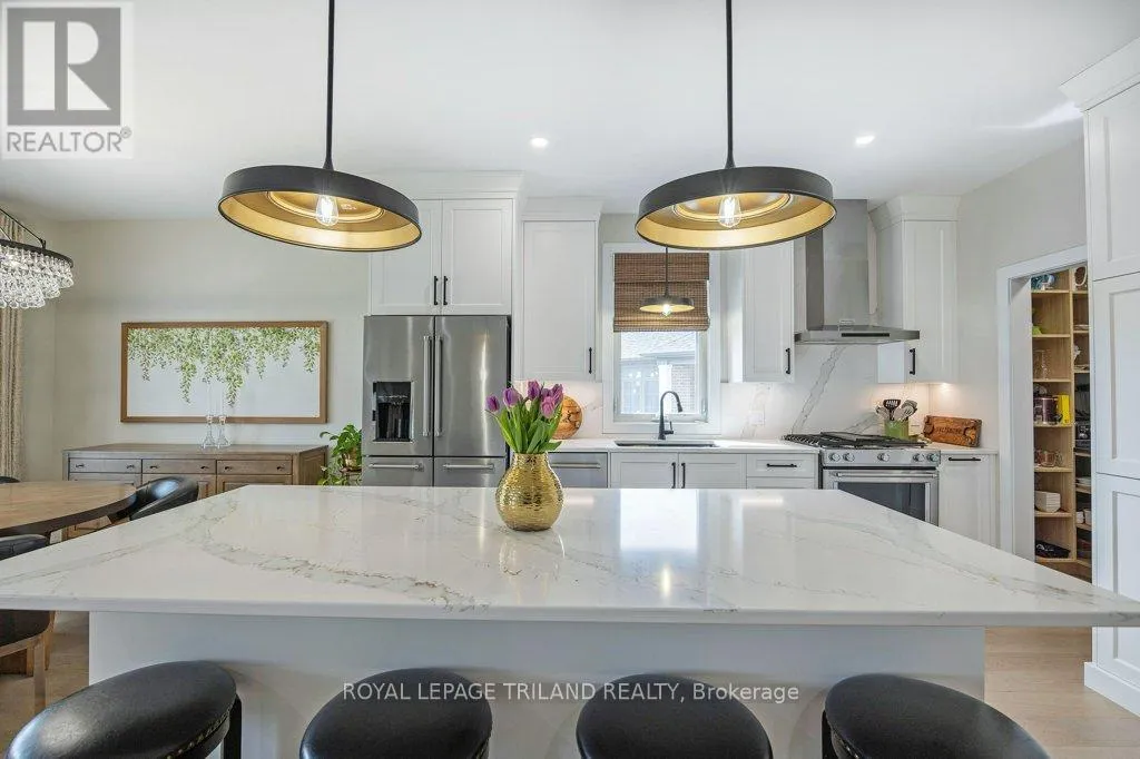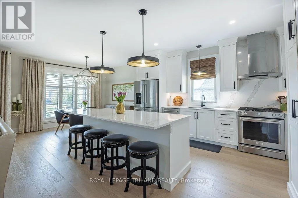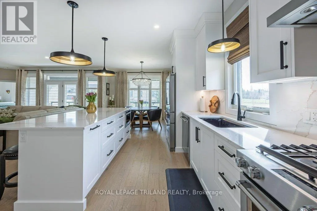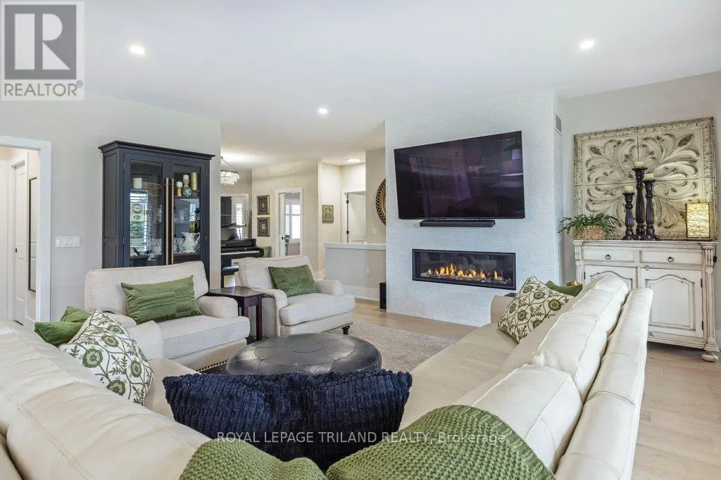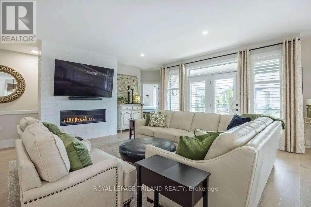 Cross Streets: Oxford Street W./Kains Road. ** Directions: West on Oxford Street W., right on Kains Rd, right on Sandy Somerville Dr, take first exit in roundabout at Ed Ervasti Lane. At just two years young and set within the 50+ gated Riverbend Golf Community, this sprawling home is as polished as it is practical. Thoughtfully designed with elevated finishes & numerous upgrades throughout - Quartz countertops throughout, California shutters, a stunning gas fireplace, an oversized walk-in pantry with a sink, main floor laundry, an EV charger and third garage door for your golf cart just to name a few! A gorgeous kitchen island with bonus seating sets the tone for easy, sociable living, while the adjoining dining and great room offer the kind of space that naturally brings everyone together. Two main-floor bedrooms and a den - perfectly suited for an office-are complemented by a large bedroom and family room on the lower level, giving your guests plenty of room to feel at home. Enjoy peaceful mornings with your coffee in hand or fun evenings catching up with friends over a meal under the covered patio. And the best part of this whole experience? - everything else is taken care of. Lawn care, snow removal, even home monitoring while you're away... it's all handled, so your time is truly your own. However you like to spend your day, you will be spoiled for choice by the amenities at The Club House. Golfing, nature walks, fitness classes, or time in the pool with the grandkids-the Clubhouse is always there for great meals and even better company. This isn't just a home, it's a resort lifestyle. Ready when you are! (id:27476)