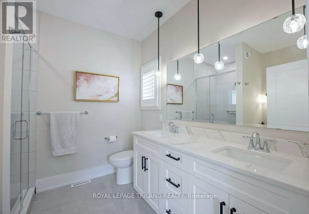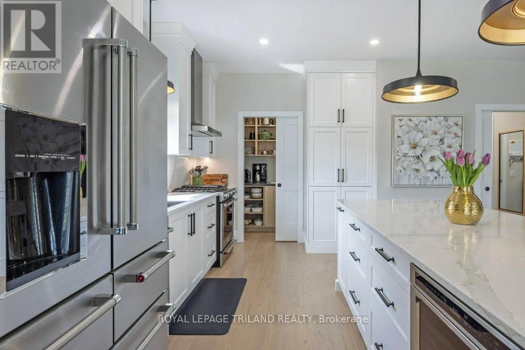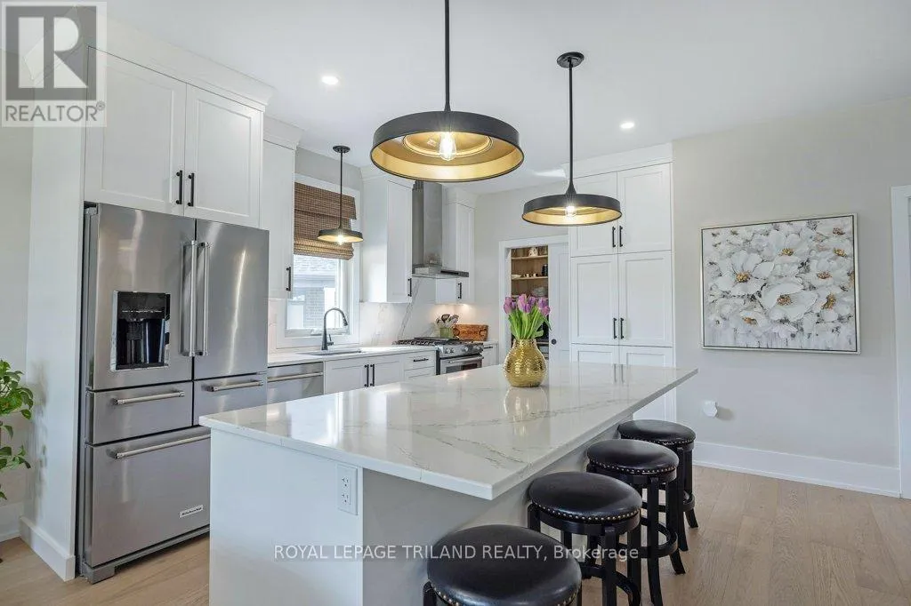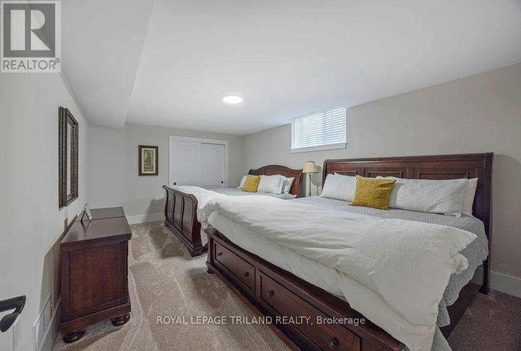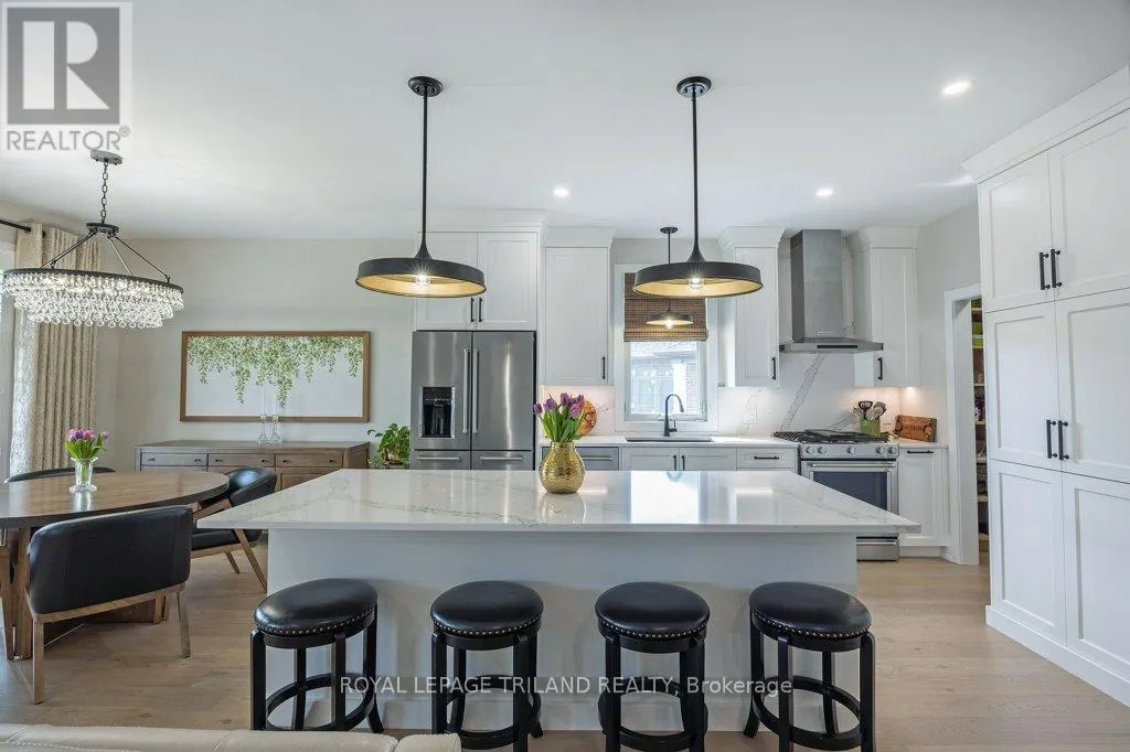 Cross Streets: Oxford Street W./Kains Road. ** Directions: West on Oxford Street W., right on Kains Rd, right on Sandy Somerville Dr, take first exit in roundabout at Ed Ervasti Lane. At just two years young and set within the 50+ gated Riverbend Golf Community, this sprawling home is as polished as it is practical. Thoughtfully designed with elevated finishes & numerous upgrades throughout - Quartz countertops throughout, California shutters, a stunning gas fireplace, an oversized walk-in pantry with a sink, main floor laundry, an EV charger and third garage door for your golf cart just to name a few! A gorgeous kitchen island with bonus seating sets the tone for easy, sociable living, while the adjoining dining and great room offer the kind of space that naturally brings everyone together. Two main-floor bedrooms and a den - perfectly suited for an office-are complemented by a large bedroom and family room on the lower level, giving your guests plenty of room to feel at home. Enjoy peaceful mornings with your coffee in hand or fun evenings catching up with friends over a meal under the covered patio. And the best part of this whole experience? - everything else is taken care of. Lawn care, snow removal, even home monitoring while you're away... it's all handled, so your time is truly your own. However you like to spend your day, you will be spoiled for choice by the amenities at The Club House. Golfing, nature walks, fitness classes, or time in the pool with the grandkids-the Clubhouse is always there for great meals and even better company. This isn't just a home, it's a resort lifestyle. Ready when you are! (id:27476)