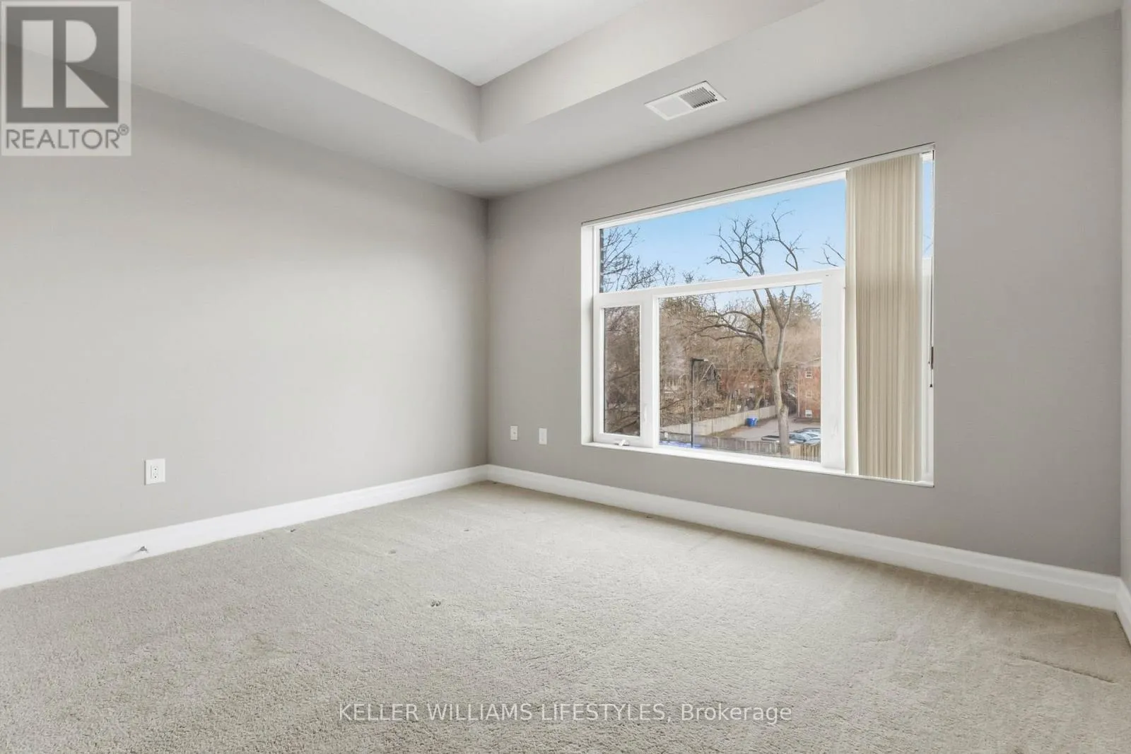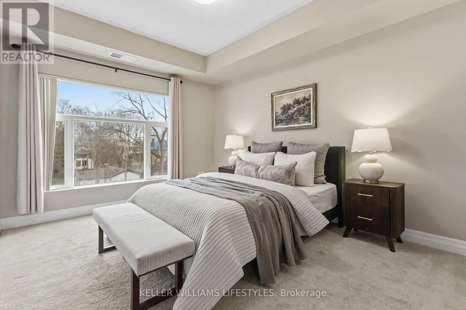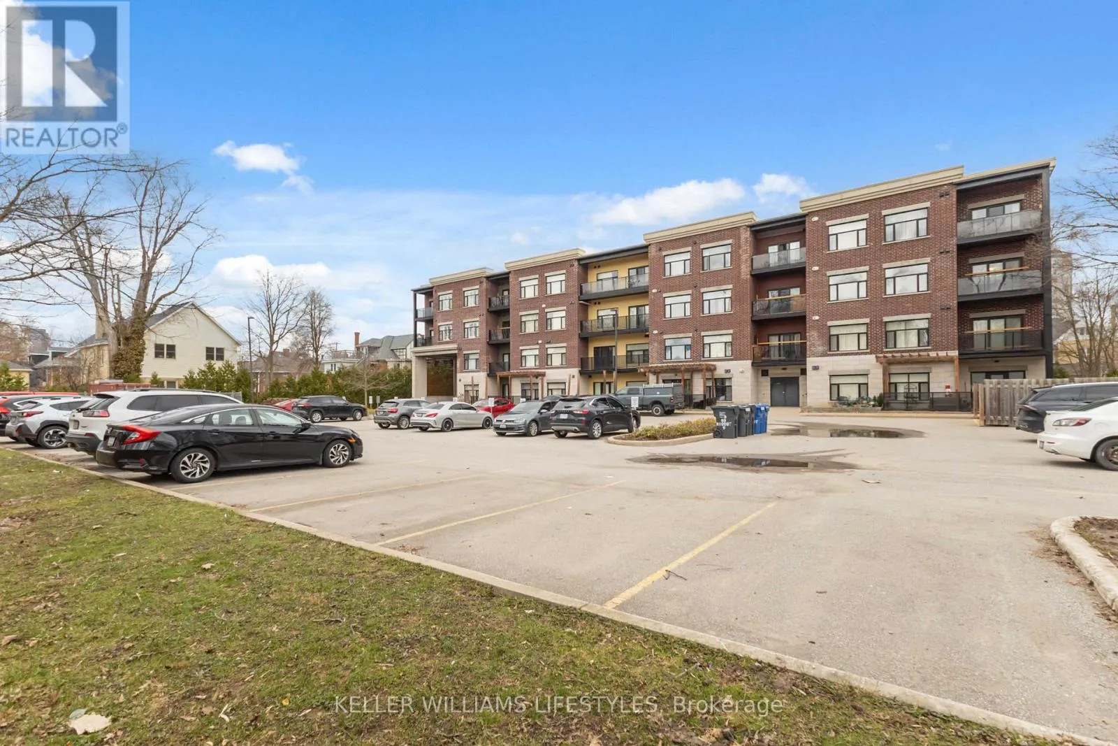 Cross Streets: Ridout Street South & Bruce Street. ** Directions: Head North on Ridout Street South and Property will be on West Side. Experience the refined lifestyle of Wortley Village in this premium corner suite at 89 Ridout Street South offering over 1300 sq. ft. of finished space, making it a rare find in the sought-after "Villas of Wortley" by the award-winning Tricar. This bright, southeast-facing unit features a generously sized living and dining area, designed for modern urban living and open concept design. The contemporary kitchen is equipped with hard surface countertops, stainless steel appliances, and ample cabinetry. Step through the sliding glass door to your private balcony making it the perfect retreat for enjoying mature neighbourhood views of Old South. The primary retreat includes a large walk-in closet and a private 3-piece ensuite. A generous second bedroom and a full 4 piece main bathroom provides a welcoming space for guests or a professional home office. Additional highlights include in-suite laundry, exclusive parking. Situated in the heart of Wortley/Old South, you are steps away from the independent boutiques, cafes, and restaurants of Wortley Village, consistently recognized as one of Canada's best neighborhoods. For those who enjoy an active lifestyle, this wonderful home is a five-minute walk to Thames Park and provides immediate access to the 45km Thames Valley Parkway trail system, connecting you to downtown London and Western University. Healthcare professionals will appreciate the close proximity to Hospitals near by including Victoria Hospital, St. Joes & University Hospital. Enjoy controlled entry, a fitness room, and an elevator, this well-maintained building offers a sophisticated and convenient lifestyle in the London, Ontario real estate market. Discover why this remains one of the city's most desirable communities. (id:27476)