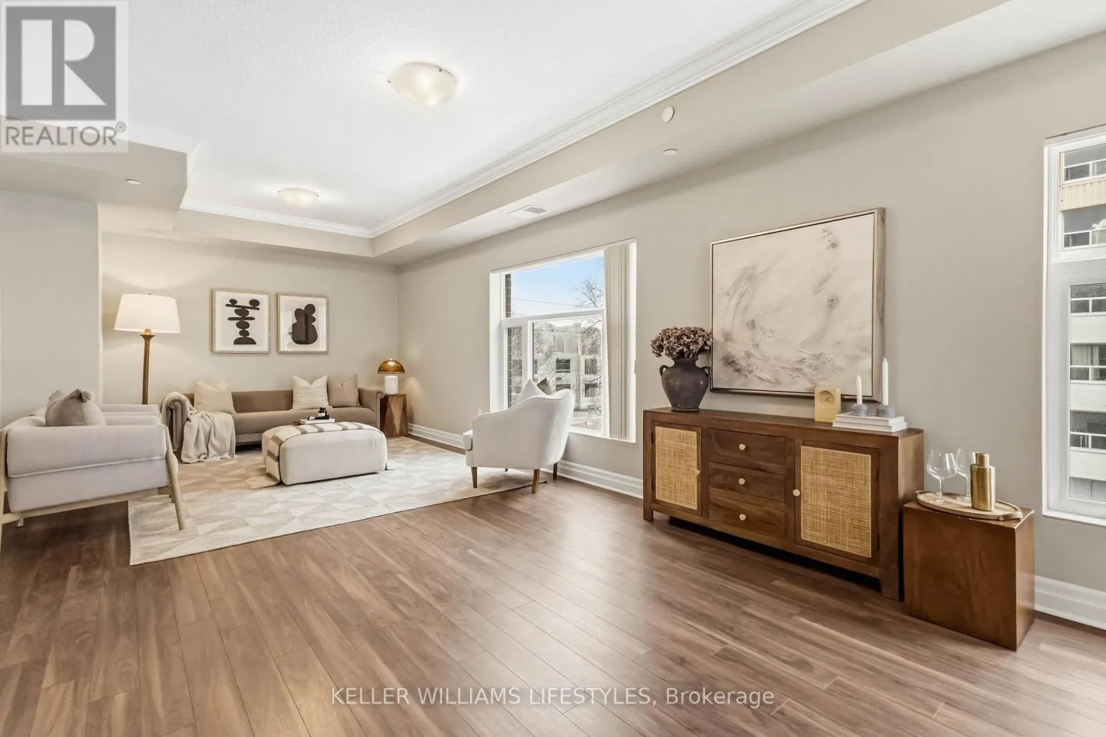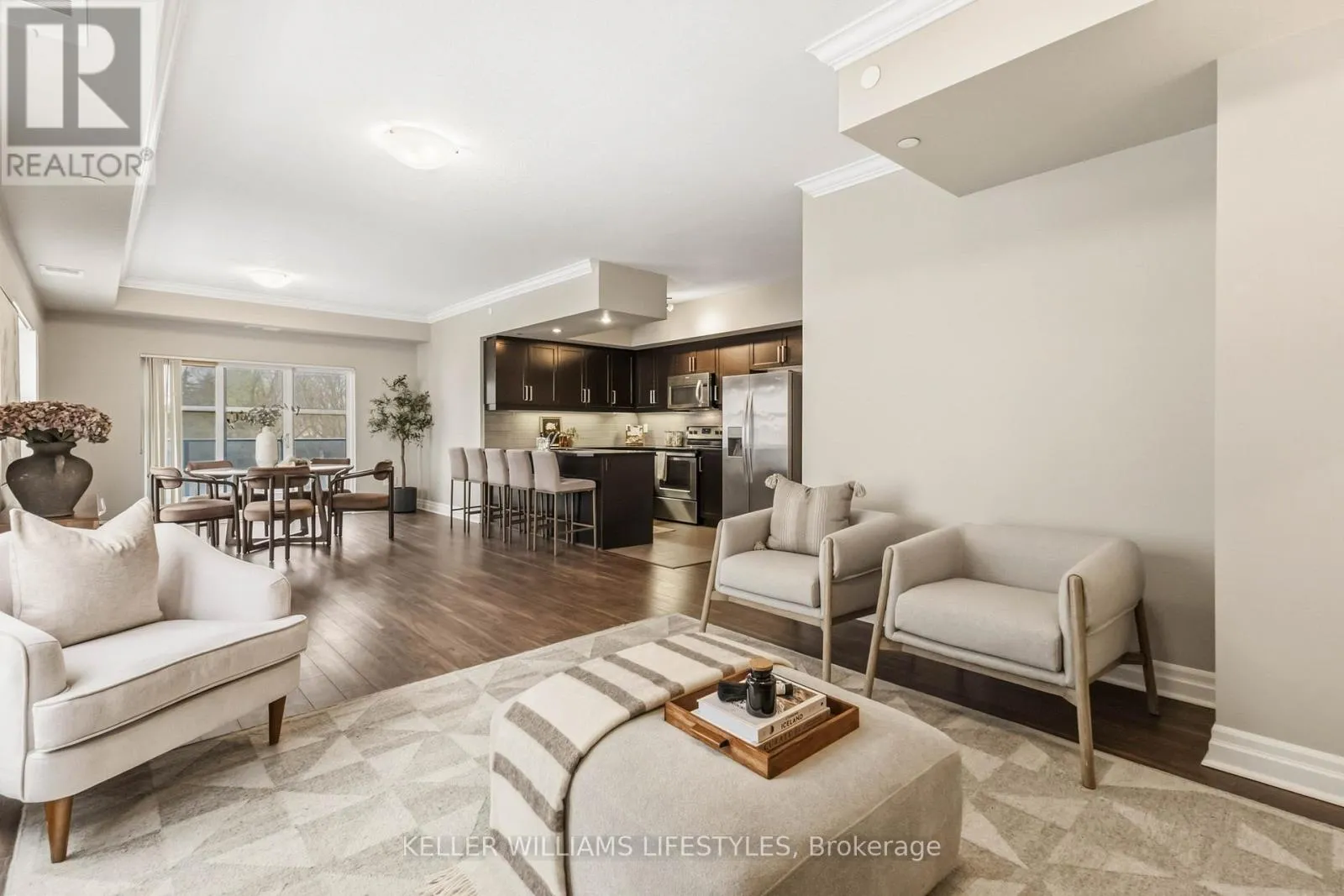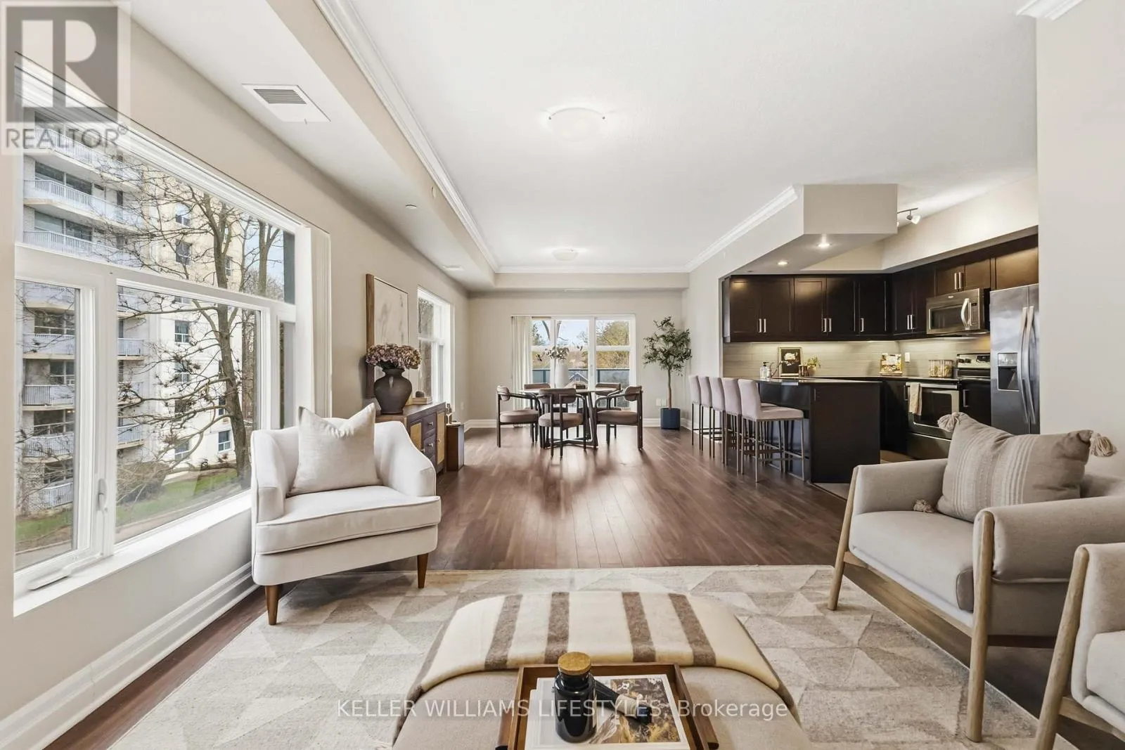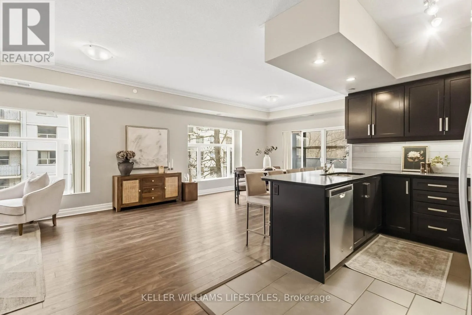 Cross Streets: Ridout Street South & Bruce Street. ** Directions: Head North on Ridout Street South and Property will be on West Side. Experience the refined lifestyle of Wortley Village in this premium corner suite at 89 Ridout Street South offering over 1300 sq. ft. of finished space, making it a rare find in the sought-after "Villas of Wortley" by the award-winning Tricar. This bright, southeast-facing unit features a generously sized living and dining area, designed for modern urban living and open concept design. The contemporary kitchen is equipped with hard surface countertops, stainless steel appliances, and ample cabinetry. Step through the sliding glass door to your private balcony making it the perfect retreat for enjoying mature neighbourhood views of Old South. The primary retreat includes a large walk-in closet and a private 3-piece ensuite. A generous second bedroom and a full 4 piece main bathroom provides a welcoming space for guests or a professional home office. Additional highlights include in-suite laundry, exclusive parking. Situated in the heart of Wortley/Old South, you are steps away from the independent boutiques, cafes, and restaurants of Wortley Village, consistently recognized as one of Canada's best neighborhoods. For those who enjoy an active lifestyle, this wonderful home is a five-minute walk to Thames Park and provides immediate access to the 45km Thames Valley Parkway trail system, connecting you to downtown London and Western University. Healthcare professionals will appreciate the close proximity to Hospitals near by including Victoria Hospital, St. Joes & University Hospital. Enjoy controlled entry, a fitness room, and an elevator, this well-maintained building offers a sophisticated and convenient lifestyle in the London, Ontario real estate market. Discover why this remains one of the city's most desirable communities. (id:27476)