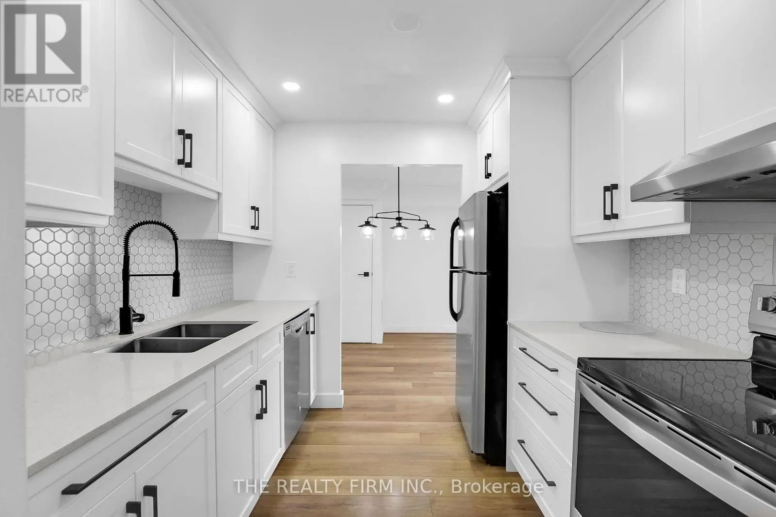 Cross Streets: Adelaide St and Commissioners Rd. ** Directions: From Adelaide and Commissioners, go West on Commissioners, building will be on your right side. Completely renovated 2 bedroom condo with open concept living room/dining room offering access to a large balcony with fantastic views. Updated kitchen includes new cupboards, granite counters, modern backsplash and stainless-steel appliances. Bathroom features a stunning designer tiled shower. This unit offers a large master bedroom as well as an additional bedroom with a lovely accent wall. En-suite laundry. This building has many amenities including controlled entry, pool, whirlpool, sauna, tennis courts and gym. Very well managed and maintained property. Short walk to shopping and dining, close to downtown, Victoria Hospital and the 401. Ample parking including a covered garage. (id:27476)