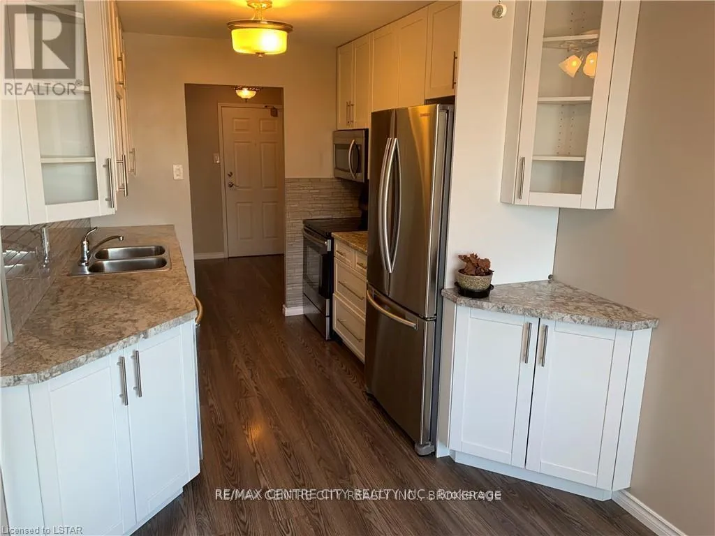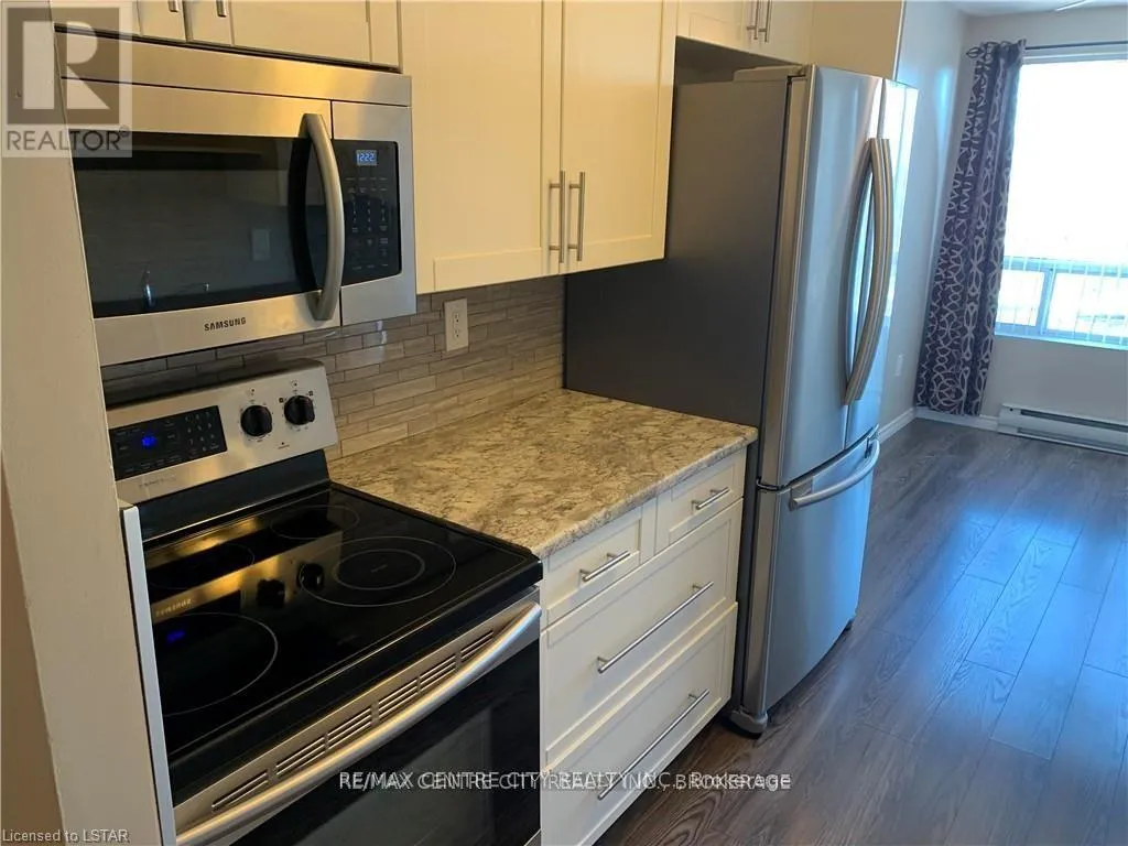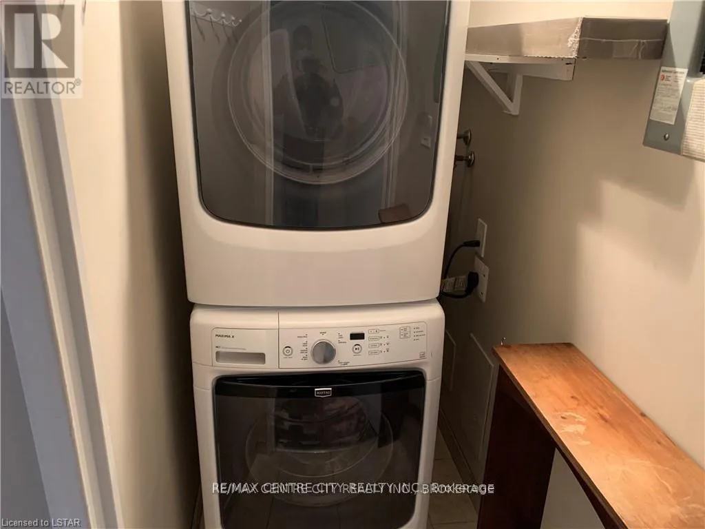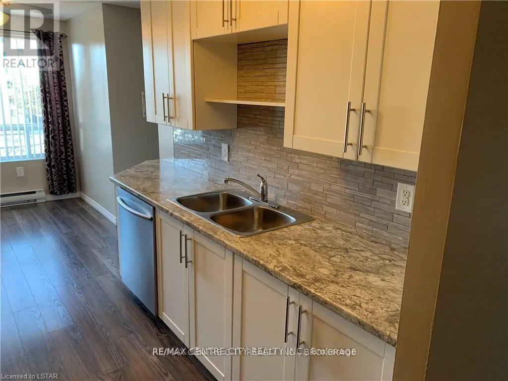 Cross Streets: WHANRCLIFFE RD. ** Directions: SOUTH SIDE OF BASE LINE RD W, WEST OF WHARNCLIFFE RD. Don't miss!!! Stunning 2 bedroom + 2 bathroom unit with balcony! Professionally installed beautiful flooring with quiet underlay. Updated baseboards throughout, updated kitchen cupboards, counters, backsplash. Every light fixture has been updated, door handles & light switches. All kitchen appliances are newer- fridge, stove (self-clean), microwave, dishwasher & stackable Maytag washer & dryer. The bathrooms are filled with beautiful updates. All measurements approximate. $1800 per month plus hydro (water included). Available for June 1 move in. Photos prior to current tenant. (id:27476)