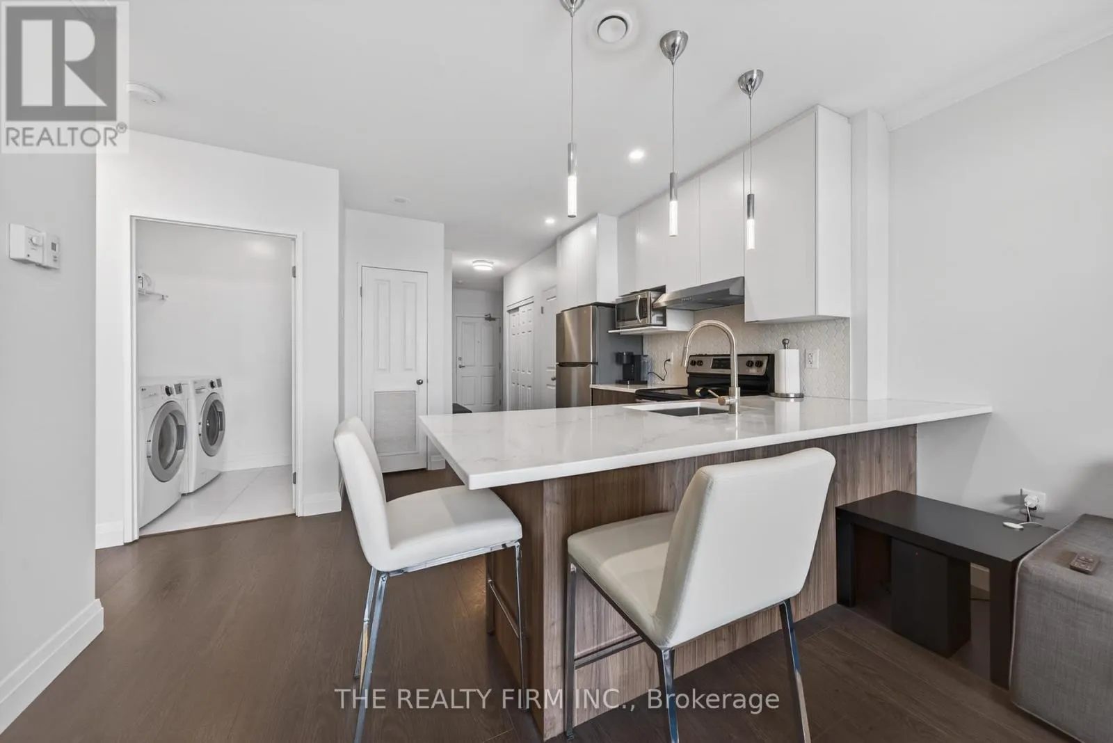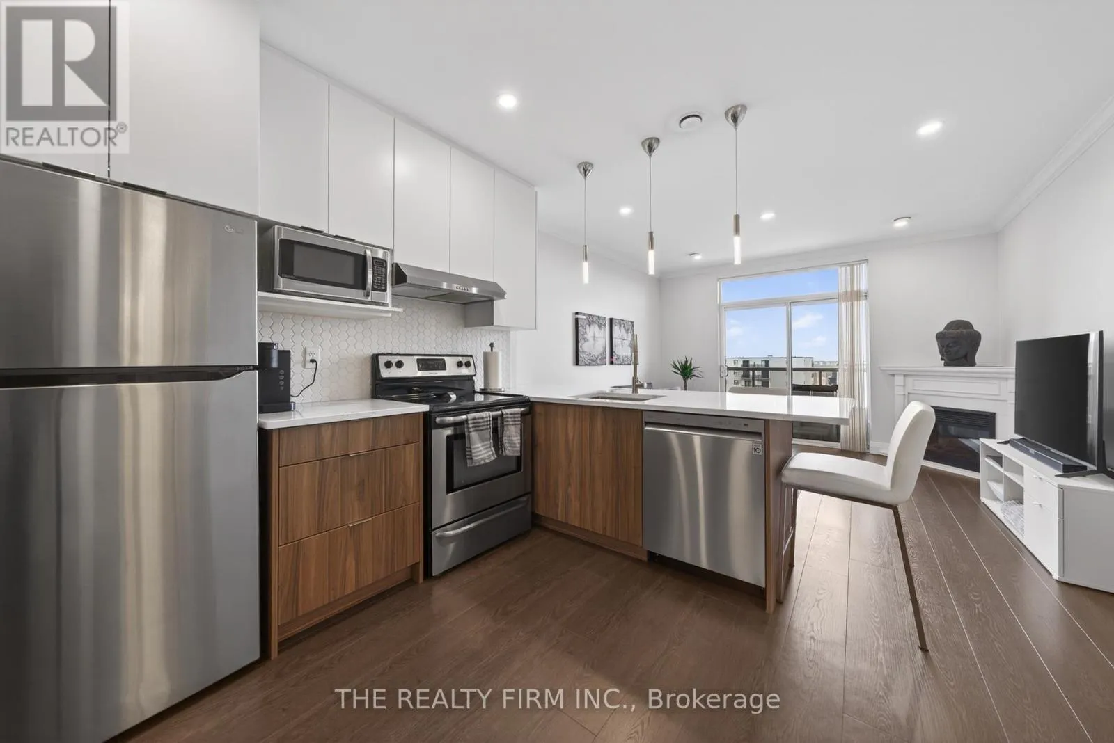 Cross Streets: Commissioners Rd W & Topping Lane. ** Directions: Located on the north side of Commissioners Rd W, just east of Wonderland Rd S and west of Wharncliffe Rd S. Property is near Topping Lane, within the Southcrest area. Welcome to Suite 803 at The Westcliff -- a beautifully updated, move-in ready condo offering elevated living with a clean, modern aesthetic and stunning north-facing views. Step inside to discover all new laminate flooring flowing seamlessly throughout. Complemented by flat ceilings with LED pot lights and upgraded light fixtures, creating a bright, contemporary feel. The fully renovated kitchen is part of what separates this condo from the rest, anchoring the open-concept layout, featuring sleek quartz countertops, stylish backsplash, s/s appliances, and spacious peninsula with seating. The sun-filled living room complete with a cozy fireplace and upgraded sliding doors leads to your private balcony, where you can unwind after a long day. The spacious primary bedroom offers a calm, comfortable retreat with excellent closet space, while the fully updated 4-piece bathroom showcases modern finishes, stone countertops and a fresh, clean design. Enjoy the added convenience of in-suite laundry. This condo includes TWO PARKING SPACES (one underground and one on-ground) -- a rare convenience and long-term value add. Residents also enjoy access to building amenities including a gym and library/games room with pool table. Ideally located in South London, just minutes from Victoria Hospital, shopping, restaurants, parks, and major transit routes -- offering a connected, low-maintenance lifestyle in a highly convenient location. (id:27476)