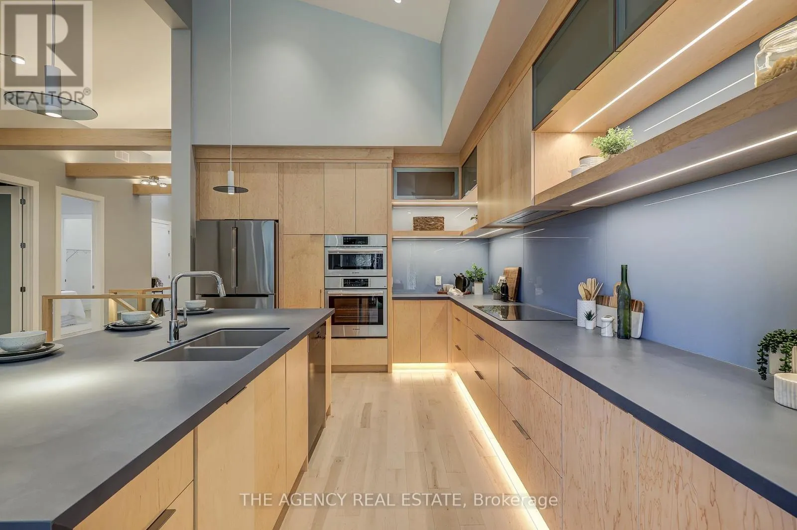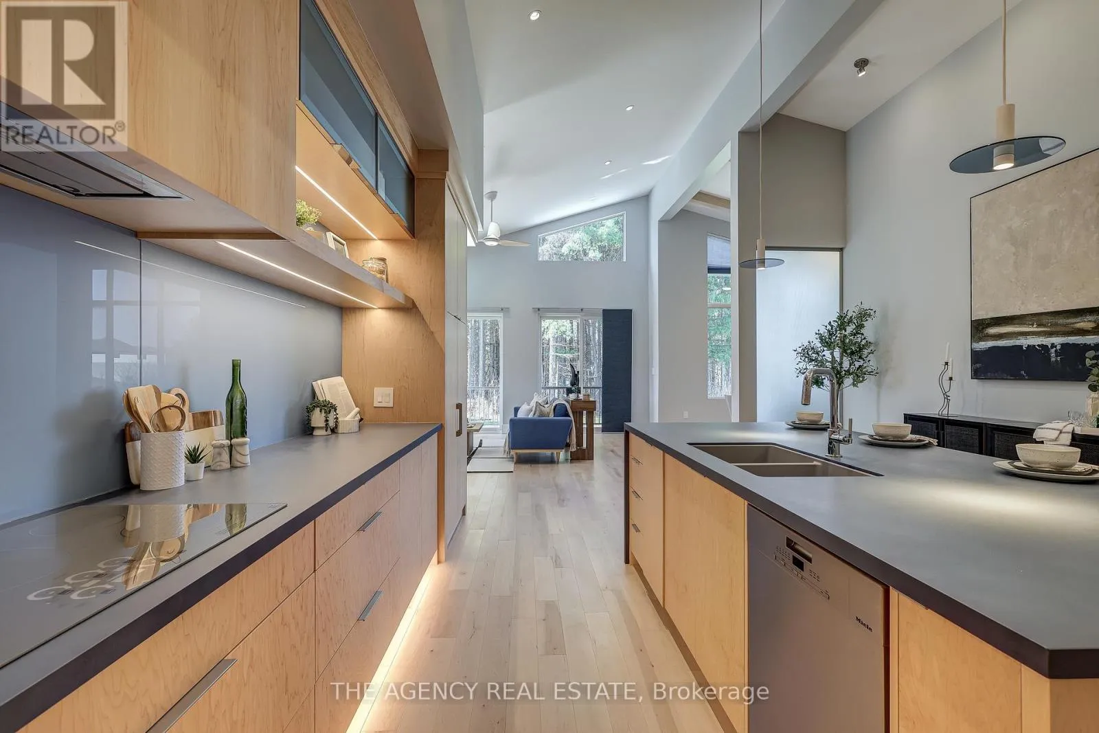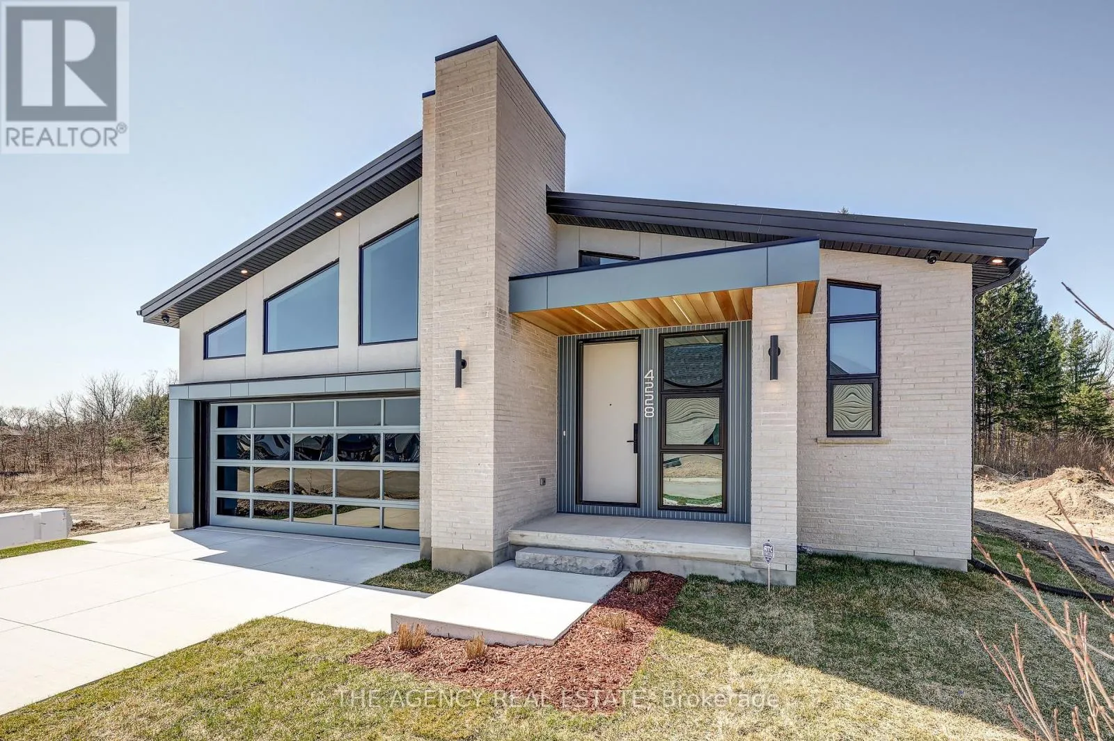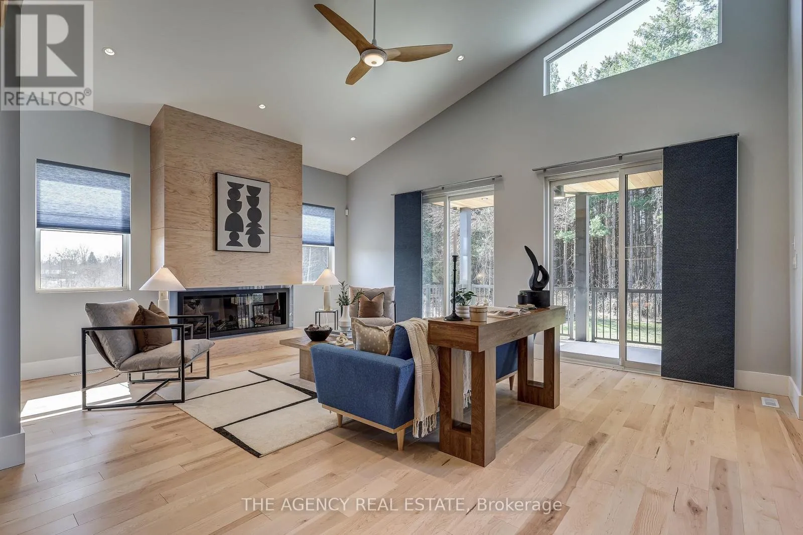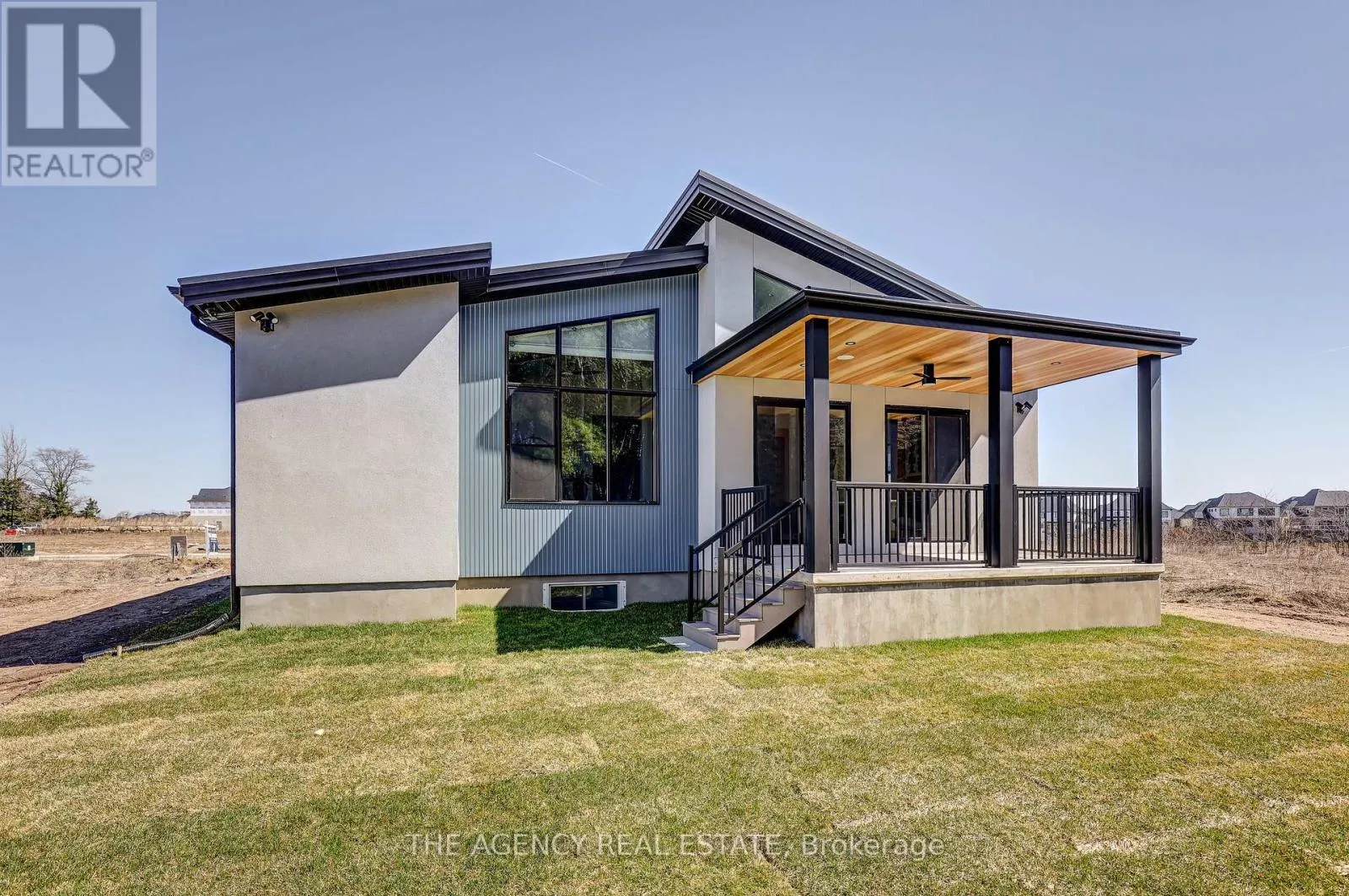 Cross Streets: Heathwoods and Fallingbrook. ** Directions: Col. talbot to Heathwoods. Heathwoods to Fallingbrook. Tucked into the prestigious enclave of Heathwoods in Lambeth. This exceptional bungalow sitson a premium 50 x 152 ft lot, bordered by a green space entrance and backing onto protectedtrees offering rare privacy and a peaceful natural backdrop just minutes to the 401, shopping,schools and dining.Thoughtfully designed with nearly 2,000 sq ft on the main level, this 2 bedroom, 2.5 bath homealso features an unfinished lower level with over 1,100 sq ft, a finished hallway and bathroomrough-in ideal for future bedrooms, living space or a custom layout tailored to your needs.This home is defined by two standout themes. First, a refined Scandinavian-inspired aesthetic with a focus on simplicity, warmth and upscale finishes. Clean lines, natural textures, custom millwork, statement ceiling beams and expansive windows create a calm, elevated living experience that feels both modern and timeless.Second, a commitment to eco-conscious, high-efficiency living. Designed for long-term sustainability and low maintenance, the home features a durable metal roof, solar panel system, high-performance heat pump, multi-zone HVAC, enhanced insulation, and energy-efficient systems throughout delivering comfort, cost savings and peace of mind for years to come.The result is a rare offering that seamlessly blends design-forward living with smart, future-focused performance all in one of Lambeth's most sought-after communities. (id:27476)