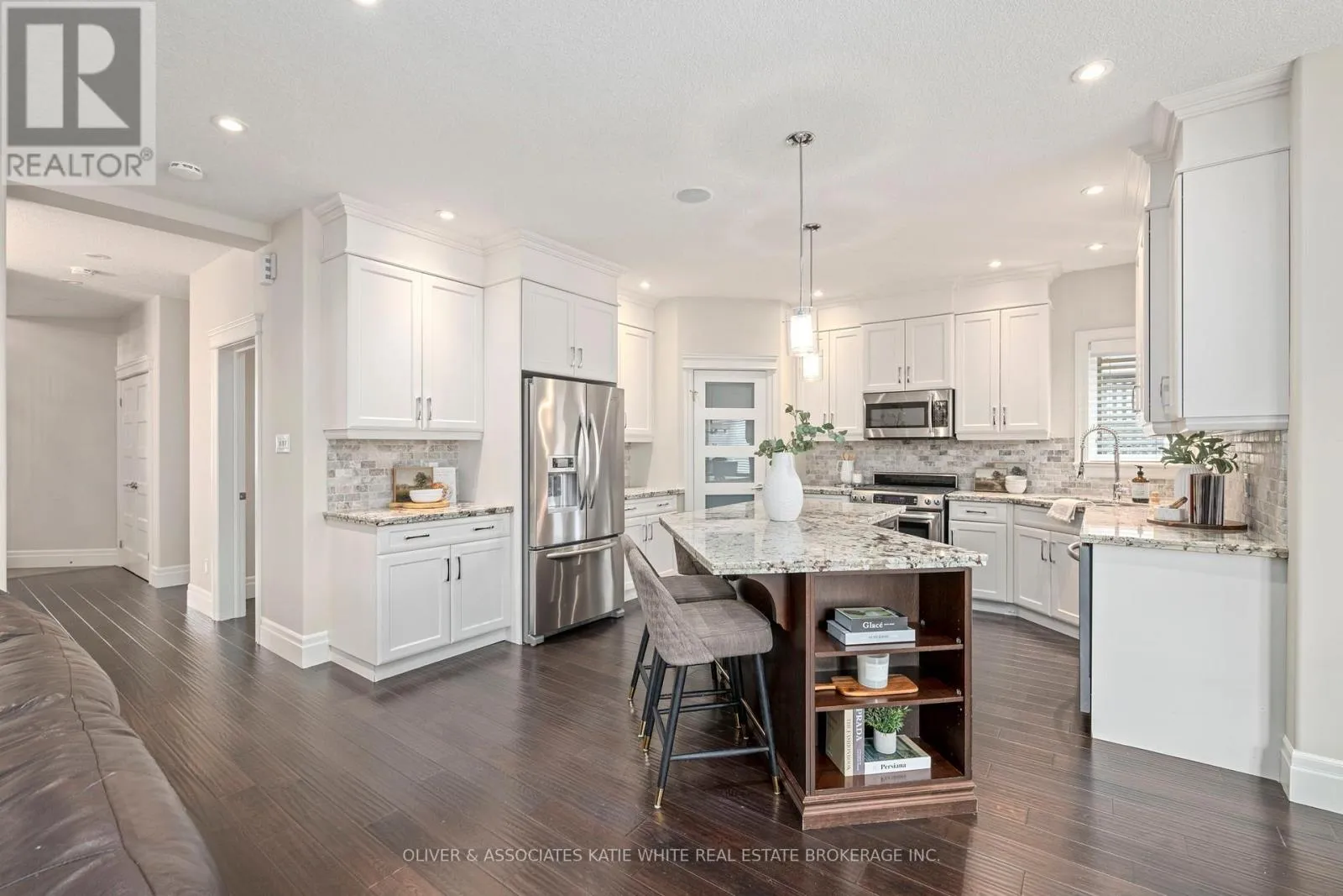 Cross Streets: TILLMANN RD. ** Directions: From Southdale Rd W, turn south on Tillmann Rd. At the roundabout, take 3rd exit onto Raleigh. #6589 will be on the right-hand-side. Beautiful family home in the heart of Talbot Village in southwest London. Impressive curb appeal with stone facade and professional landscaping. Open concept main level with hardwood flooring throughout and motorized blinds on the front windows. Spacious Great Room featuring a stone gas fireplace. Bright white Eat-in Kitchen with granite countertops, gas stove, breakfast bar, and corner pantry. Formal Dining Room, private Home Office/Den, and Laundry/Mudroom with built-ins complete the main floor. Upper level offers a Primary Suite with tray ceiling, walk-in closet, and spa-like Ensuite with dual sinks, soaker tub, and glass walk-in shower. Three additional Bedrooms and a 5-piece Bathroom upstairs. Finished lower level adds additional living space with a large Rec Room, gas fireplace, wet bar, custom built-ins, 5th Bedroom, 3-piece Bath, and separate Workout Room with sliding barn doors. "Whole Home Audio" with music source and volume control throughout main rooms. Attached fully insulated double garage with sink, storage, and inside entry. Private, fenced backyard with mature trees, manicured landscaping, and irrigation system controlled by phone app. Covered deck with recessed lighting and gas BBQ hookup, plus additional raised patio space for outdoor entertaining. New furnace (2025). Conveniently located close to shopping, parks, trails, and recreation centre. (id:27476)