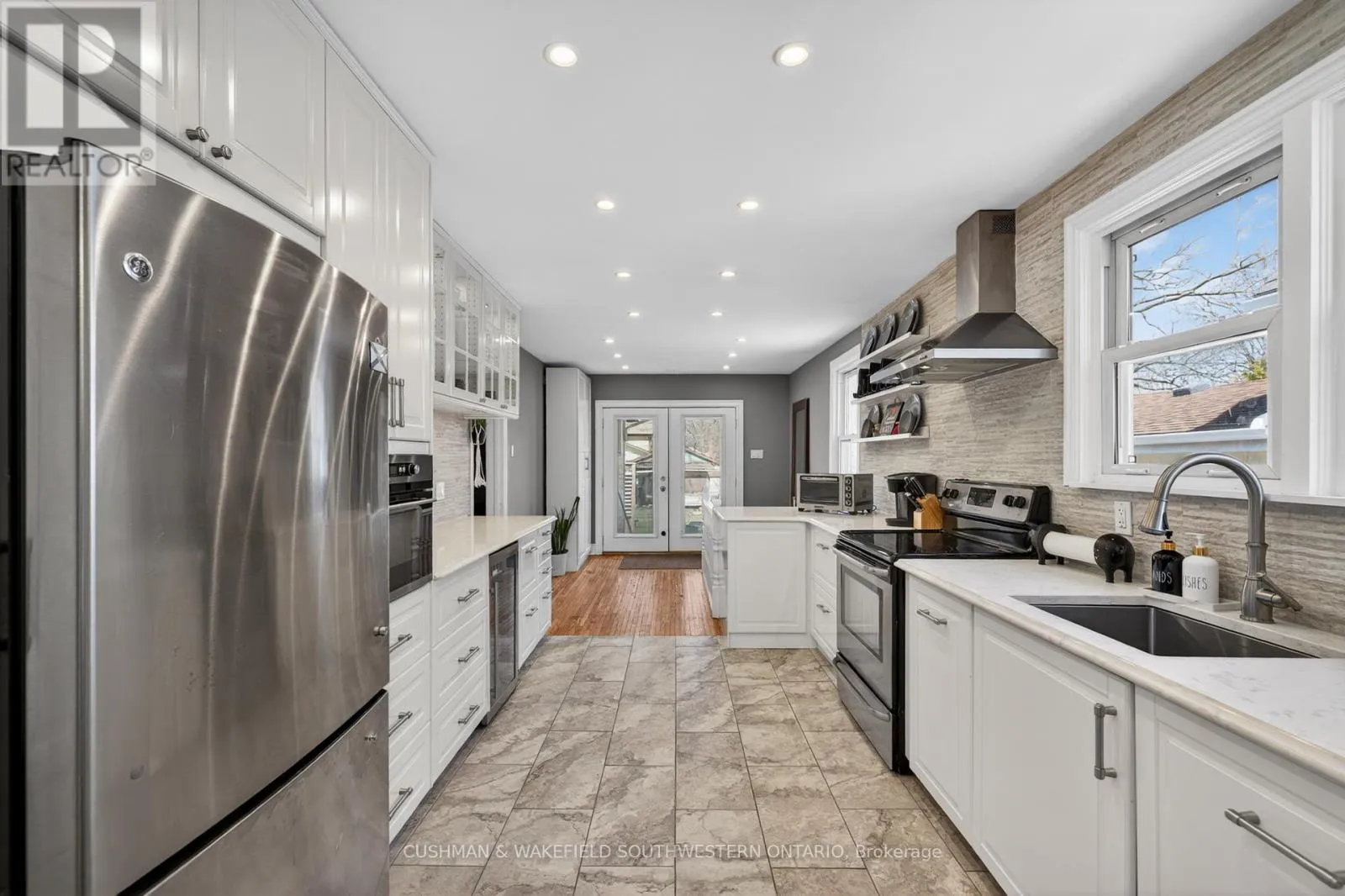 Cross Streets: Wellington and Baseline. ** Directions: Turn west on Thomas Janes from Wellington. Welcome to this charming well-maintained home, situated on one of the Old South's most desirable, tree-lined streets within walking distance to Victoria Hospital. It offers convenient main-floor living with versatile additional space below, combining functionality with charm. The bright and inviting main level features two spacious bedrooms, a full bathroom, A bright, large kitchen with extensive white cabinetry, including upper glass-front displays. Substantial counter space, Stainless steel appliances, full-size range with modern hood fan, built-in microwave, and a dedicated beverage fridge. Expand your living options downstairs with large living space ideal for guests, teenager's, in-laws, or even potential rental income. Large fenced backyard with stamped concrete patio for entertaining. Don't miss this unique opportunity to get into this charming bungalow in an unbeatable location in Old South, within walking distance to shopping, public transit, and Victoria Hospital. Book your showing today!! (id:27476)