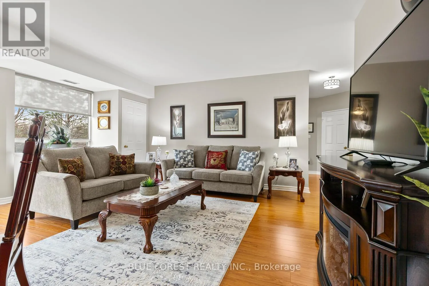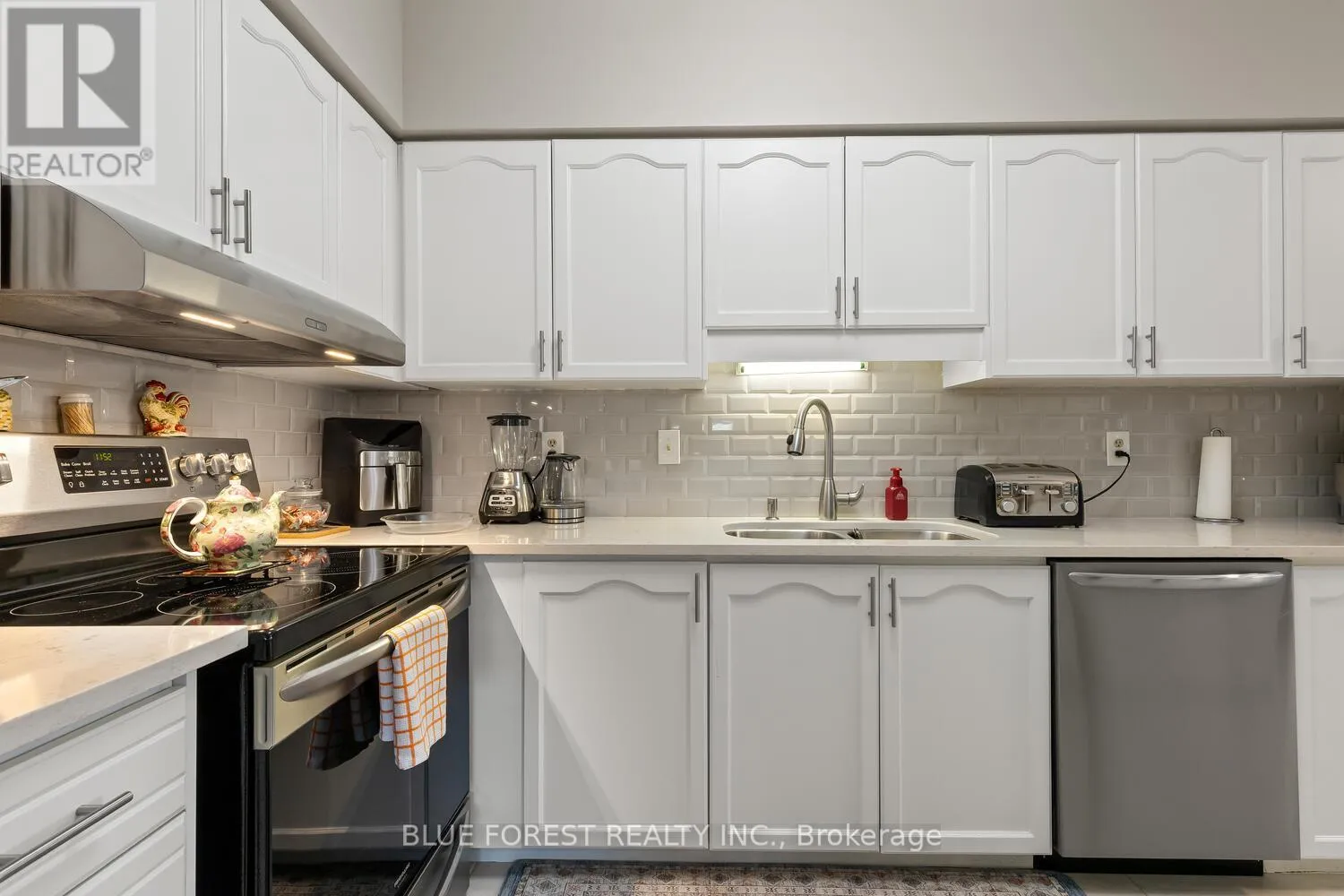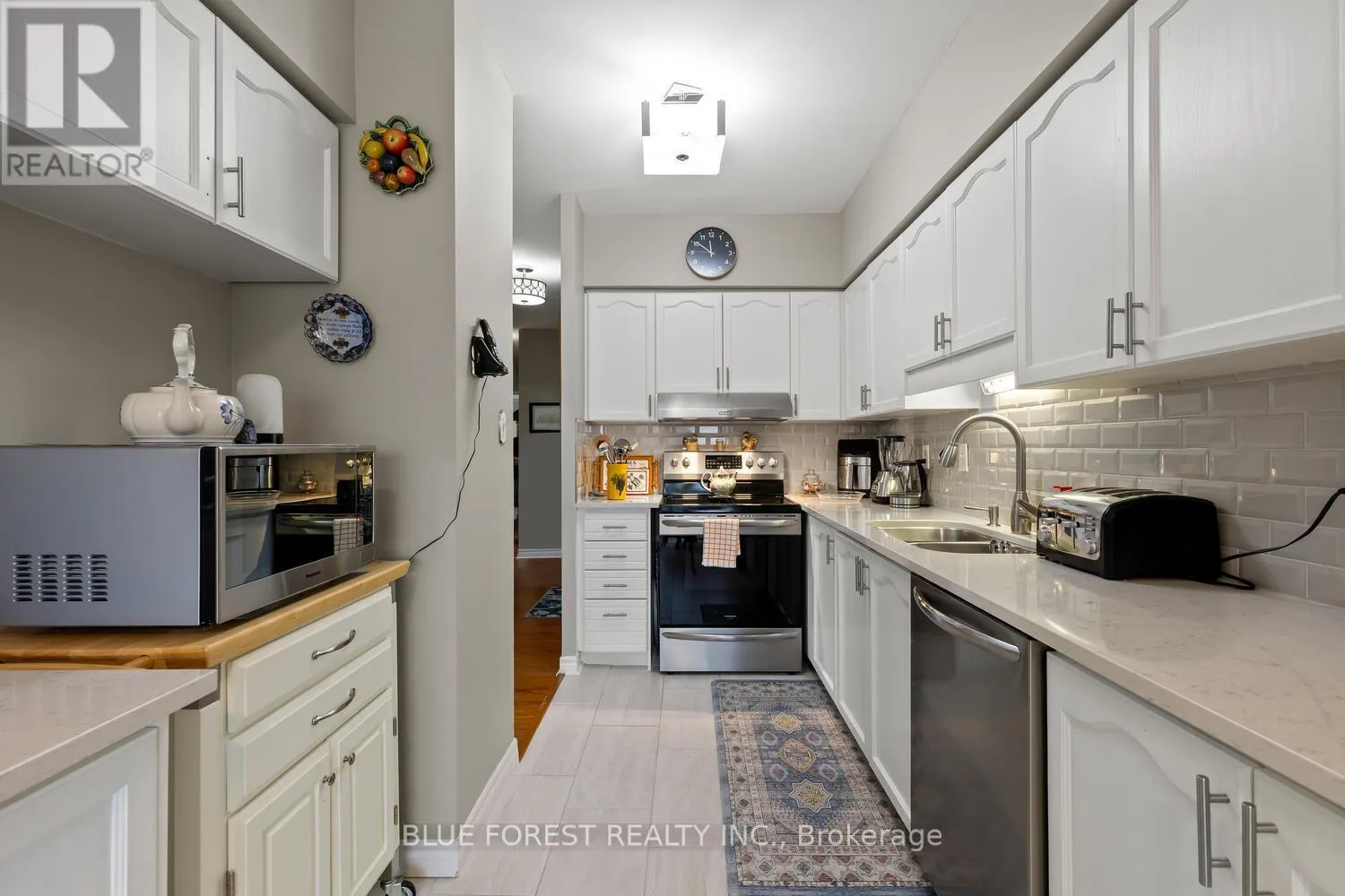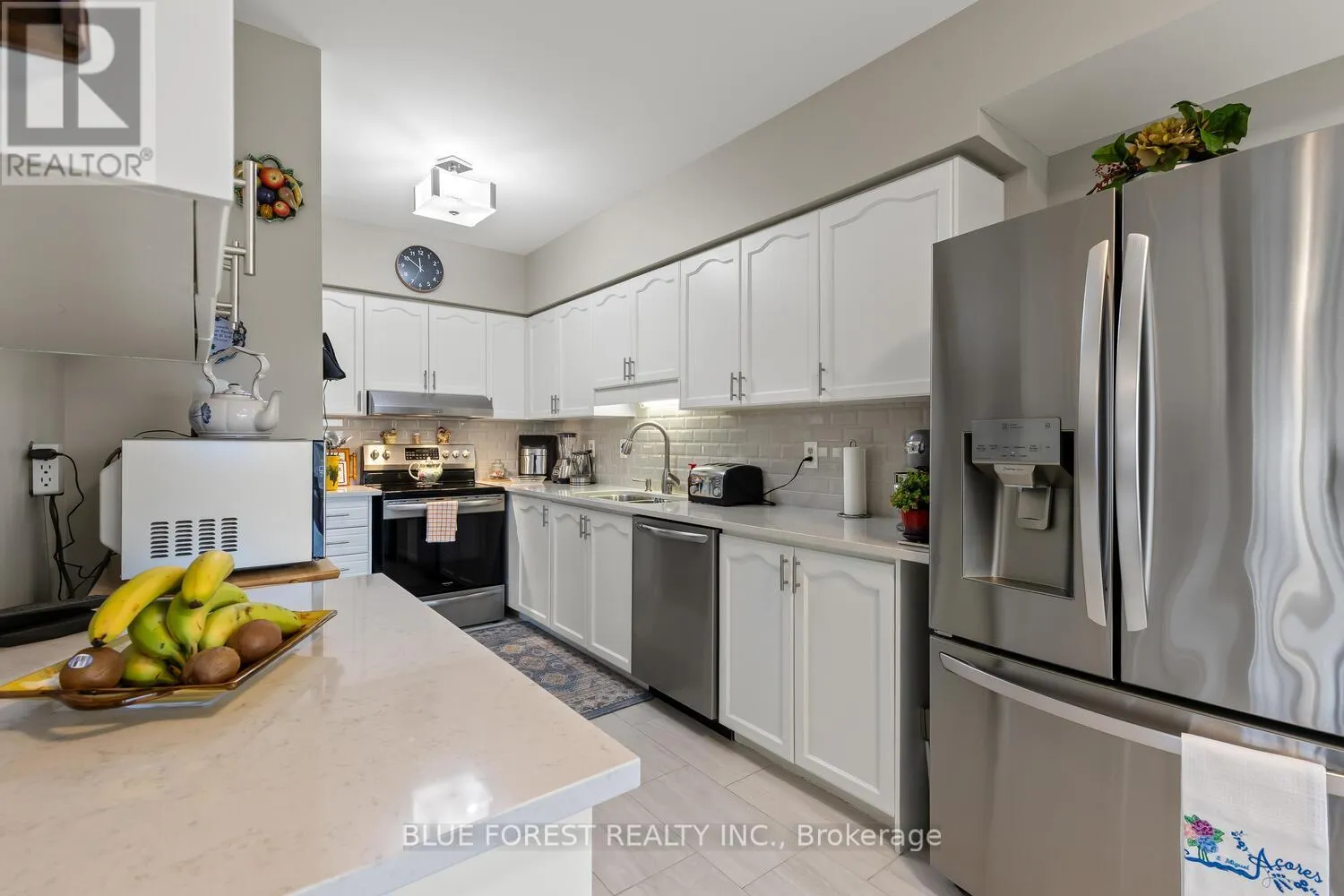 Cross Streets: Wonderland Rd S & Village Green. ** Directions: Heading North on Wonderland Rd S, right on Village Green Ave, left into 744. Bright and beautifully maintained three bedroom condo in sought-after Westmount. Large living and dining area with tons of windows. Modern eat-in kitchen with quartz countertops, stylish backsplash and newer stainless steel appliances. Oversized primary bedroom with walk-in closet and update ensuite. Two additional bedrooms both with ample closet space. Updated main bath with large shower. Laminate and tile flooring throughout (no carpeting). Building is well established with great amenities including exercise room, party room and rooftop patio with bBQ area. Convenient location just steps to Westmount Mall. Truly move-in ready. (id:27476)