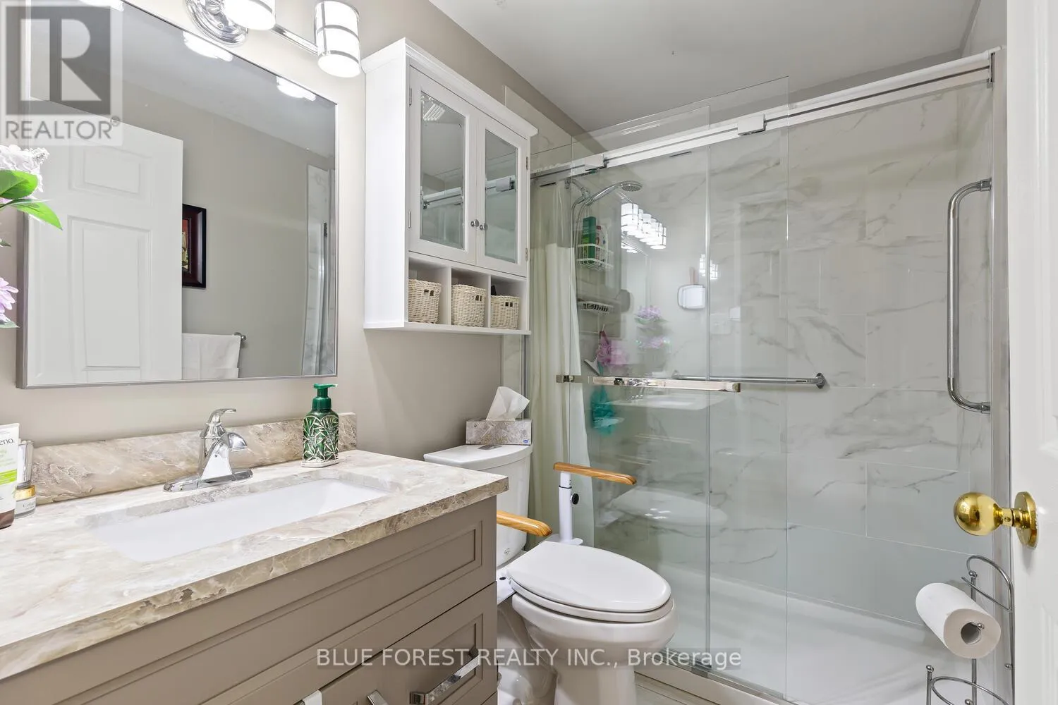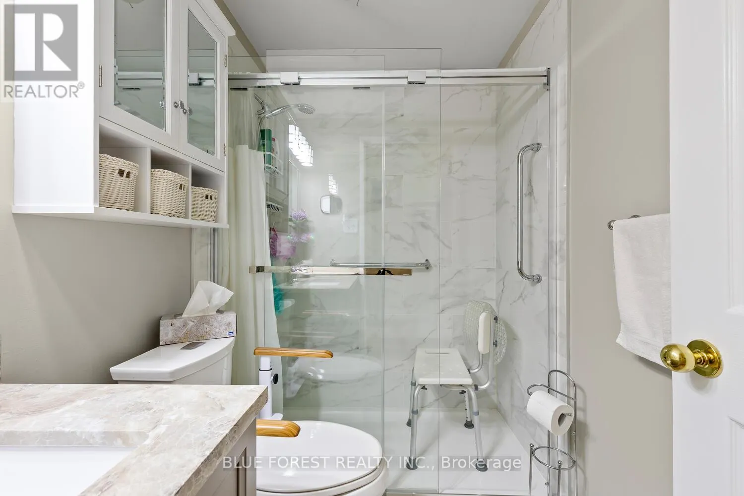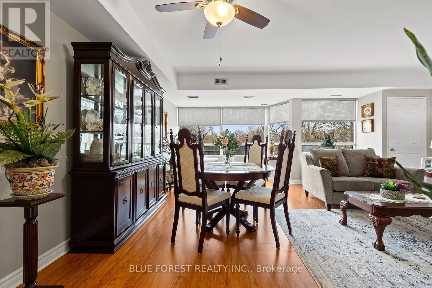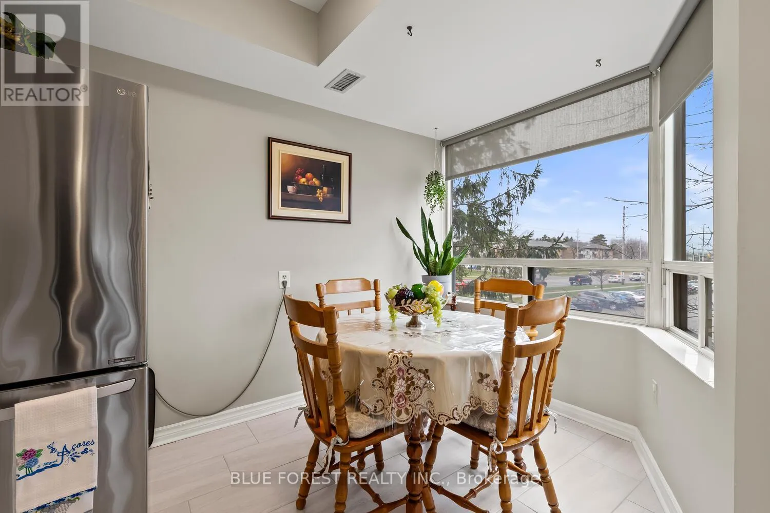 Cross Streets: Wonderland Rd S & Village Green. ** Directions: Heading North on Wonderland Rd S, right on Village Green Ave, left into 744. Bright and beautifully maintained three bedroom condo in sought-after Westmount. Large living and dining area with tons of windows. Modern eat-in kitchen with quartz countertops, stylish backsplash and newer stainless steel appliances. Oversized primary bedroom with walk-in closet and update ensuite. Two additional bedrooms both with ample closet space. Updated main bath with large shower. Laminate and tile flooring throughout (no carpeting). Building is well established with great amenities including exercise room, party room and rooftop patio with bBQ area. Convenient location just steps to Westmount Mall. Truly move-in ready. (id:27476)