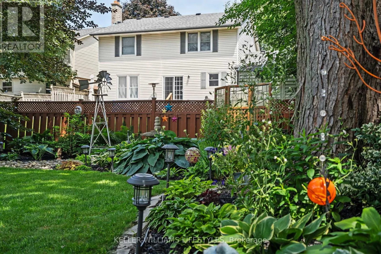 Cross Streets: Commisioners Rd W and Andover Dr. ** Directions: South on Andover Dr from Commissioners Rd W to Blackthorne Cr, turn right. Nestled in a highly sought-after neighbourhood, this impressive two-storey family home offers the perfect blend of space, style, and quality craftsmanship. Featuring four generously sized bedrooms, the home welcomes you with rich hardwood flooring throughout the main level and an abundance of natural light that fills the spacious Entranceway and living room. The heart of the home is a stunning chef's kitchen, complete with granite countertops, a centre island, and ample workspace-ideal for both everyday living and entertaining. The inviting family room showcases a beautiful fireplace framed by custom built-in cabinetry, creating a warm and elegant gathering space. Upstairs, the primary suite is a true retreat, highlighted by a private balcony overlooking the expansive backyard and meticulously maintained gardens. The recently renovated 4-piece ensuite offers a spa-like experience with a walk-in glass shower and a stylish "his and hers" vanity. Outdoor living is equally impressive with a two-tiered composite deck, perfect for relaxing or hosting guests. Thoughtful upgrades are evident throughout the home, including a refined front entry system, new carpets in the bedrooms and solid wood trimwork throughout, reflecting pride of ownership and attention to detail in every corner. The location will thrill you as well with a park just steps away, excellent schools in the neighbourhood and access to all your daily shopping needs and the 401 only minutes away. (id:27476)