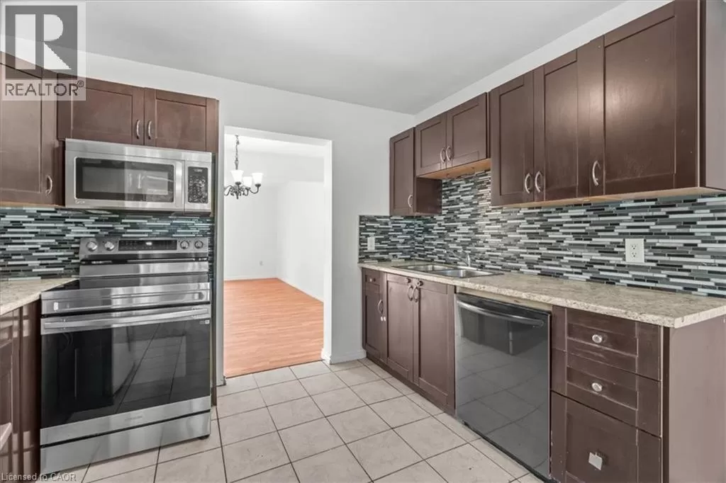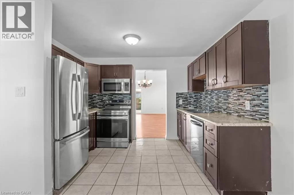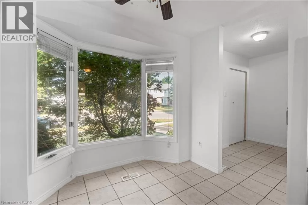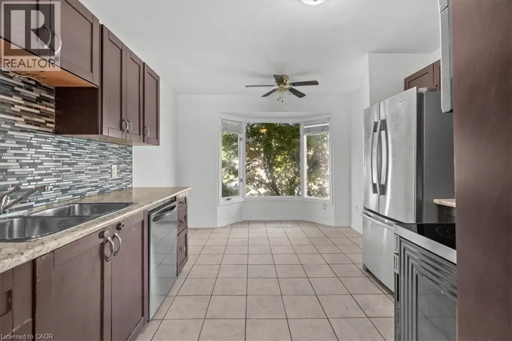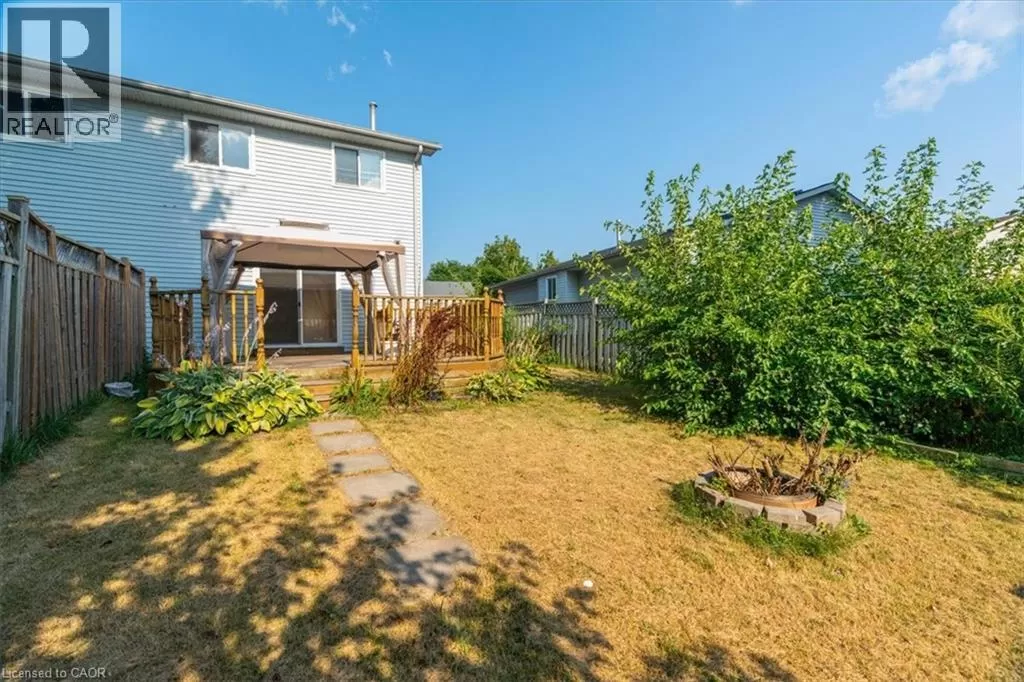 Dundas st to Veterans memorial pkwy to Bonaventure Freehold semi-detached with NO CONDO FEES! Spacious 3-bedroom semi-detached home, ideal for first-time buyers, downsizers, or investors looking for a solid opportunity. This freehold home offers great potential. The main level features a bright eat-in kitchen with ceramic flooring, and an open-concept living and dining area with laminate floors. Patio doors lead to a generous deck, perfect for summer BBQs and outdoor entertaining. The finished lower level includes a cozy family room and an oversized laundry room with ample storage. Appliances: stove (2024), dishwasher (2019), fridge and microwave (as is). The primary bathroom tub and tile (2021), Primary bedroom windows (2020), Hot water tank rental (2023), Roof (2017) Move-in ready with great space, layout, and potential to add your personal touch. Realtor is on title. (id:27476)