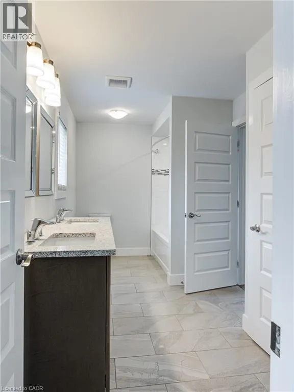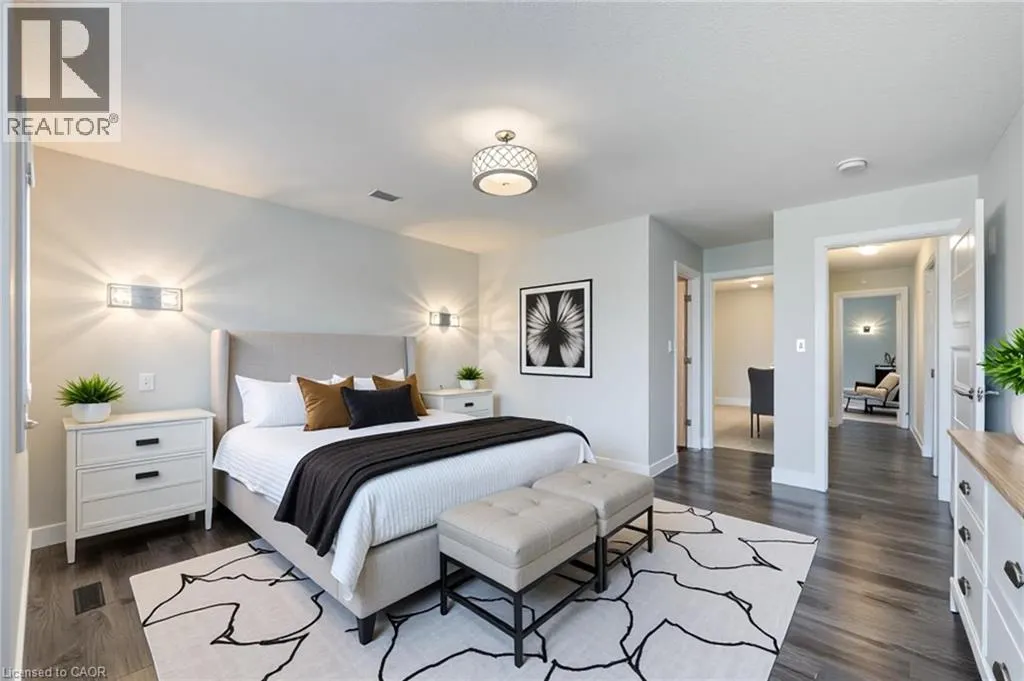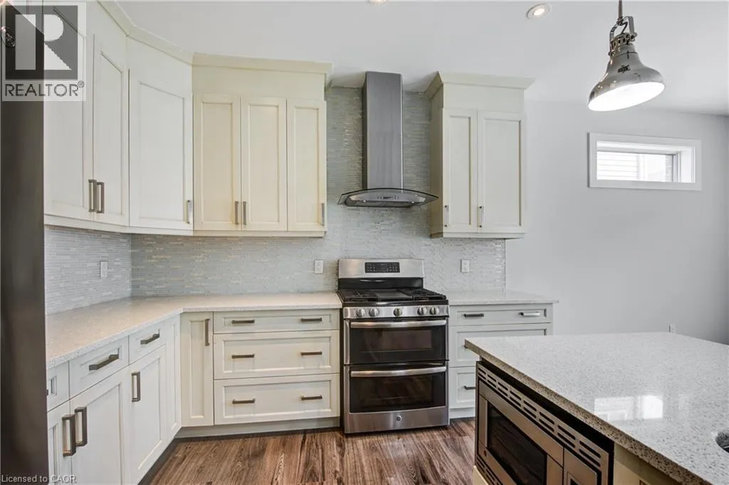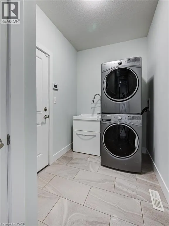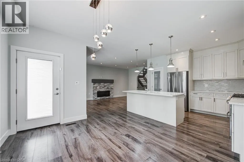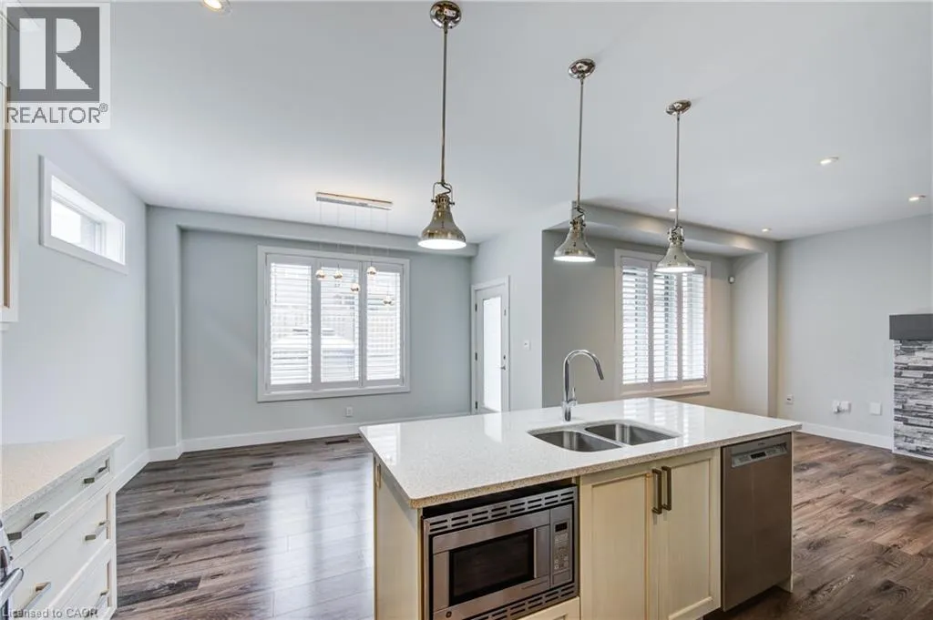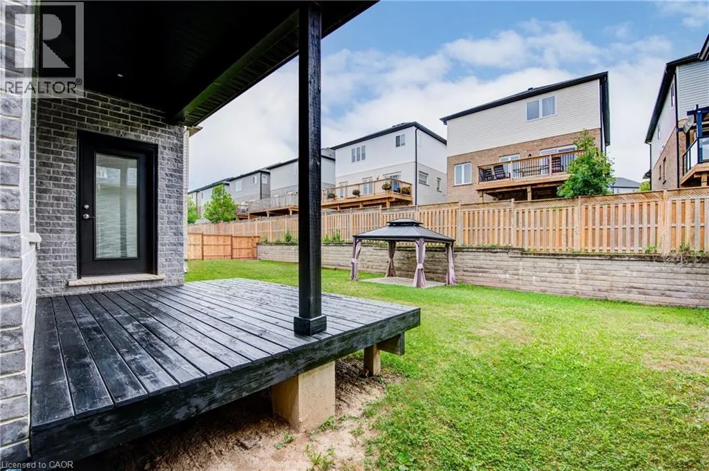 Commissioners Rd E and Sheffield Blvd Welcome to this modern, energy-efficient, freshly painted, and move-in-ready home tucked away on a quiet, family-friendly street. With a sleek gray stone and brick exterior, a striking black front door, and a double-car garage, this home seamlessly blends contemporary style with everyday functionality. Inside, you're greeted by a bright, open-concept layout with an impressive floating staircase, designed for both comfort and entertaining. The front powder room is perfectly positioned for guests, while the spacious living area features a fireplace for cozy evenings. The kitchen is a true highlight featuring beautiful quartz countertops, a center island which house an under-the-counter microwave to maximize workspace, and a generous eat-in dining area leading outside to enjoy your walk-out deck, ideal for outdoor dining or morning coffee, and a gazebo nestled at the back of the lush lawn; your private escape after a long day. The entire home is carpet-free and upgraded with California shutters on the main floor for a clean, elegant finish. Convenient garage entry is located through the main floor laundry room, adding ease to your daily routine. Upstairs, you'll find three large bedrooms, including a serene primary suite with a glass walk-in shower, soaker tub, and double sinks for a spa-like experience. The second full bathroom is a functional Jack and Jill design, perfect for busy family mornings. Downstairs, the fully finished basement offers incredible flexibility. It includes a spacious fourth bedroom with large windows and natural light, a barn door to separate the oversized bedroom from the cozy rec room, and ample space for guests, in-laws, or a potential rental suite. This home combines modern upgrades, thoughtful design, and family-friendly features in one exceptional package. Don't miss your chance to make it yours. This House is Virtually Staged. (id:27476)