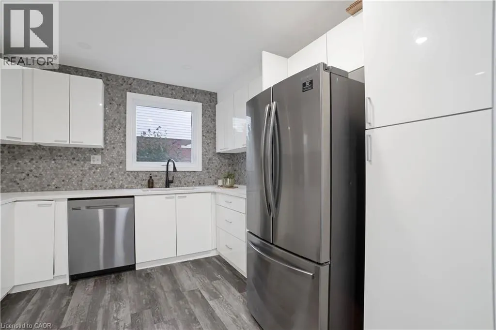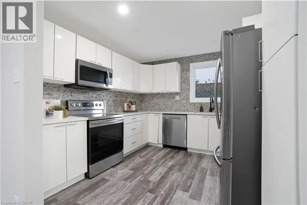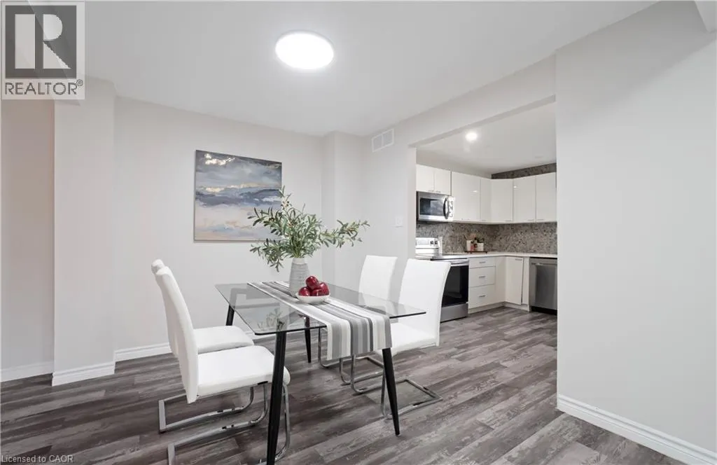 Adelaide St N, East on Fanshawe Park Rd Updated Townhome Condo â End Unit with No Rear Neighbors. Welcome to 770 Fanshawe Park Road East, Unit #60, located in the desirable London North area â a wonderful, family-friendly neighborhood within the Stoney Creek / A.B. Lucas school district. This updated end-unit townhome condo offers privacy, comfort, and convenience, nestled in a quiet, tucked-away complex. Featuring 3 bedrooms, 3 bathrooms, and an attached garage, this home boasts many favorable features. The primary bedroom includes a 4-piece ensuite, adding to the home's appeal. As soon as you step inside, youâll love the bright and spacious foyer, which opens into the open-concept main floor layout. The beautifully renovated kitchen includes quartz countertops, an undermount sink, tile backsplash, and high-quality appliances. The formal dining room and large living room overlook oversized patio doors, flooding the space with natural light. Upstairs, youâll find a generously sized primary bedroom with ensuite, two additional well-sized bedrooms, and a full main bathroom. The partially finished basement features stylish laminate flooring and a wet bar â perfect for entertaining. Enjoy the private backyard with convenient rear access. The complex includes an outdoor pool, two parking spaces, and ample visitor parking. (id:27476)