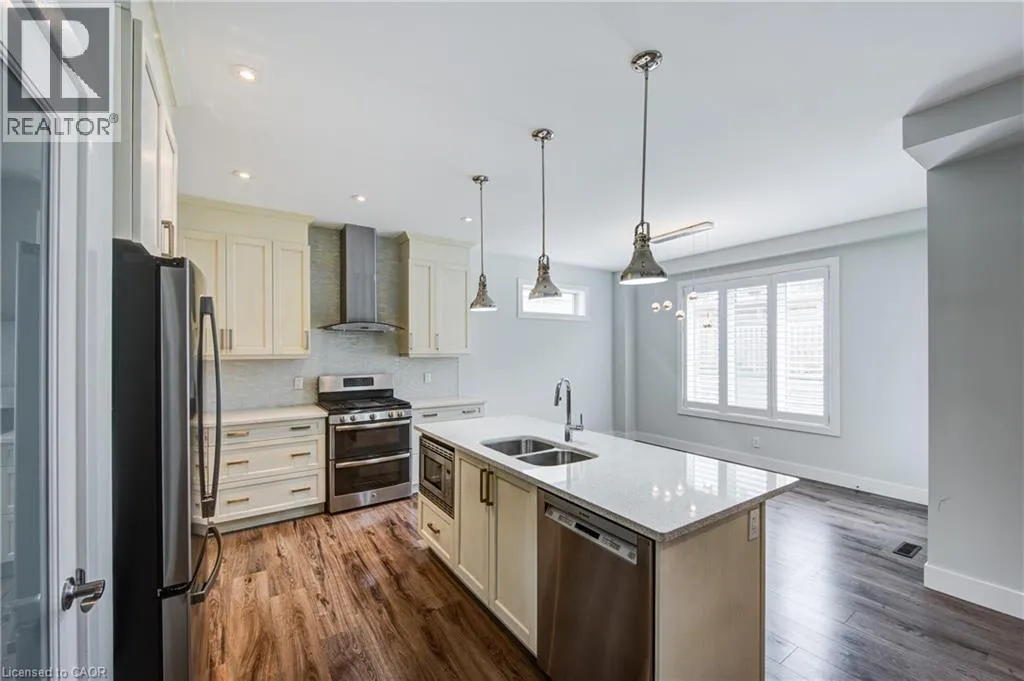 Commissioners Rd E and Sheffield Blvd Welcome to this modern, energy-efficient, freshly painted, and move-in-ready home tucked away on a quiet, family-friendly street. With a sleek gray stone and brick exterior, a striking black front door, and a double-car garage, this home seamlessly blends contemporary style with everyday functionality. Inside, you're greeted by a bright, open-concept layout with an impressive floating staircase, designed for both comfort and entertaining. The front powder room is perfectly positioned for guests, while the spacious living area features a fireplace for cozy evenings. The kitchen is a true highlight featuring beautiful quartz countertops, a center island which house an under-the-counter microwave to maximize workspace, and a generous eat-in dining area leading outside to enjoy your walk-out deck, ideal for outdoor dining or morning coffee, and a gazebo nestled at the back of the lush lawn; your private escape after a long day. The entire home is carpet-free and upgraded with California shutters on the main floor for a clean, elegant finish. Convenient garage entry is located through the main floor laundry room, adding ease to your daily routine. Upstairs, you'll find three large bedrooms, including a serene primary suite with a glass walk-in shower, soaker tub, and double sinks for a spa-like experience. The second full bathroom is a functional Jack and Jill design, perfect for busy family mornings. Downstairs, the fully finished basement offers incredible flexibility. It includes a spacious fourth bedroom with large windows and natural light, a barn door to separate the oversized bedroom from the cozy rec room, and ample space for guests, in-laws, or a potential rental suite. This home combines modern upgrades, thoughtful design, and family-friendly features in one exceptional package. Don't miss your chance to make it yours. This House is Virtually Staged. (id:27476)