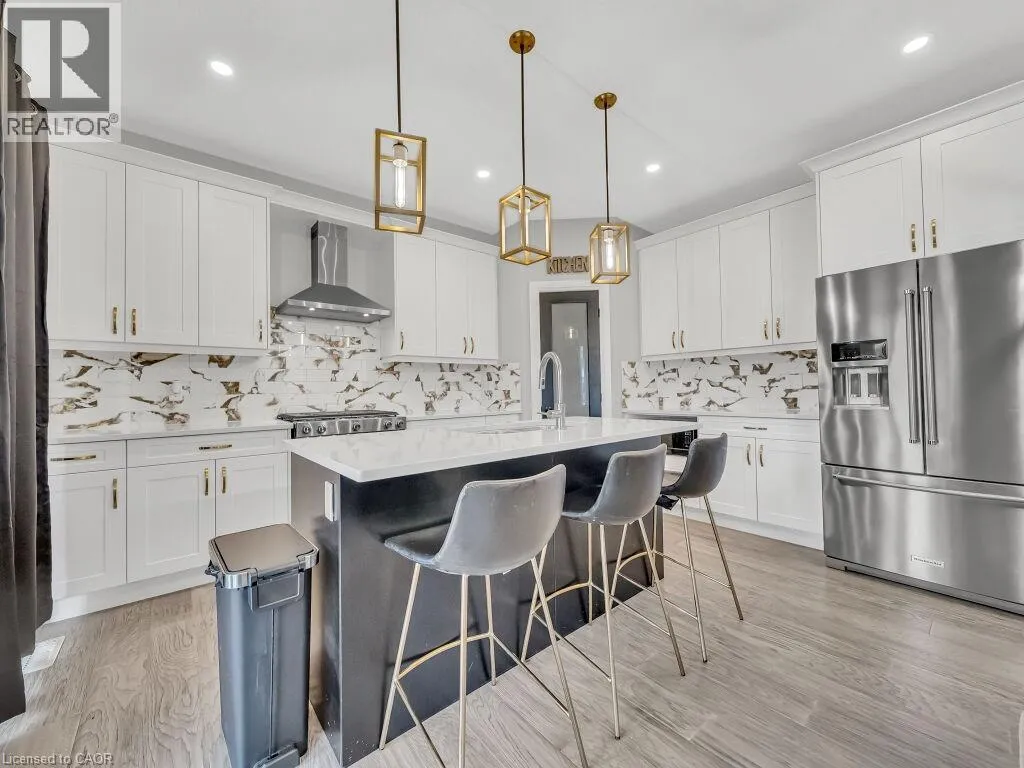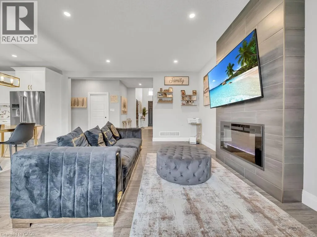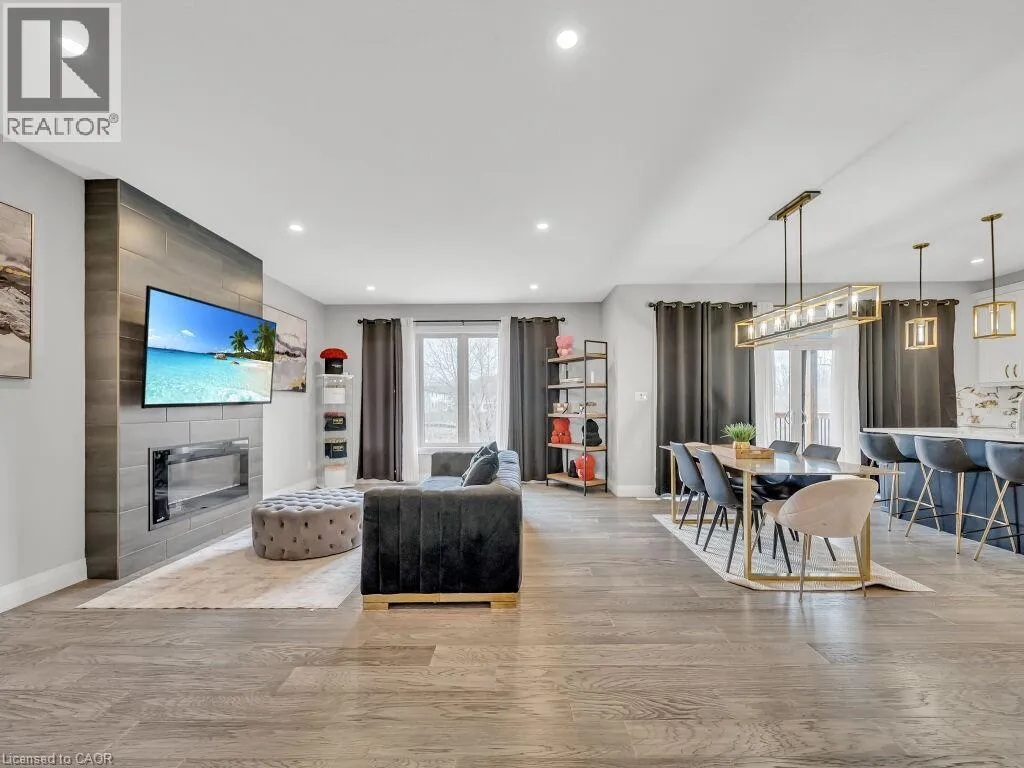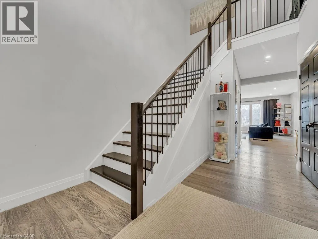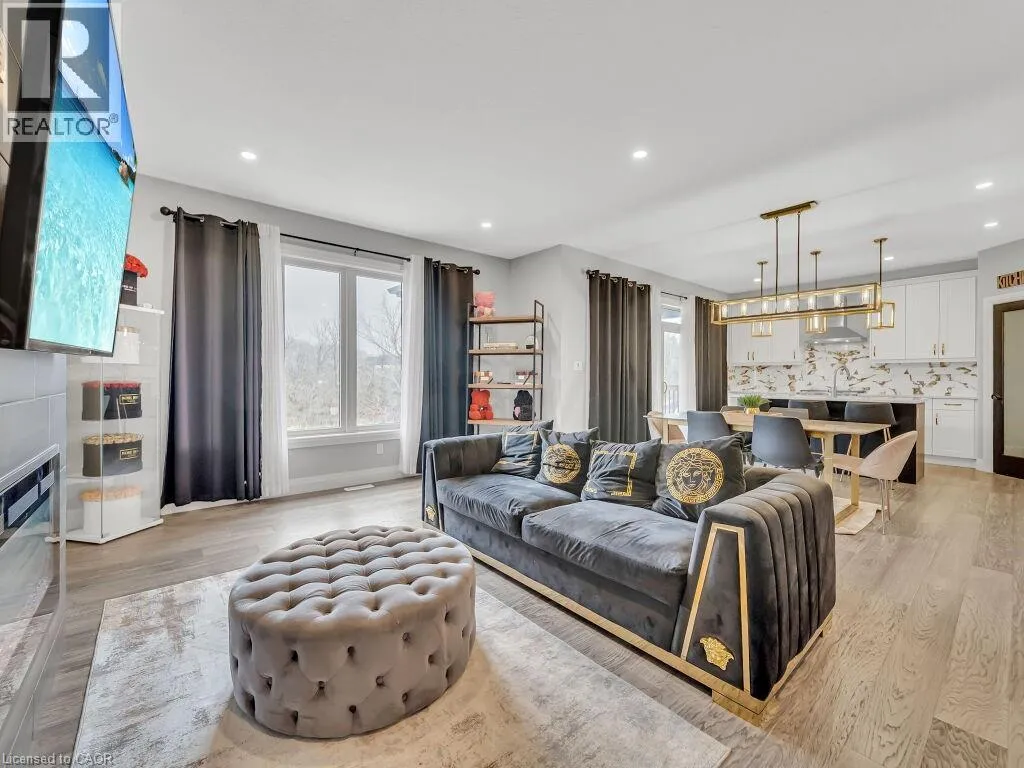 Take Veterans north from Hwy 401 left onto Hamilton Rd, stay on Hamilton Rd and a right onto Oriole. Simply Gorgeous Newer Home (@A Top & Most Sought After Area In London) on a Quiet Cul-de-sac Backing onto RAVINES of THAMES RIVER with A Rare Find Finished 4 + Den/Office on Main Floor (see pics for floor plan) + 1 Bedroom Look-out Basement. Fully Loaded: Master Bedroom (With 5Pc Luxury Ensuite). 9 Ft California Ceilings On Main Floor, Quartz Counters Throughout, Wide Engineered Hardwood Floor, Extended Big Modern Kitchen With Custom Cabinets, Eat In Kitchen W/Breakfast Island, Pantry, Dining Area Adjoining Kitchen. Walk-Out To Beautiful Covered Private Cozy Patio Backing onto Ravine**NO HOMES @ BACK**Washrooms With Quartz Counters & High Quality Cabinetry, Single Lever Faucets & Glass Shower in Master, High Quality Tiles, Tiled Electric Fireplace, wDesigner Contrasting Black Paint on Doors and Stairs, Designer Lighting Fixtures, Valance Lighting In Kitchen, Pot Lights, Decora Switches, Black Exterior Windows, Oversized Basement Windows(4/ X 3'). 5 mins off Hwy 401, 10 Mins to D/T London, Costco, Western University, Fanshawe College, New VW Electric Car Plant, Big Amazon & International Airport.**SEE PICTURES FOR FLOOR PLANS & ROOM SIZES** (id:27476)