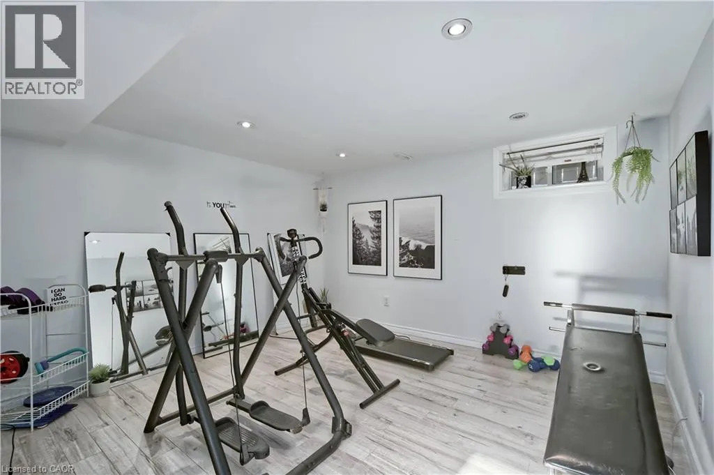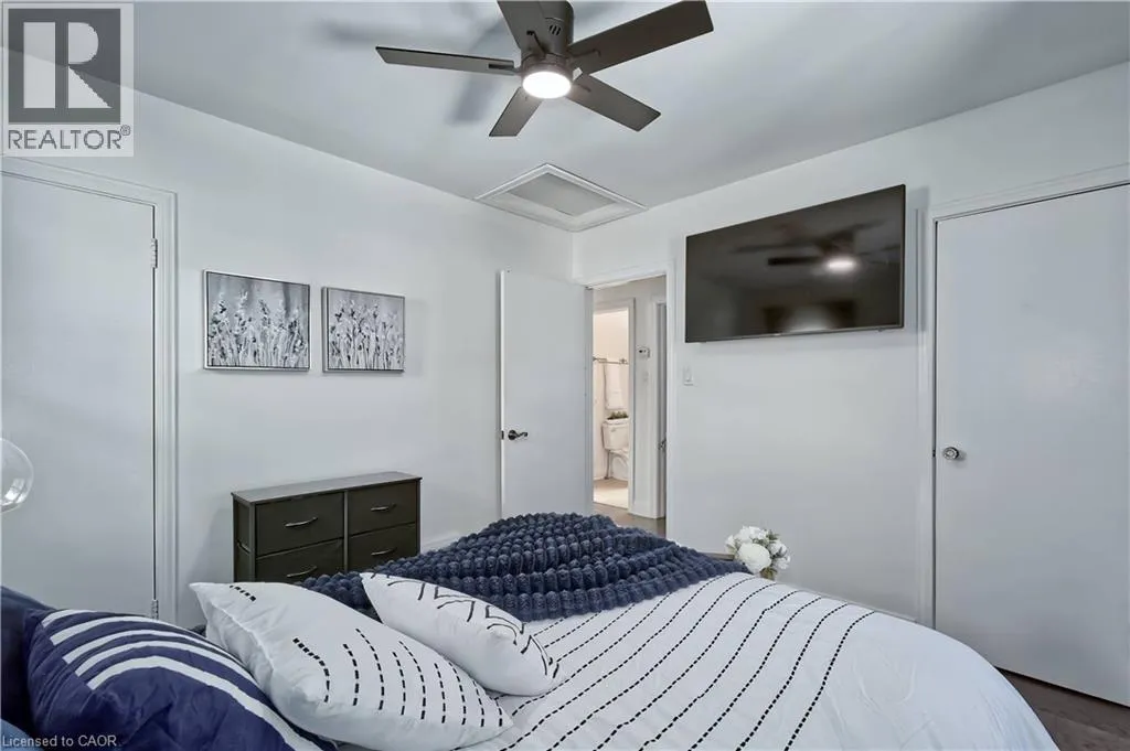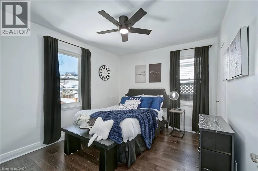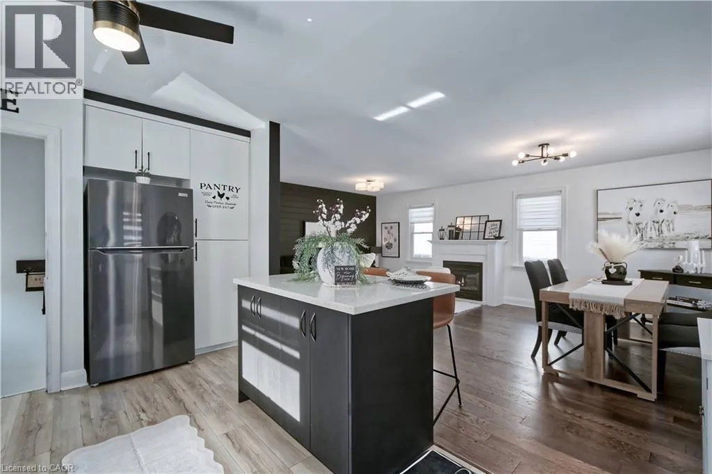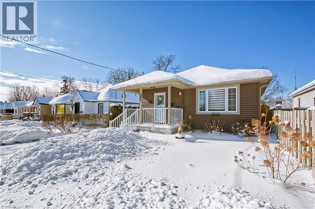 East on Hamilton Road to Elgin Street, turn right onto Elgin, house is on right side Stunning bungalow offers modern comfort with thoughtful updates throughout. The open-concept main floor is bright and welcoming, featuring updated lighting, ceiling fans, durable flooring, and contemporary finishes that create a stylish yet functional living space. The kitchen is a standout with stunning quartz countertops, black stainless-steel appliances, modern window coverings, and elegant light fixtures that enhance the space. The dining area is ideal for entertaining, highlighted by contemporary light fixtures and an eye-catching shiplap accent wall that adds personality and visual interest. The main bathroom features updated flooring for a clean, modern look and a primary bedroom that offers two closets. The lower level is finished providing versatile living spaces perfect for an office, gym, den, guest room, and rec room. Laundry has spray foam insulation and soundproofing beneath the primary bedroom and along the north back room. A water hookup in the south back room allows for a wet bar or potential second kitchen; wardrobes in this room are included. The entire home was freshly painted top to bottom within the last three years. Outdoor living is equally impressive with a 13â x 20â back deck, a 12â x 12â stone patio, gazebo, perfect for relaxing or entertaining. The fully fenced backyard is well maintained and includes two sheds (one recently purchased). A 10â x 12â pergola included. Parking is available for up to three vehicles. Nearby convenience of shopping, parks, schools, hwys make this location ideal. Pleasure to show!! (id:27476)