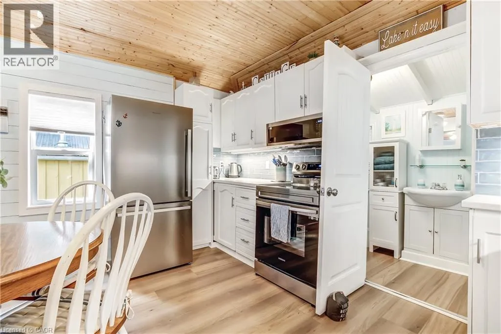Highway 59 South becomes Erie Blvd, left onto Fourth Ave Take a look at this lakeside 3 bedroom raised and renovated cottage. Lots of updates in this attractive property, with new vinyl plank flooring throughout with new pine shiplap in most of the living room. Kitchen features stainless steel appliances, upgraded kitchen counter top, sink and back splash. 2 heat-pumps for maximum heating and cooling. You'll love the new window blinds with window darkening in all 3 bedrooms. The front sunroom has all new windows, a great room to enjoy your morning coffee in while watching the sunrise or just relax anytime. With 3 bedrooms and a 3 piece bath, this clean, well maintained getaway makes a great place to enjoy the best of the season with friends and family. Step out to your newer composite wrap around deck with aluminum railing, featuring a private back area with step that leads down to your fire-pit patio. There's also a garden shed to store your outdoor stuff. This cottage is just a short walk to the sandy beaches of Long Point, and short drive to the many things Long Point has to offer, fooderies, marinas, parks, fishing, boating and more. One place worth checking out. (id:27476)