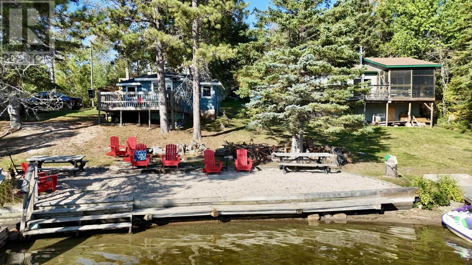 Highway 17E to Longbow Lake Road, Turn right on Bay Point Road and continue straight to the very end and look for RE/MAX sign Welcome to The Bayview at 80 Bay Point Road, a unique shared ownership opportunity on the shores of Longbow Lake. This well maintained, all-season 2-bedroom cabin features an updated open-concept interior where you can warm up by the pellet stove after a day on the lake. Step outside to the 330 square-foot covered porch to enjoy lake views with your morning coffee. This is the perfect turnkey retreat for those seeking a lakefront lifestyle without the full-time maintenance of a traditional cottage. Additional highlights include: Assigned dock slip for easy lake access. Access to the shared fish shack for the avid angler. A common area beach just steps from your door. Shared central water system and central septic field. Designated parking area (out of sight from the cottages) for trailers and guests. This cottage is governed by resort bylaws and a Tenants in Common Association, ensuring responsible stewardship of the land and shared amenities. Please note: this property may not qualify for traditional financing. Annual Association Fee: $1000/yr - includes common area maintenance, central septic & water systems, annual property taxes. (id:27476)