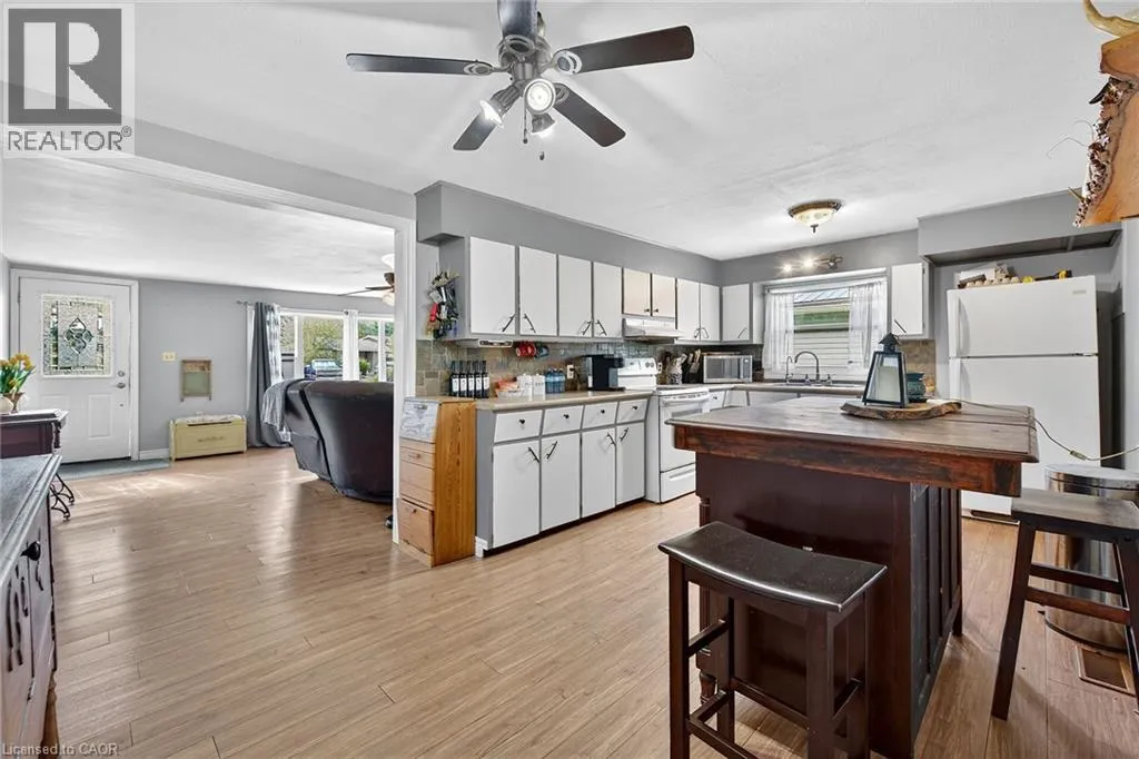 Follow Regional Road 3/Northshore Drive through Stromness, right on Rymer Road, left on Downey Road to the Lake, left on nature Line Spacious home with 3+2 bedrooms and 2 full bathrooms, on a 100x100ft lot located in a Lakeside community just 10 minutes to Dunnville. This 1849 square foot home needs a little bit of love - but overall it offers an affordable place to raise a family - where peace and quiet is a daily occurence! Main floor offers large living room, two bedrooms (one of them is in an unfinished state), full bathroom, kitchen, utility room and a space at the back that was a hair salon. Upstairs offes 3 more bedrooms, and a large landing which would be a great family room area, plus a 3 piece bath. Outside the house is clad in vinyl siding, and a metal roof. Great front porch for relaxing and watching nothing go by. Detached garage plus cool treehouse for the kids. Services include propane gas, a cistern and a well, plus bonus full septic bed here. All windows are vinyl, and includes a forced air propane fired furnace. Property includes a right of way to Lake Erie for fun with the family! Located on a school bus route. Dunnville offers all amenities including hospital, schools, parks, churches, shopping and great resturants. Home is located on a private road - maintained by the local community. (id:27476)