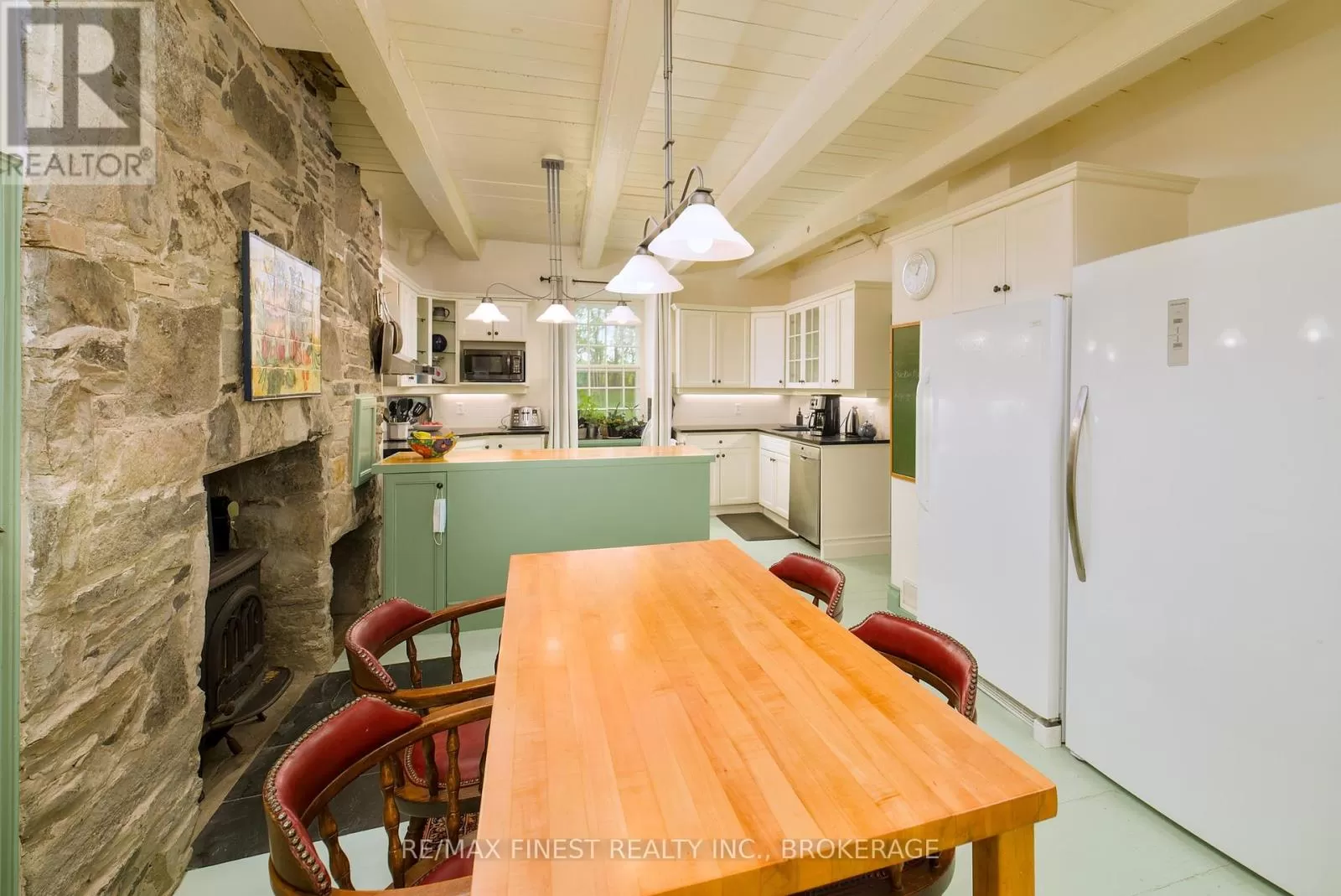 Cross Streets: Front Rd. ** Directions: Amherst Island Ferry Leaves Millhaven on The Half Hour, Left on Front Rd. This remarkable historic waterfront home on Amherst Island is a rare opportunity to own one of the island's earliest residences, with roots tracing back to circa 1800. Set on 1.34 acres with approximately 250 feet of shoreline on the North Channel of Lake Ontario, the property blends original charm with extensive updates for modern comfort. The stucco-over-stone section is believed to be the original farmhouse built by M. Dennee, a tenant farmer, and features early Georgian elements such as a period mantlepiece, original doors, and trim. In the mid-1800s, a triple-brick addition was constructed by James Patterson, merging two homes into one elegant residence. Inside, many original features remain intact, while substantial renovations-completed with permits-have added insulation, updated wiring and plumbing, and modern finishes. The kitchen boasts granite countertops, wide board floors, and an exposed limestone wall with a woodstove. High ceilings and large windows create light-filled spaces throughout. The home offers 3 bedrooms, 2 bathrooms, a formal living room, a main-floor family room with propane fireplace, and a bright studio or office. The primary suite includes a walk-in closet, ensuite bath, and laundry. Outside, enjoy mature trees, perennial gardens, a limestone patio, terraced landscaping, and a pebble beach. A mooring block is ready for your sailboat, and additional structures include a boat shed and woodshed. Located just a short ferry ride from the mainland, this is a lovingly restored piece of Amherst Island's history-ready for its next chapter. Amherst Island is one of eastern Ontario's best-kept secrets. This property is just a 20-minute ferry ride from the mainland at Millhaven, with regular service running year-round. The island is known for its welcoming community, scenic cycling routes, birdwatching, and peaceful pace of life-all within reach of Kingston, Toronto, Ottawa, and Montreal. (id:27476)
